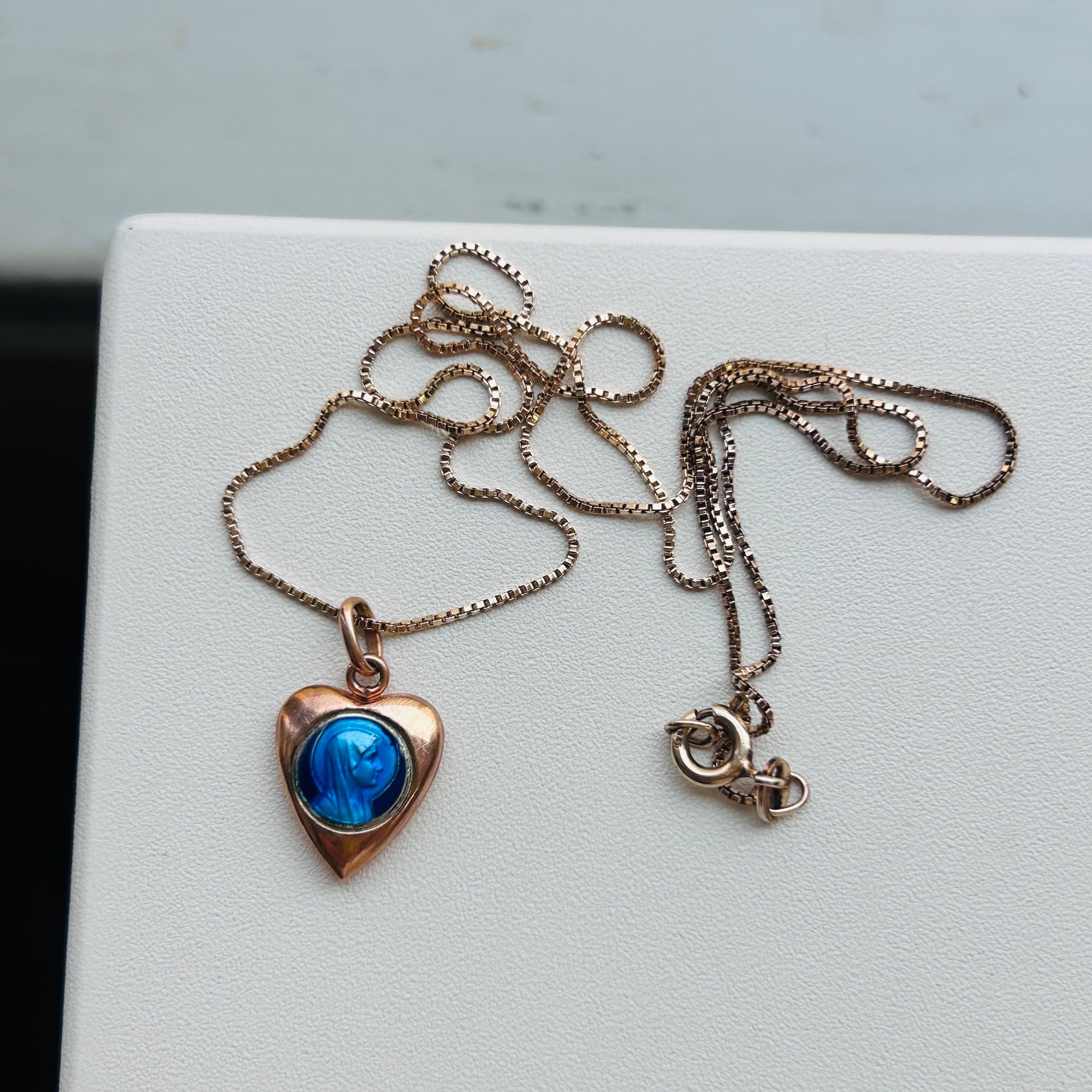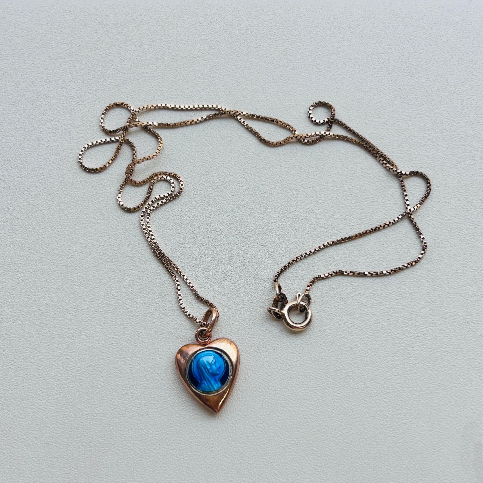仏ヴィンテージ religiousハート 金メッキネックレス(46cm)