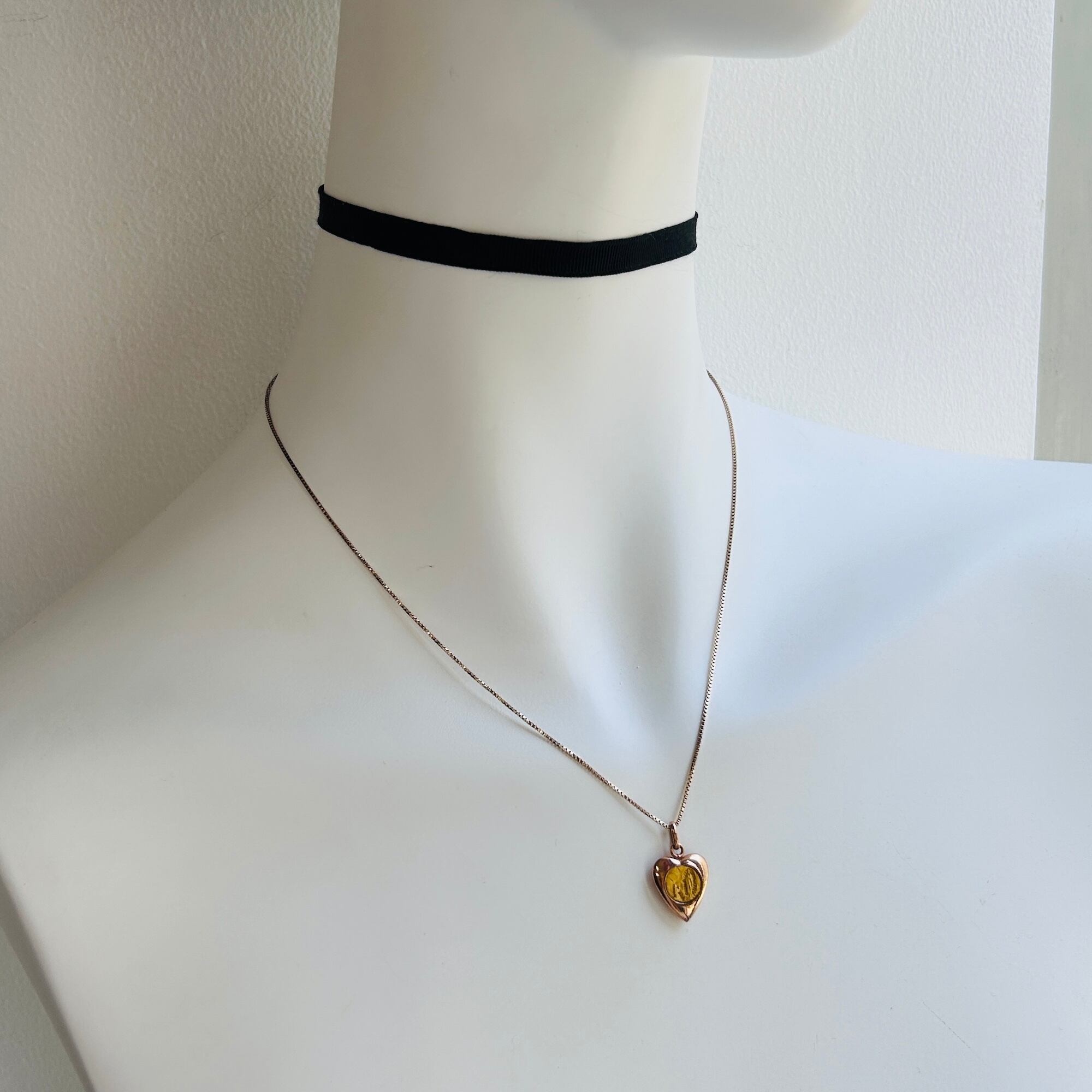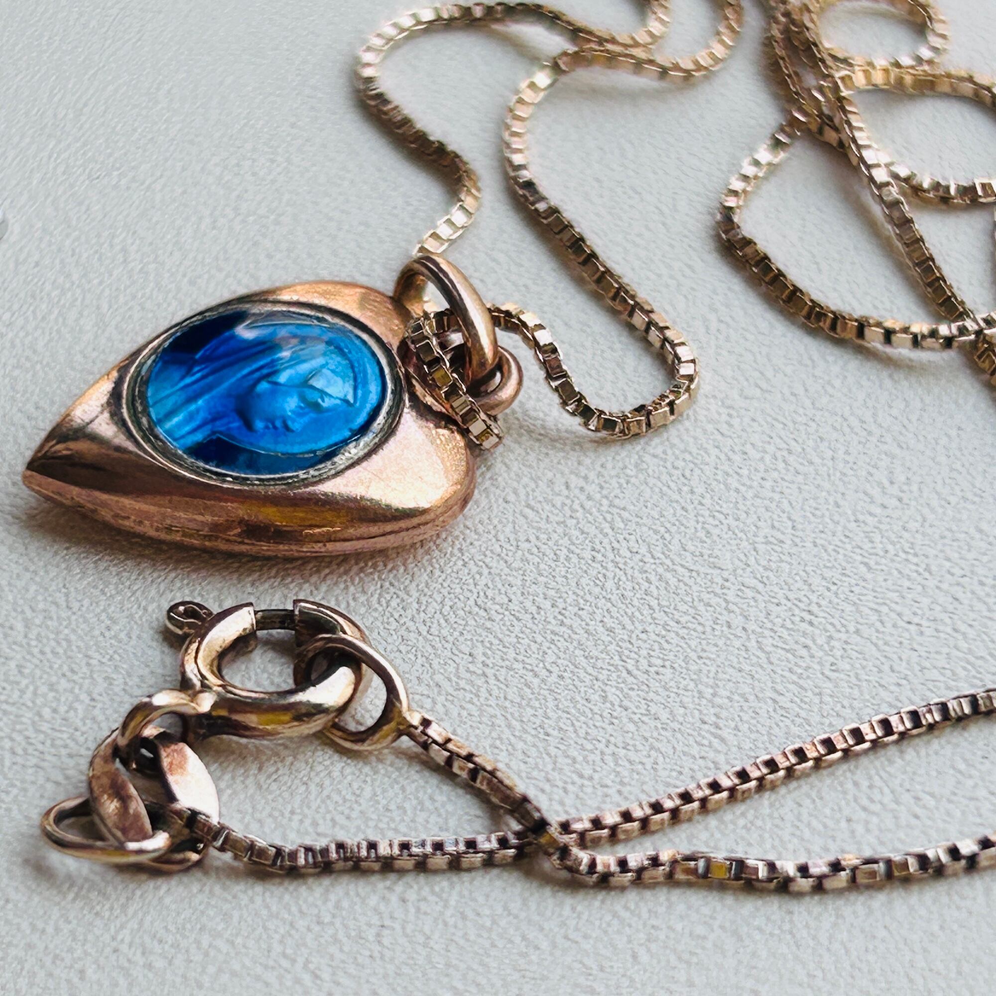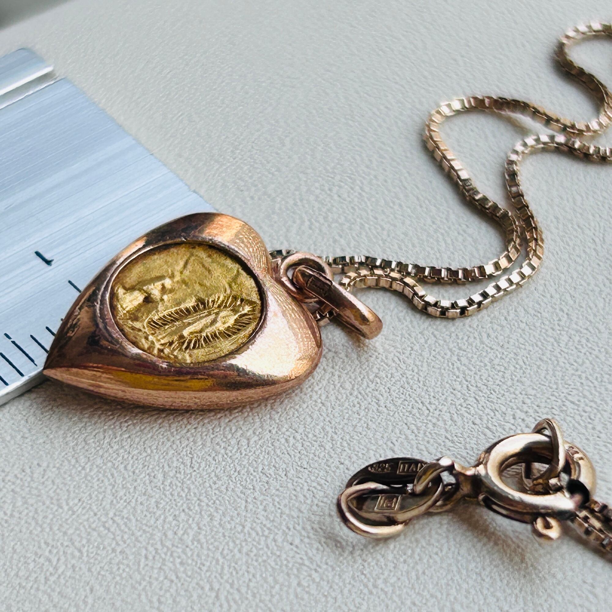 フランスのreligiousハートに当店在庫の金メッキチェーンを合わせました。トップもチェーンも銅に近い色味でよくマッチしています。ハートはリバーシブル。ノスタルジックな雰囲気のキュートなネックレスです。チェーンに「ITALY」「925」。