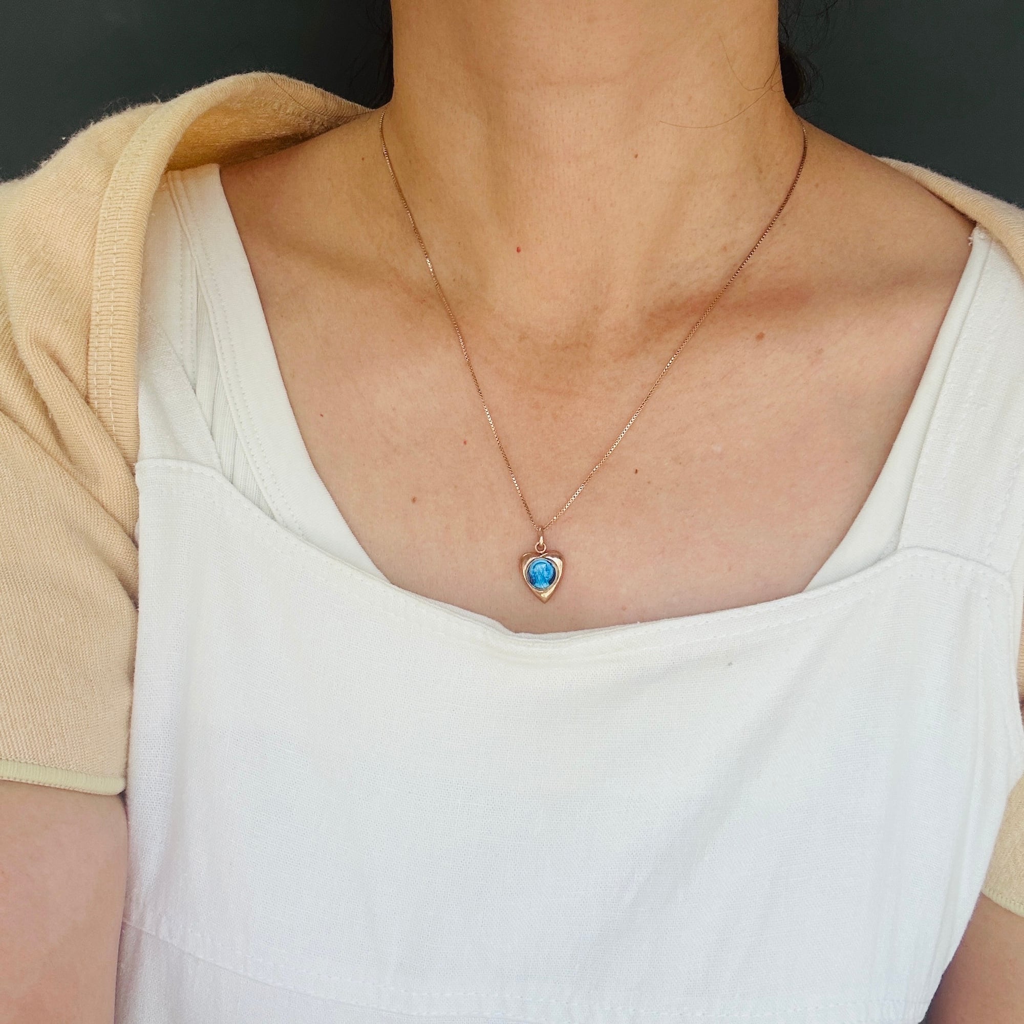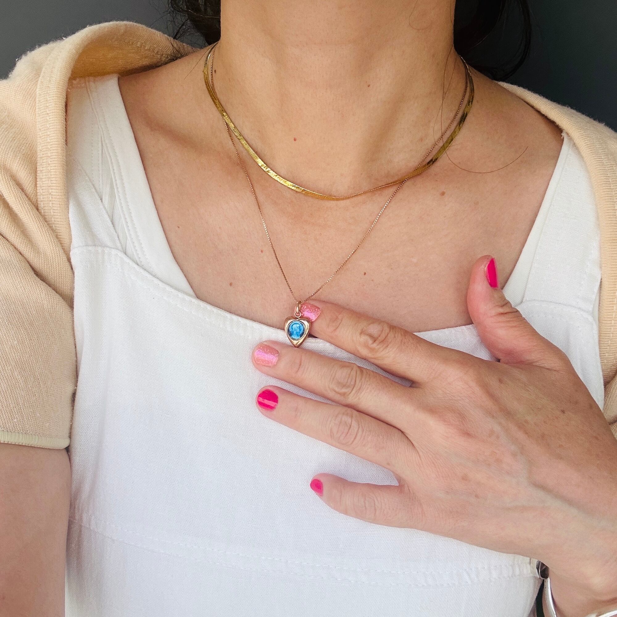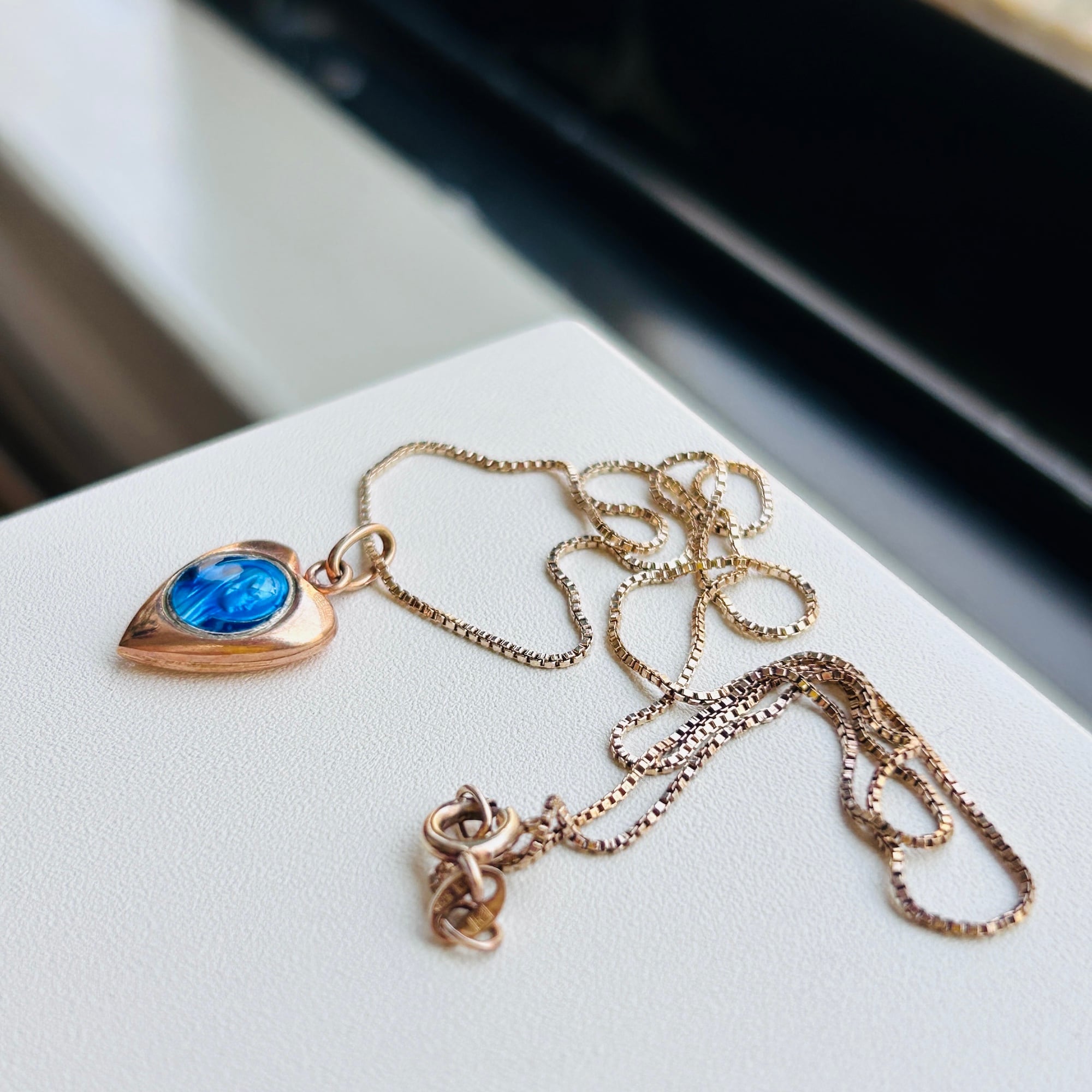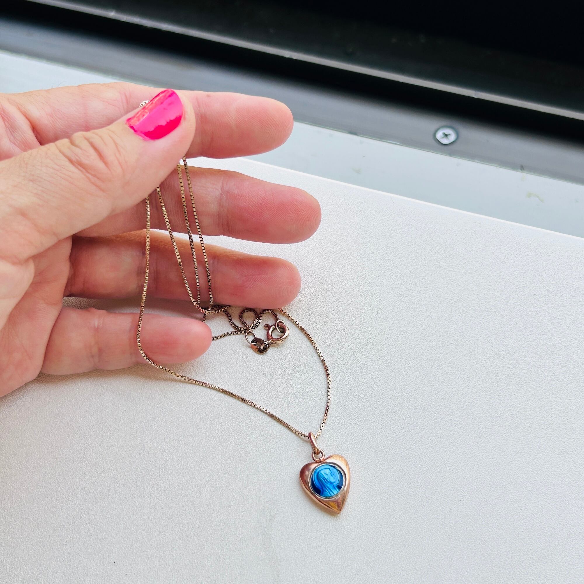 フランスのreligiousハートに当店在庫の金メッキチェーンを合わせました。トップもチェーンも銅に近い色味でよくマッチしています。ハートはリバーシブル。ノスタルジックな雰囲気のキュートなネックレスです。チェーンに「ITALY」「925」。