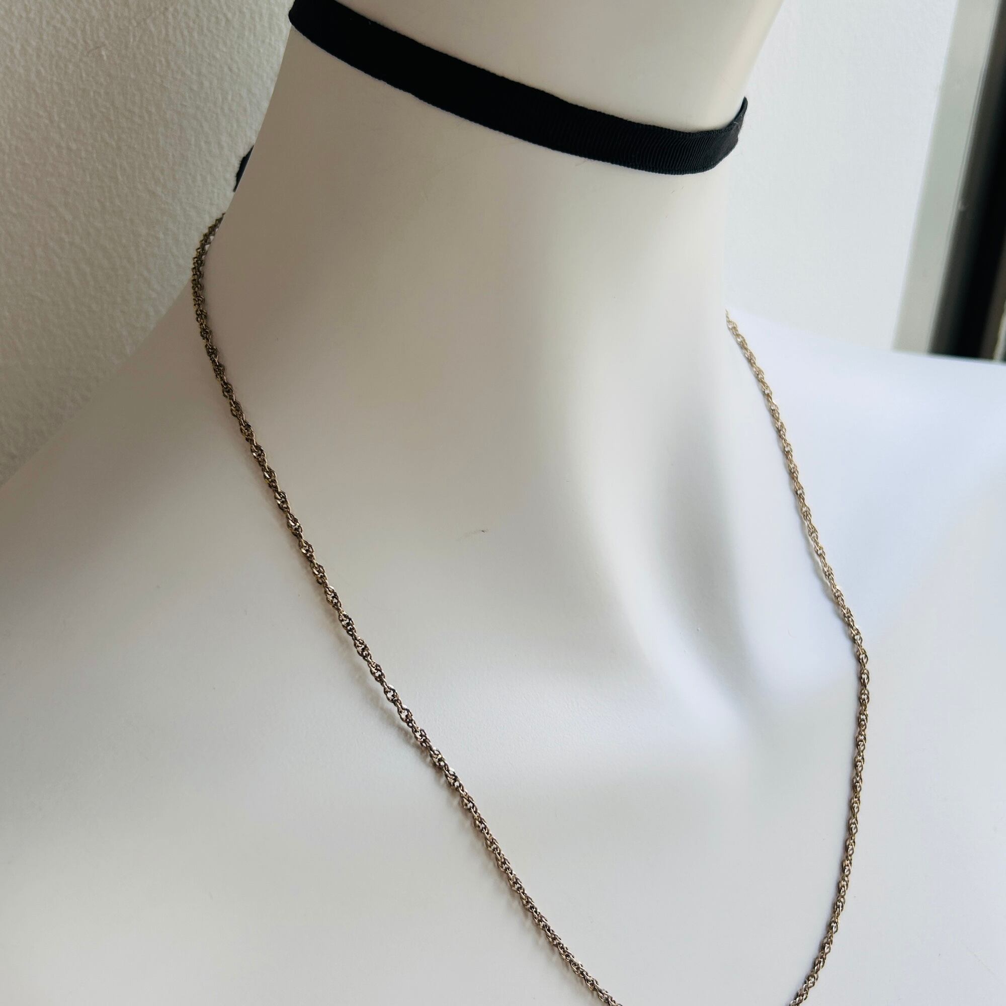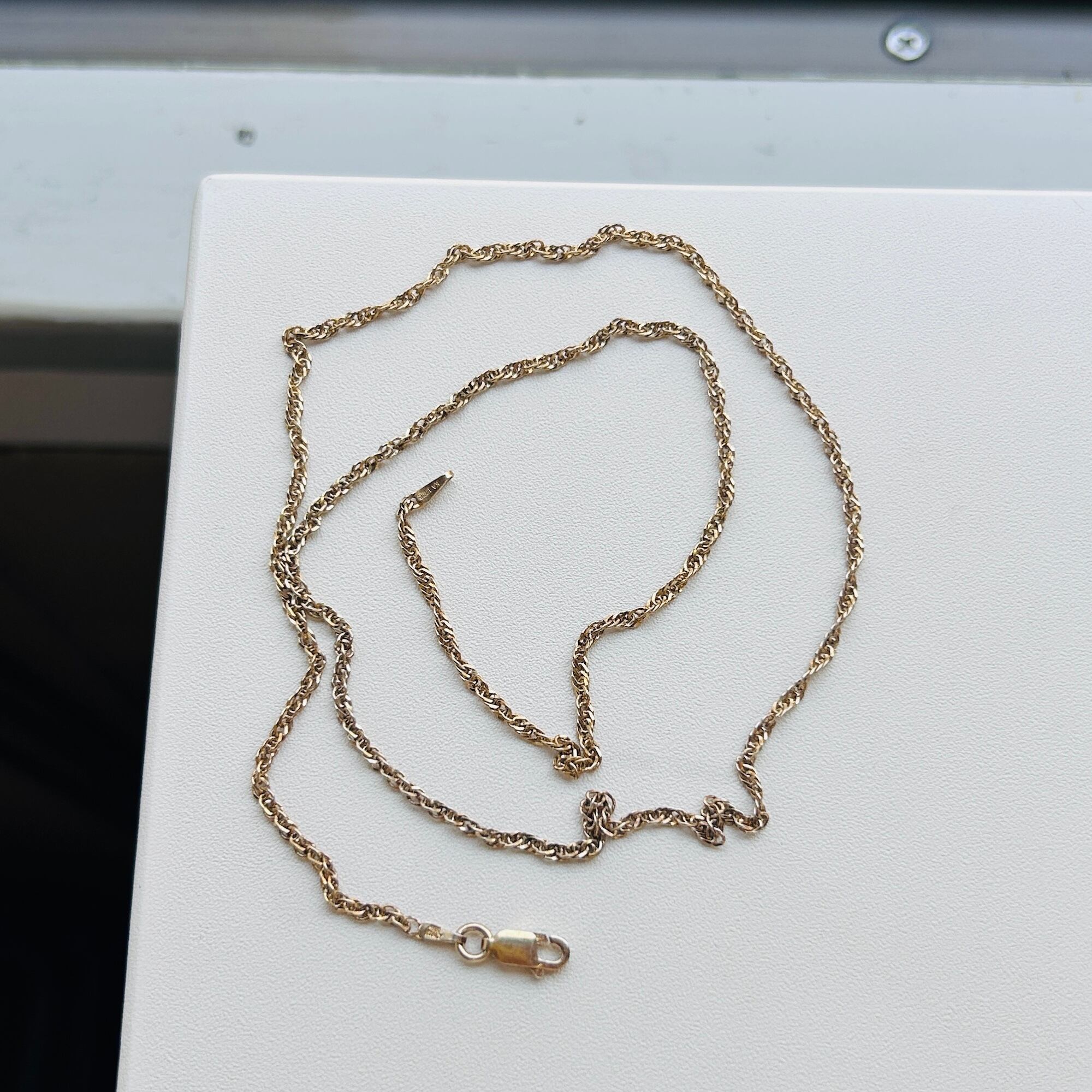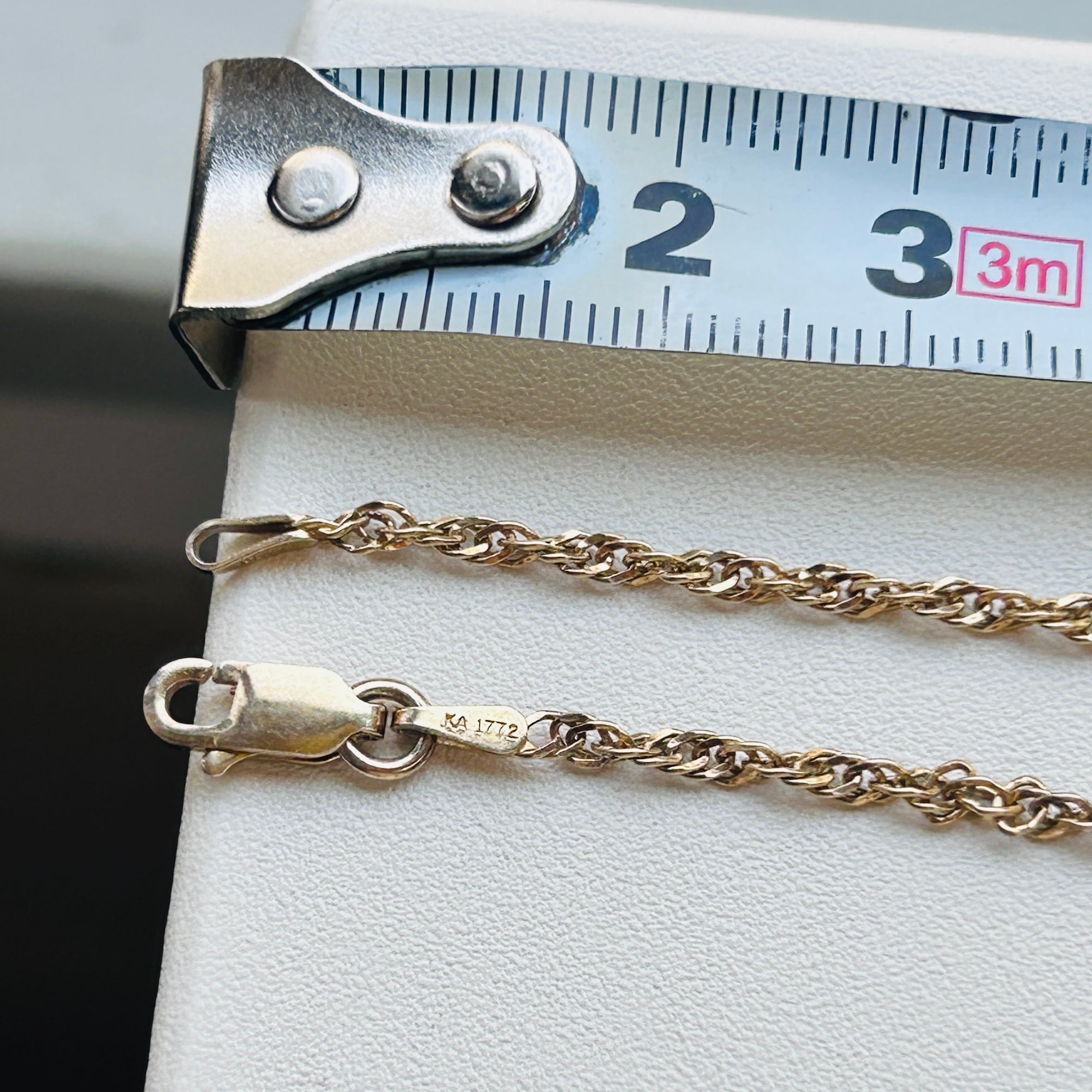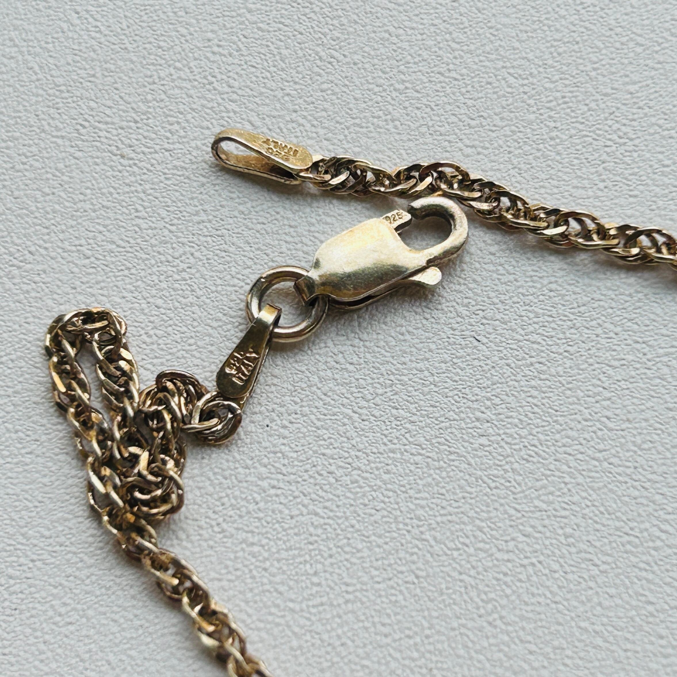 シルバーに金メッキのツイストチェーン。細かいコマが連なってツイストしていますので柔らかいネックレスです。やや色褪せた金麦色。セピアがかった金色でノスタルジックな雰囲気です。刻印は「ITALY」「925」とメーカー名。シルバーに金メッキが施されたジュエリーの変色が気になったら、私はシルバー液体クリーナーで手入れをしています。金色が薄く明るくなりますが落ち着いてきます。