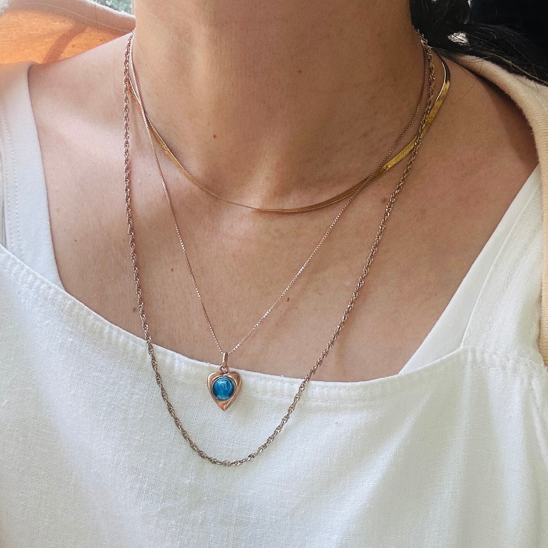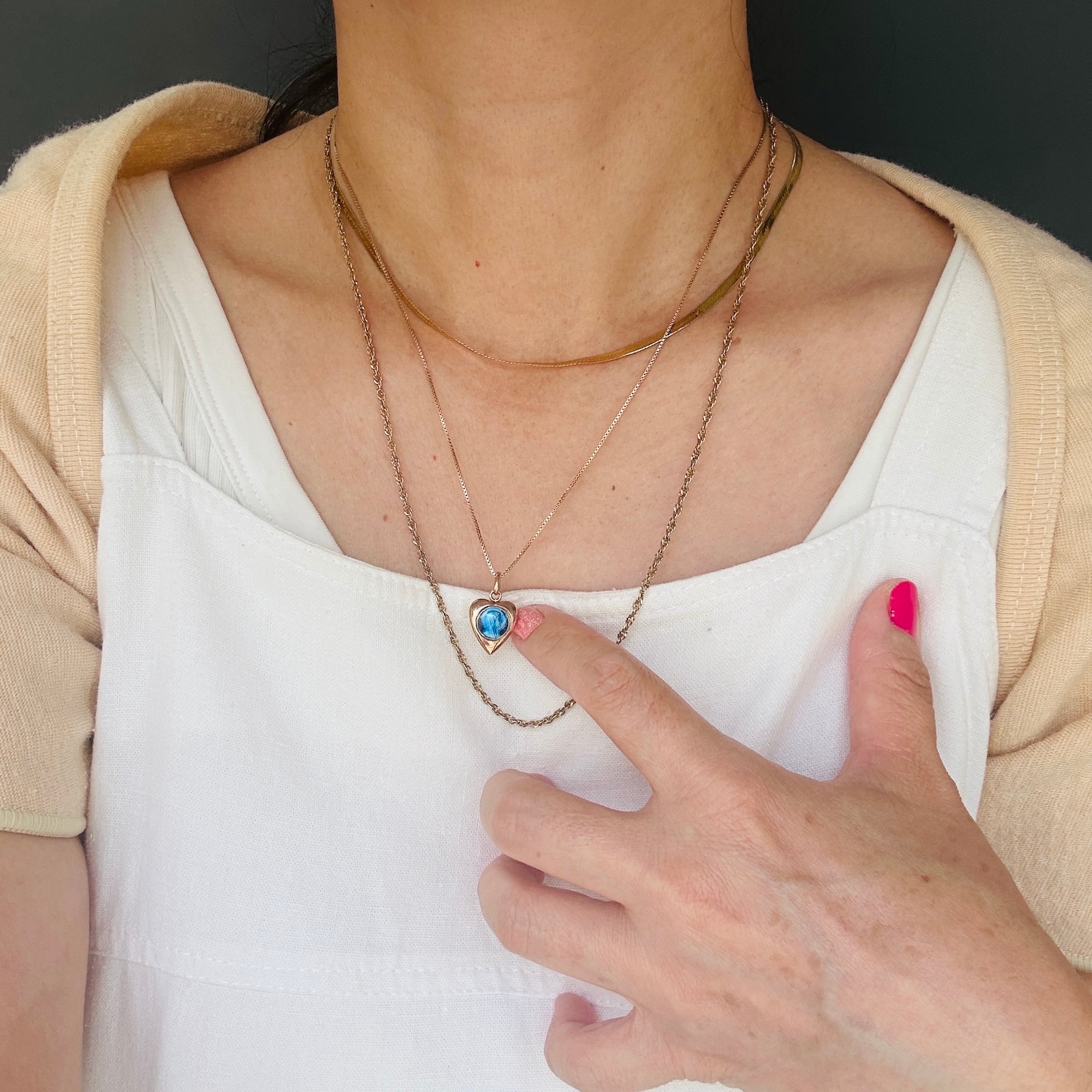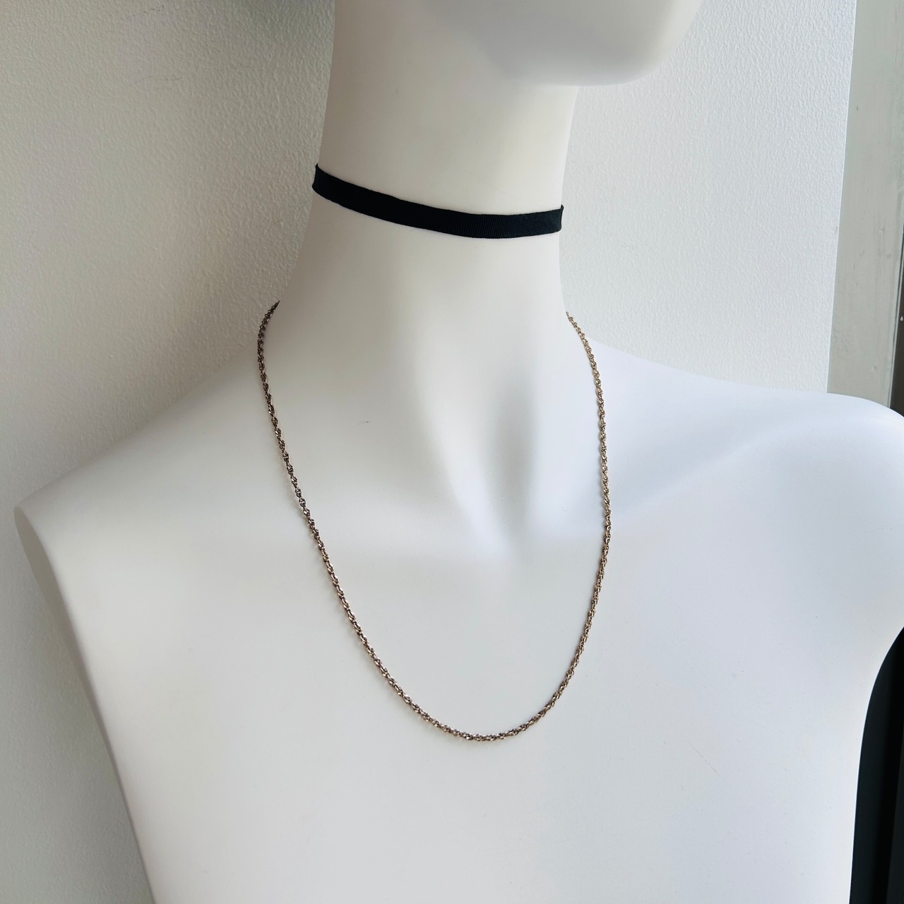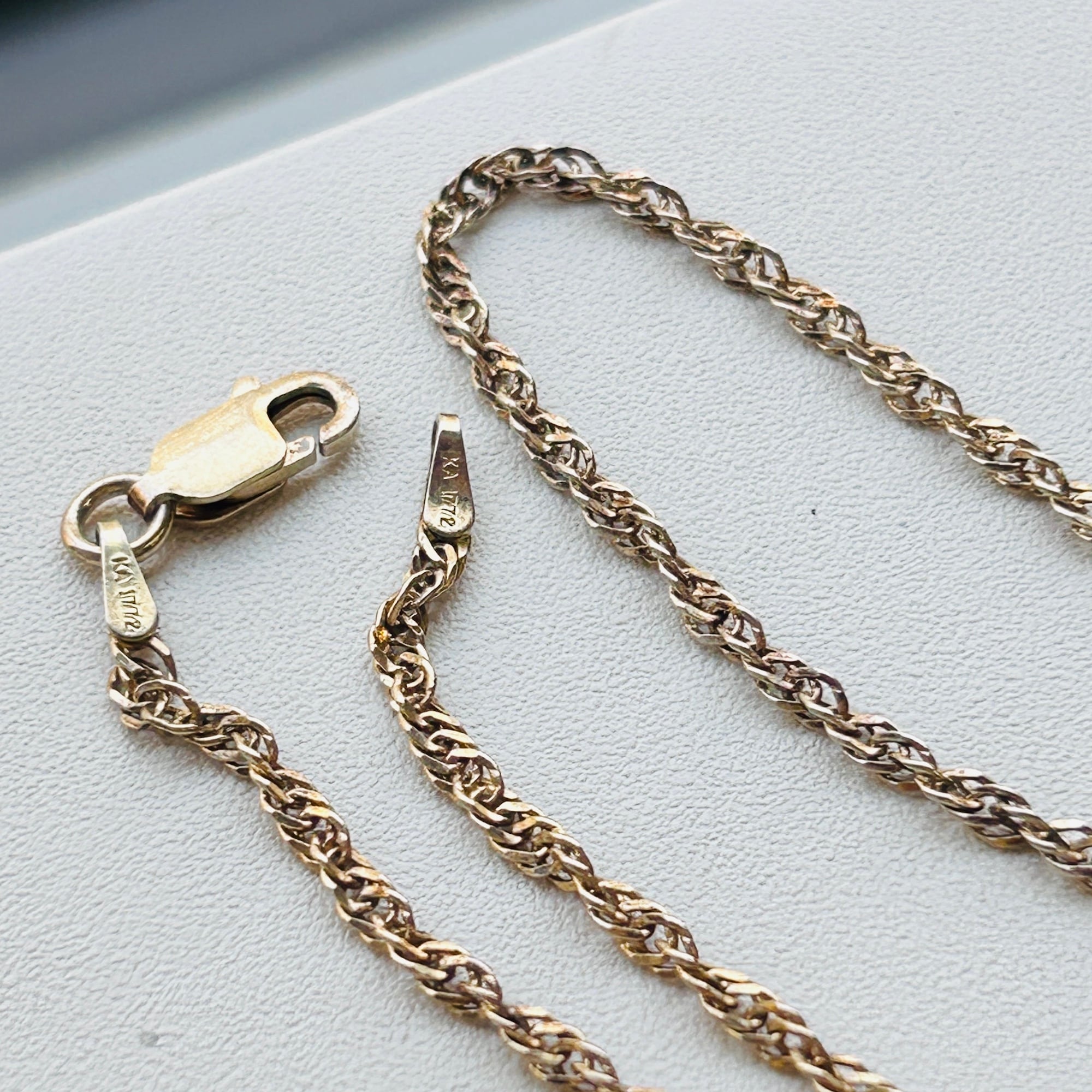 シルバーに金メッキのツイストチェーン。細かいコマが連なってツイストしていますので柔らかいネックレスです。やや色褪せた金麦色。セピアがかった金色でノスタルジックな雰囲気です。刻印は「ITALY」「925」とメーカー名。シルバーに金メッキが施されたジュエリーの変色が気になったら、私はシルバー液体クリーナーで手入れをしています。金色が薄く明るくなりますが落ち着いてきます。
