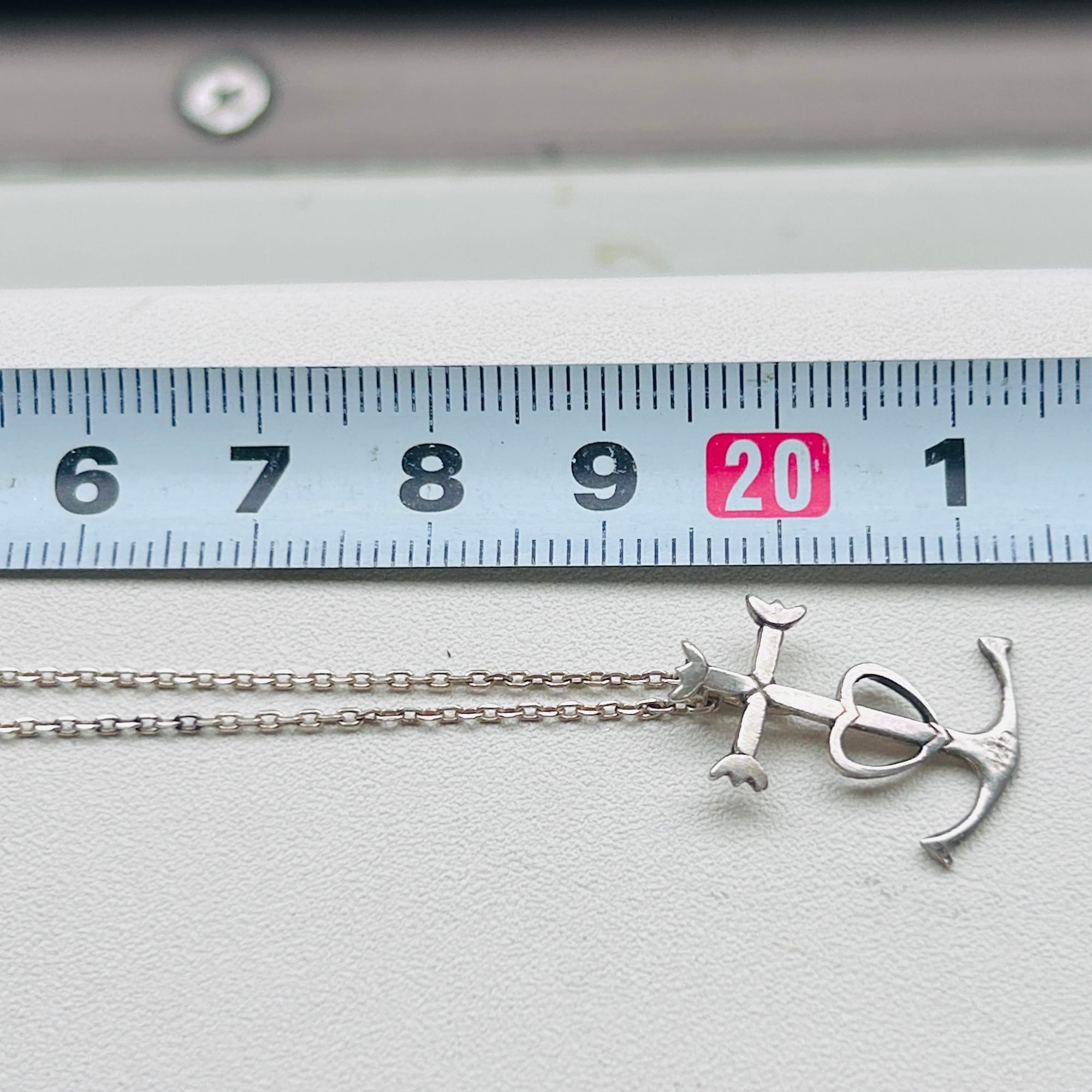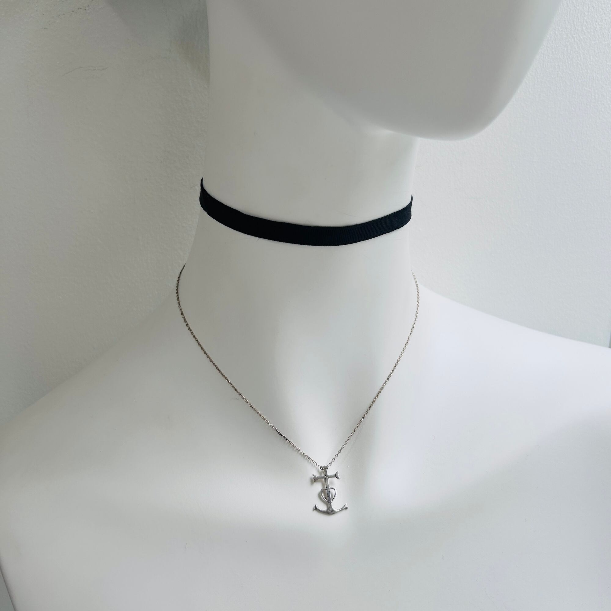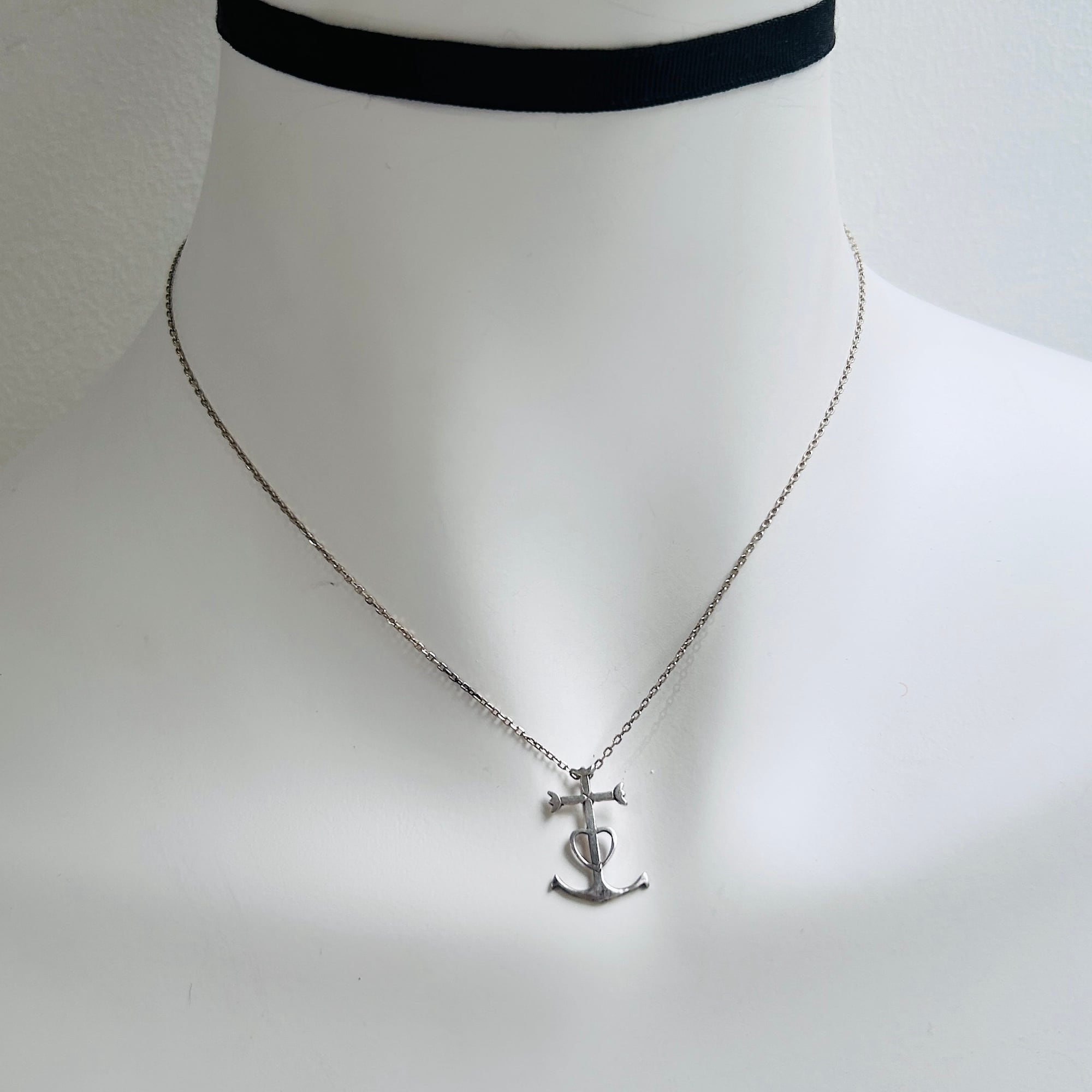 ユニークなクロスモチーフのショート丈ネックレス。フランスのカマルグ地方で使用される「信仰、希望、慈愛」の3つを象徴するカルマグクロスと呼ばれるシンボルです。チェーンは華奢なアズキチェーン。短くて可愛い。全体的に華奢な作りのキュートなネックレスです。チェーンに「925」とフランスメーカーマーク。カルマグクロス裏に読み取れない刻印あり。