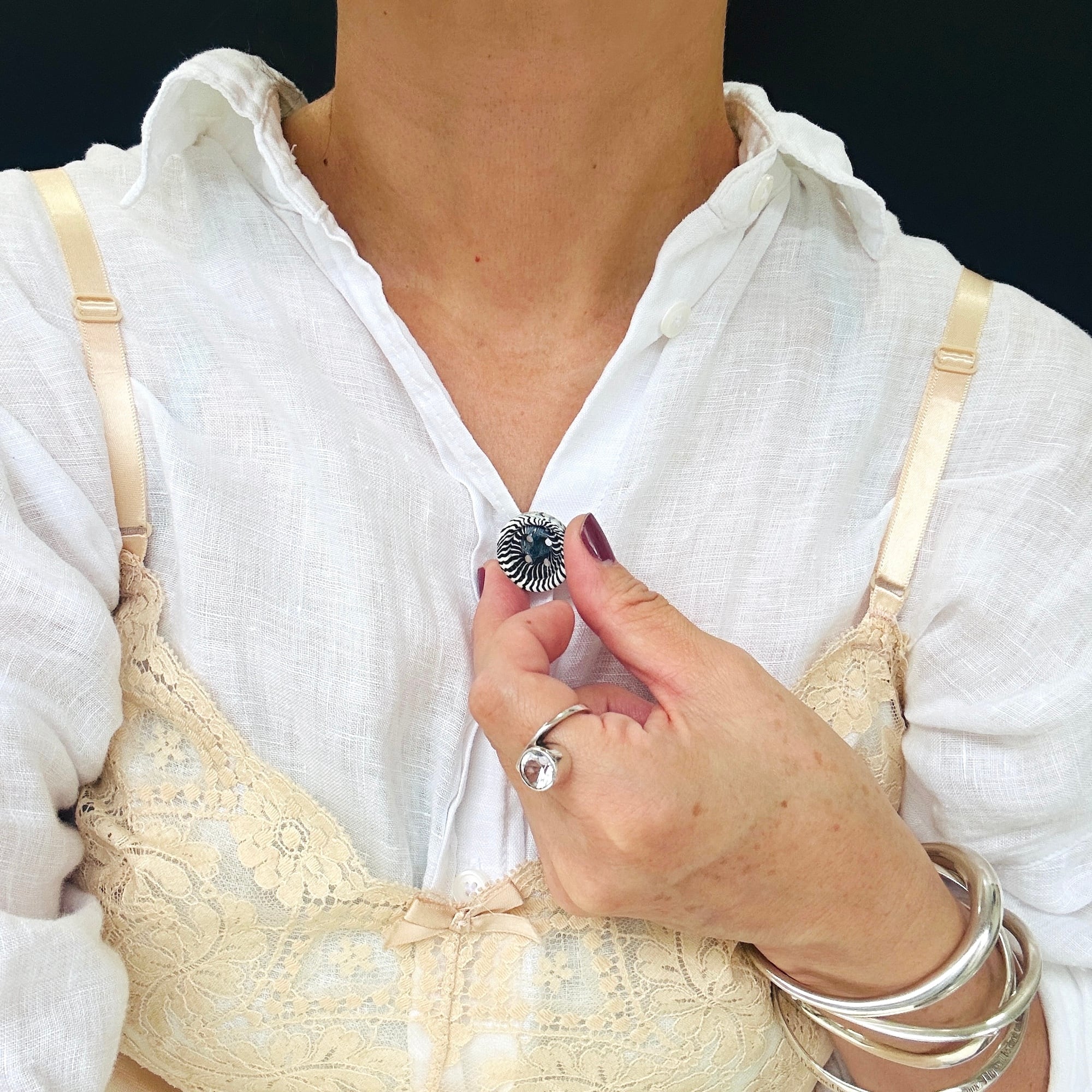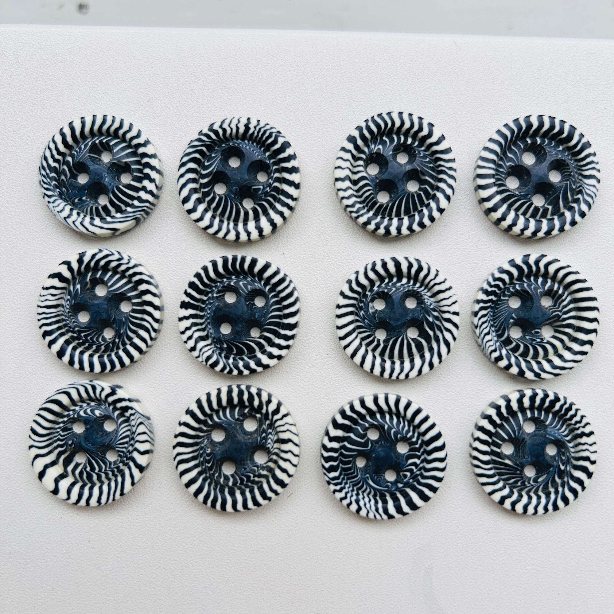 フランスのヴィンテージボタン。樹脂っぽい軽い材質です。シャツのボタンを付け替えたり、ジャケットやニットの襟元に縫い付けたり、アクセサリーパーツとして、etc. 自由なアイデアで使って下さい。ボタン6個1セット販売。在庫2セットです。