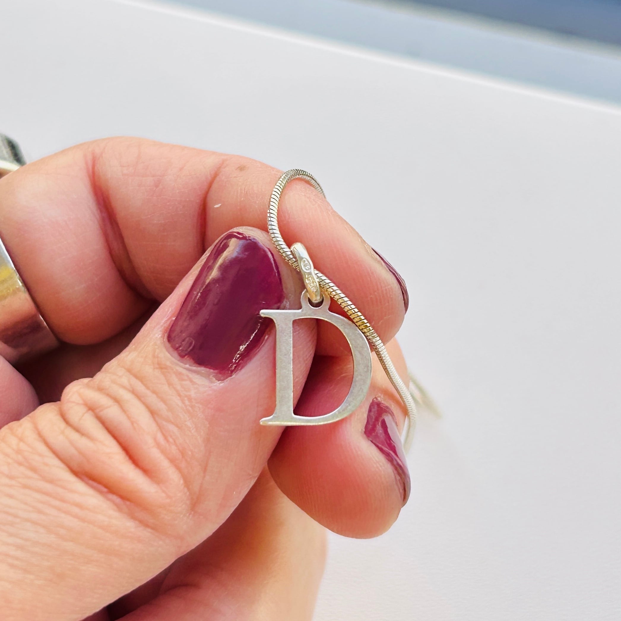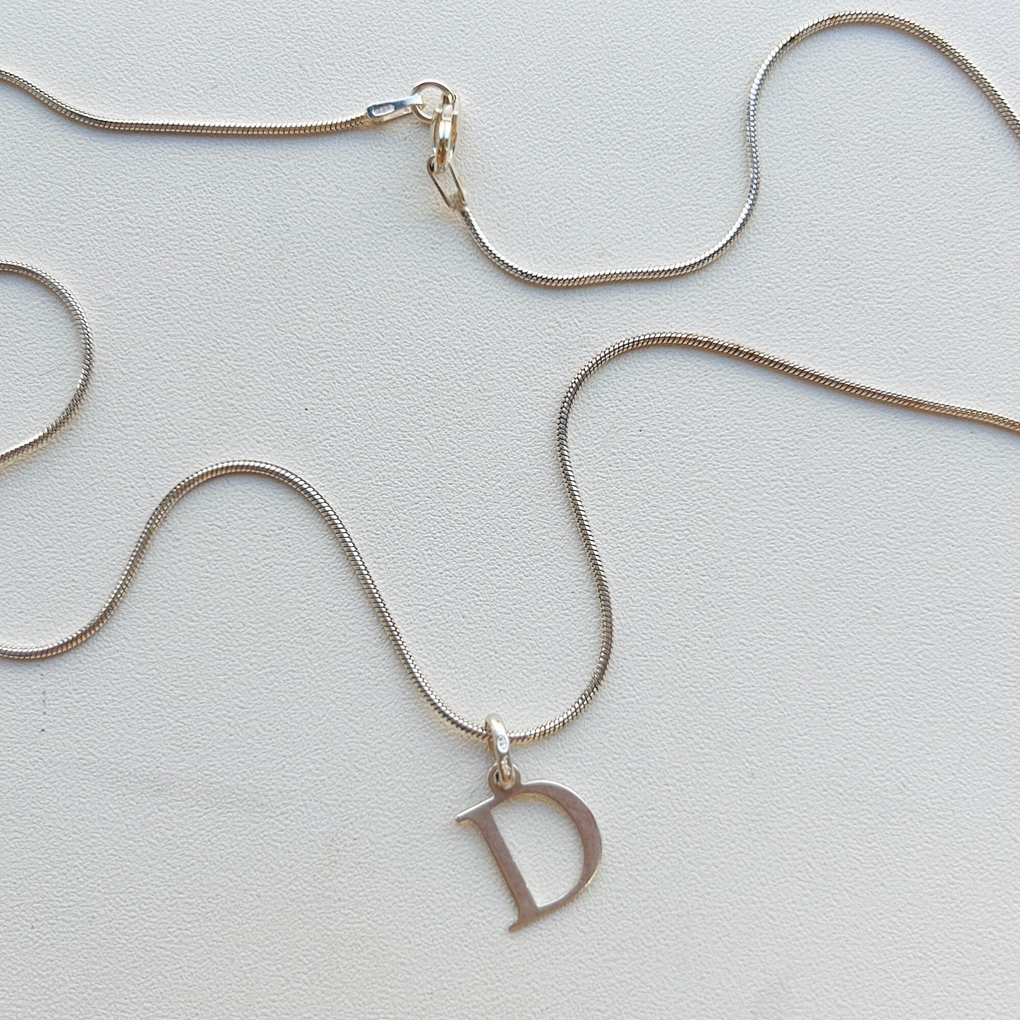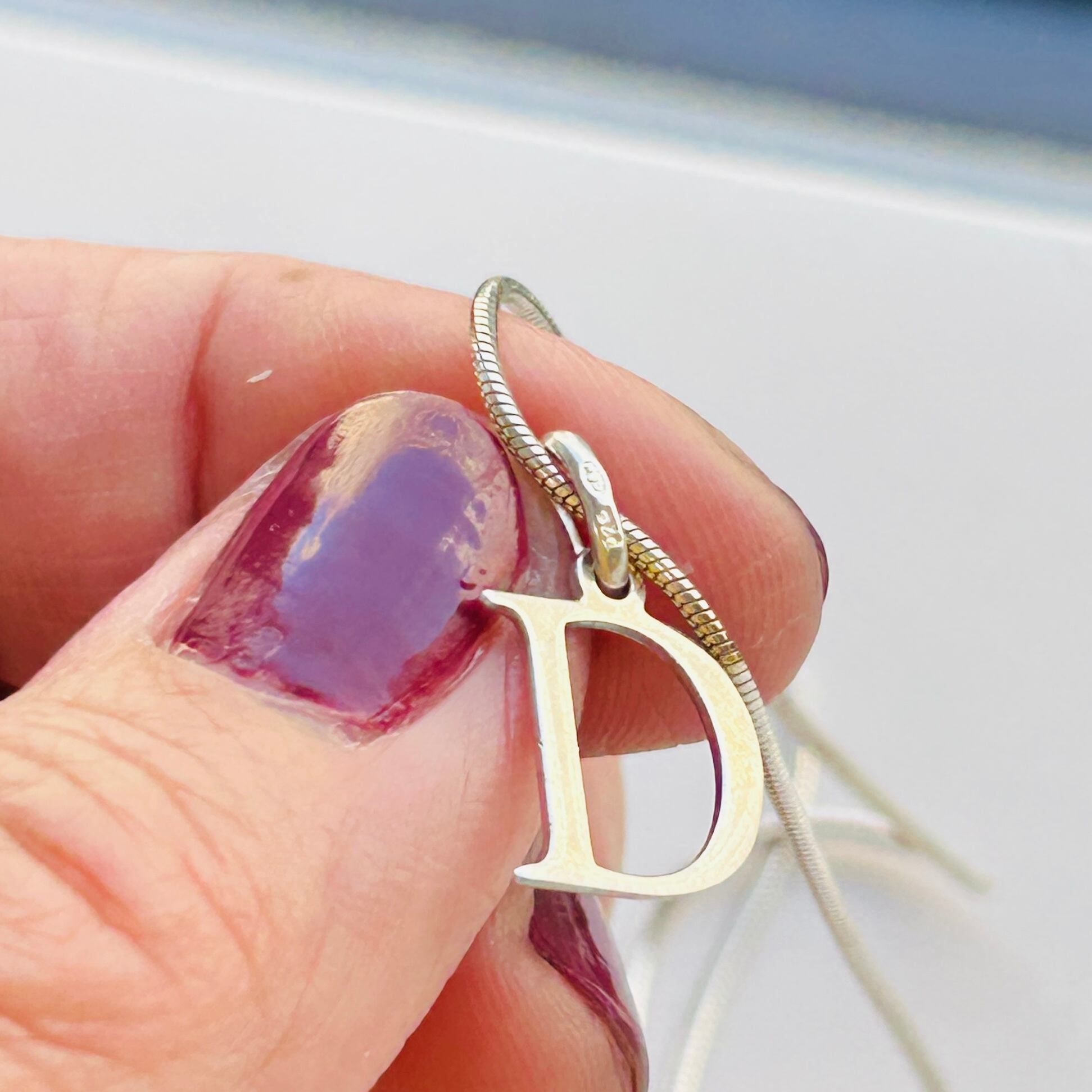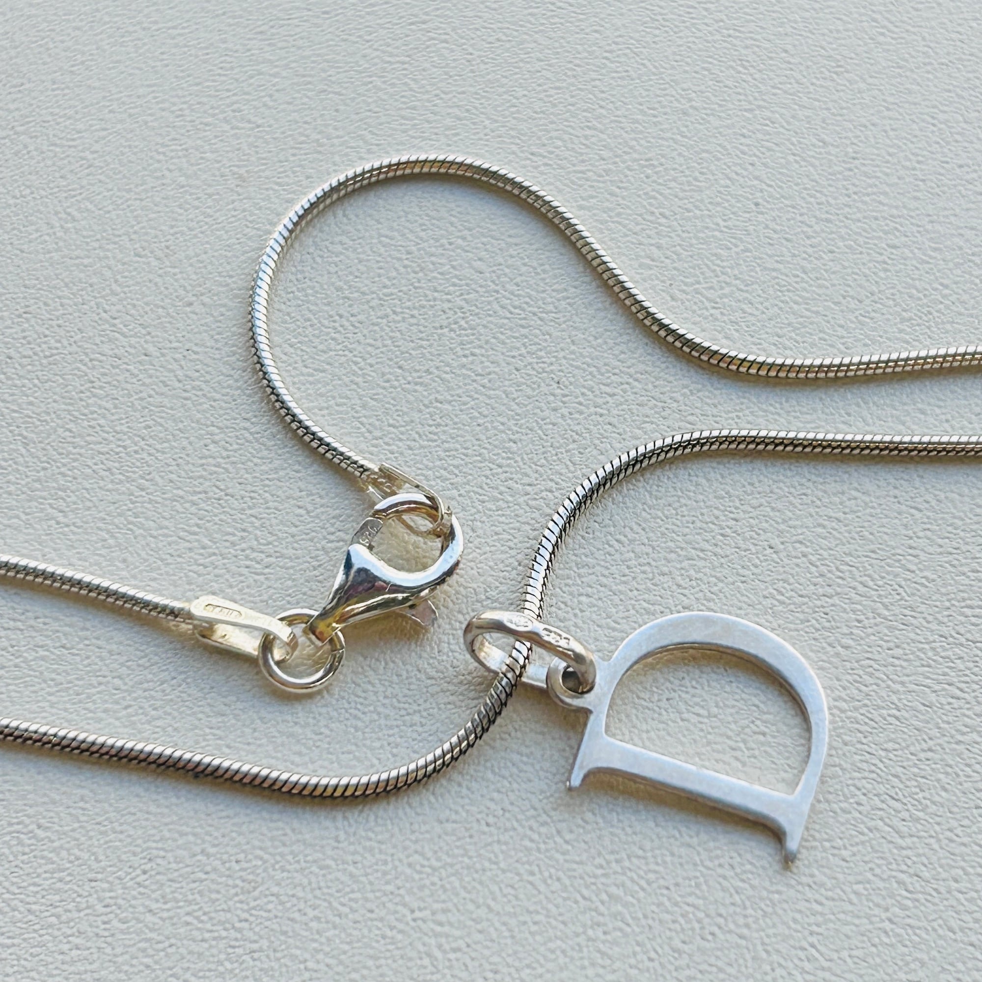 フランスから届きましたイニシャルネックレス。シャープなDとシンプルなスネークチェーンのスタイリッシュな組み合わせです。Dは楕円カンに「925」とフランスメーカー刻印。チェーンに「925」とイタリアンシルバーマーク。留め具を着け外しする時は、スネークチェーンを曲げずに金具部分だけを持って着け外しするとチェーンに折れ跡がつきません。