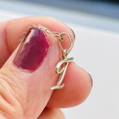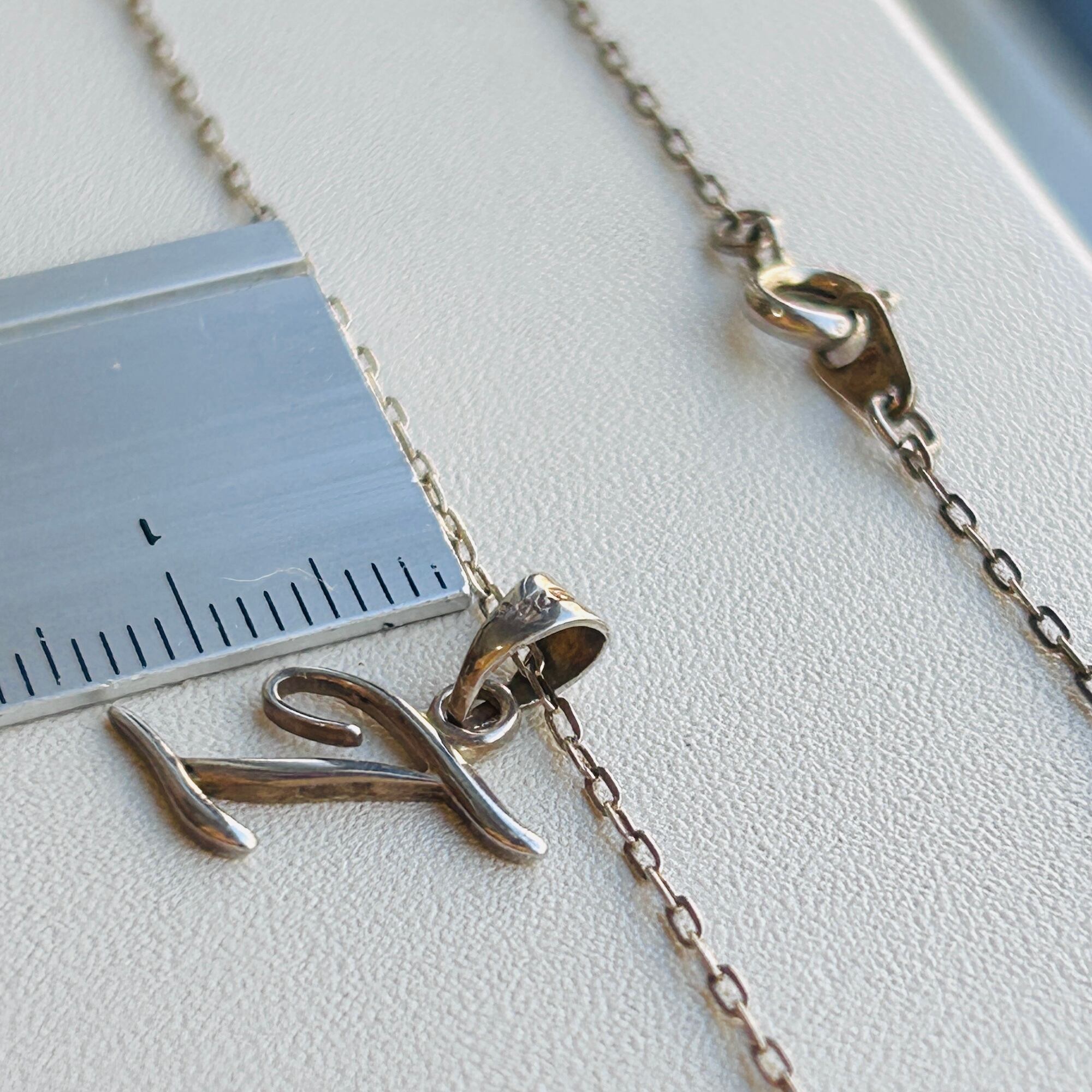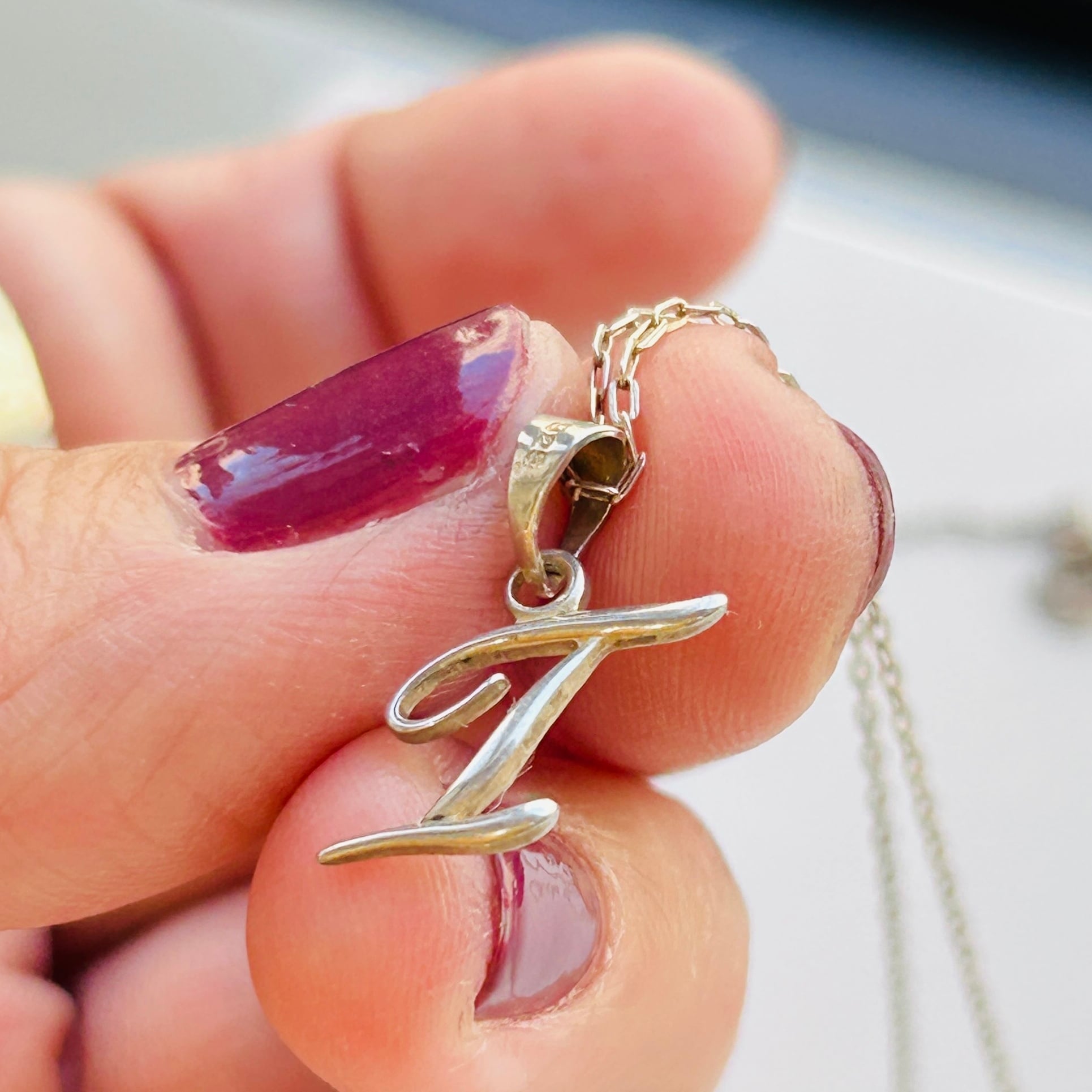 フランスから届きましたイニシャルネックレス。筆記体のTとシャランとした華奢なアズキチェーンの優雅なアンティークな雰囲気漂うネックレスです。Tのベイルに「925」、チェーンは「835」とメーカーマーク。思いっきり引っ張ったらちぎれそうなデリケートな華奢チェーンです。