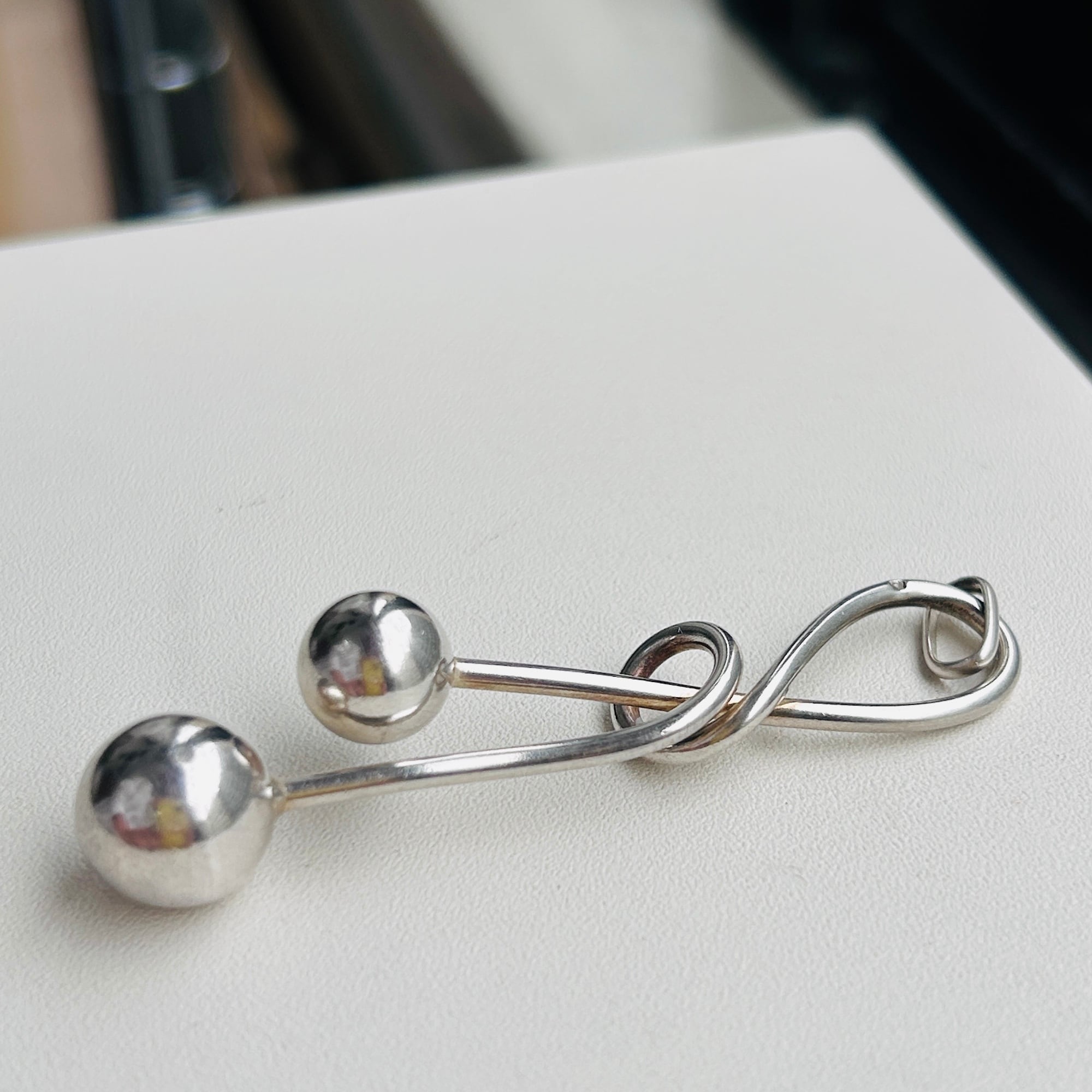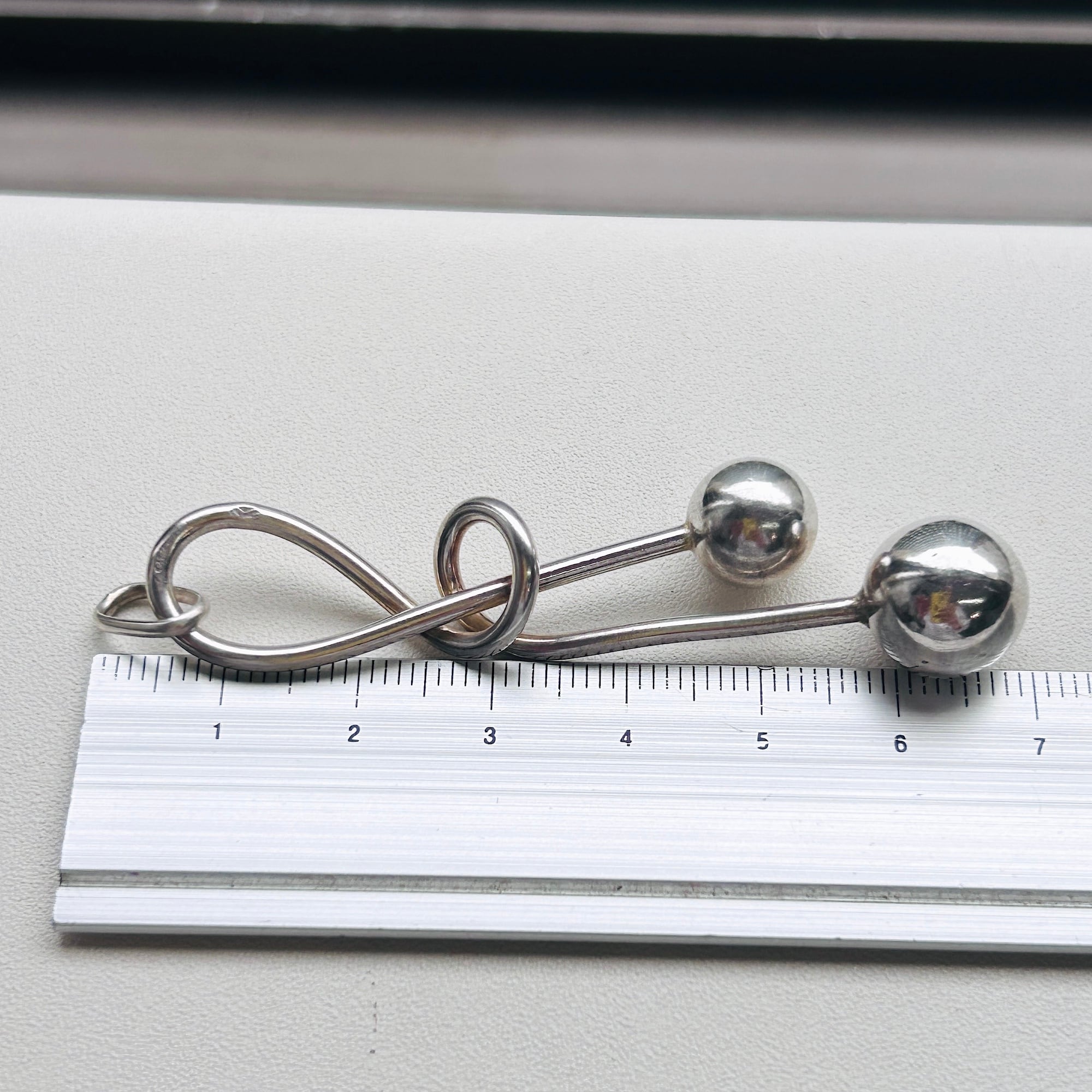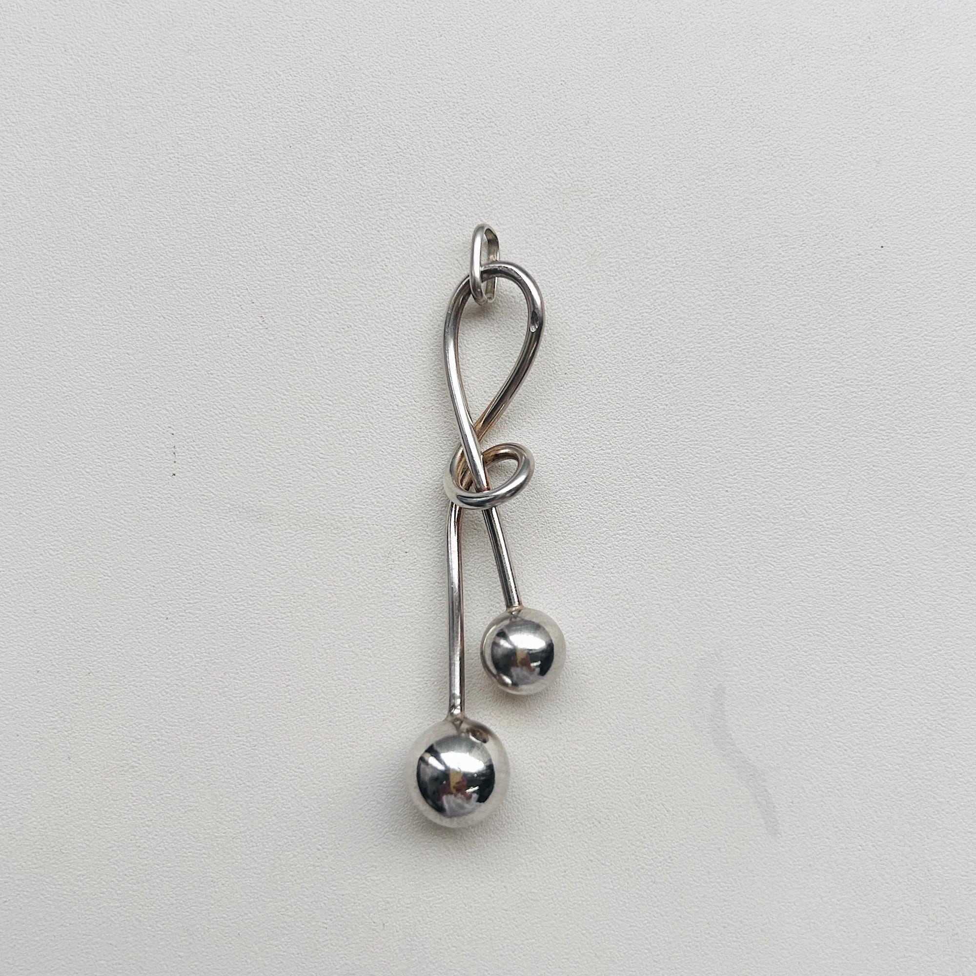 クルンとした結び目のペンダントトップ。可愛いアクセントになるボールも着いていてモダン&キュートです。スタイリングに取り入れやすいスッキリした縦長型がいいですね。お手持ちのチェーンと合わせて着用ください。刻印はcrab(カニ)とフランスメーカーマーク。カニはフランスシルバー800を最低保証する、1838〜1984年まで使用されたマークです。