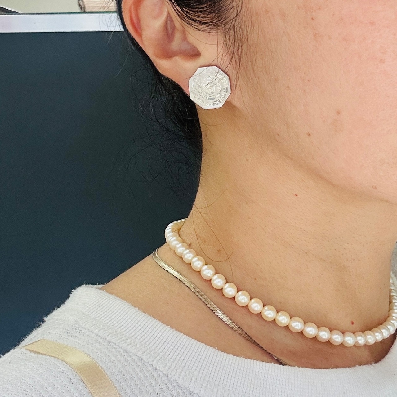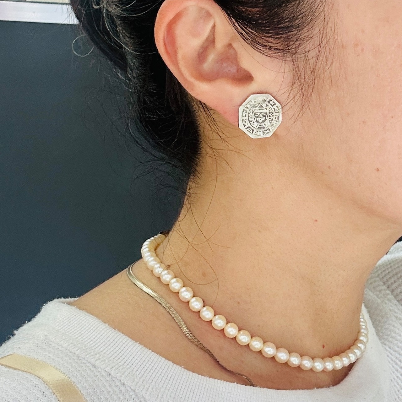 メキシカンシルバーのヴィンテージカフスを修理屋さんでクリップイヤリングにしてもらいました。クリップ金具もシルバー925です。厚みのある八角形で表面はアステカ暦です。裏にメキシカンシルバーの刻印が残っています。着け心地もGOOD。