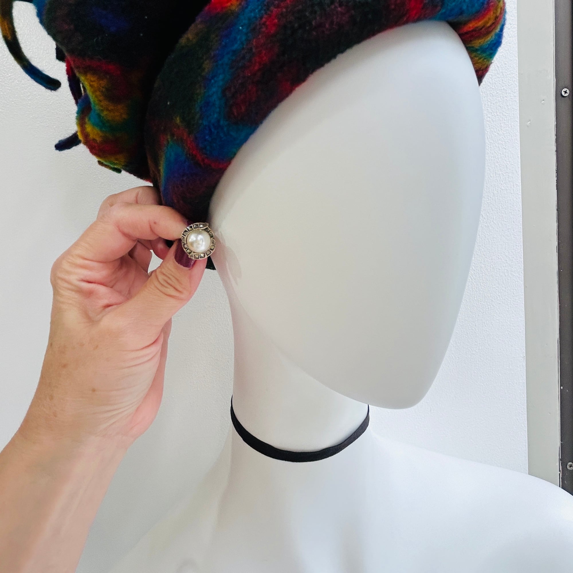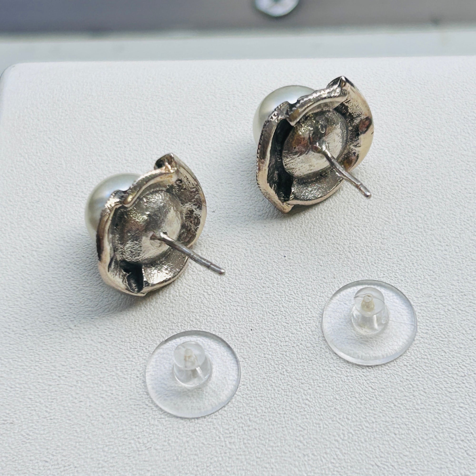 前面に出た大きめパールが小悪魔キュートなピアス。レイヤー状に重なり合ったフレームにはマーカサイトが静かにキラキラ輝いています。シックな素材で程よいボリューム感。派手すぎず使いやすいと思います。パールは模倣パール。裏面に「925」刻印。