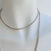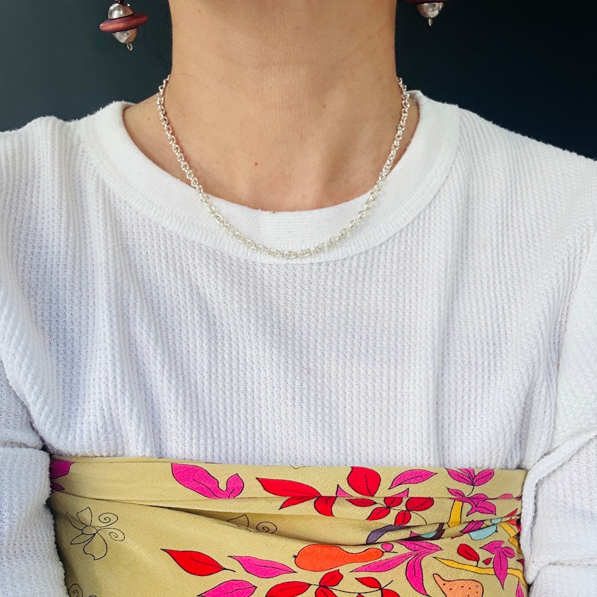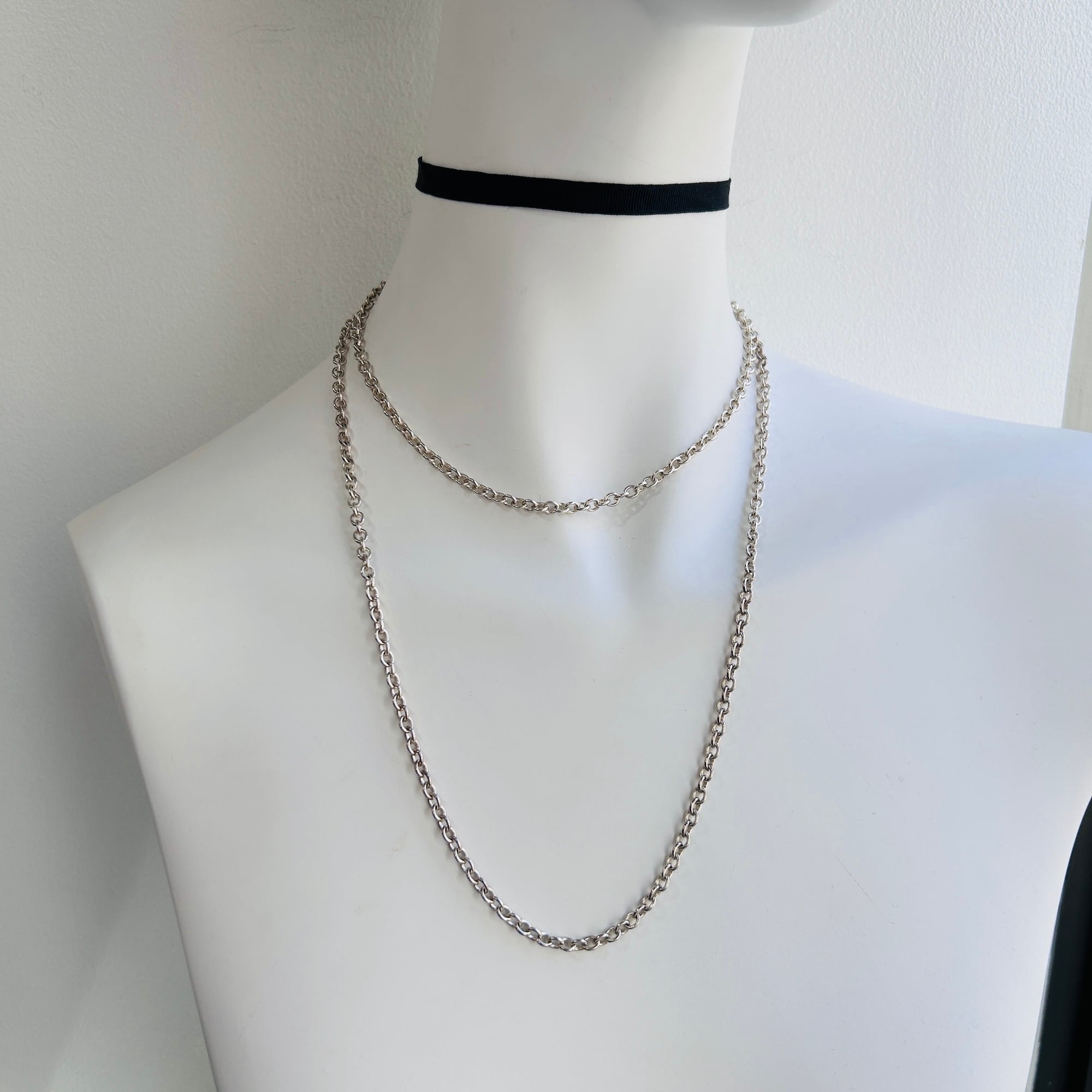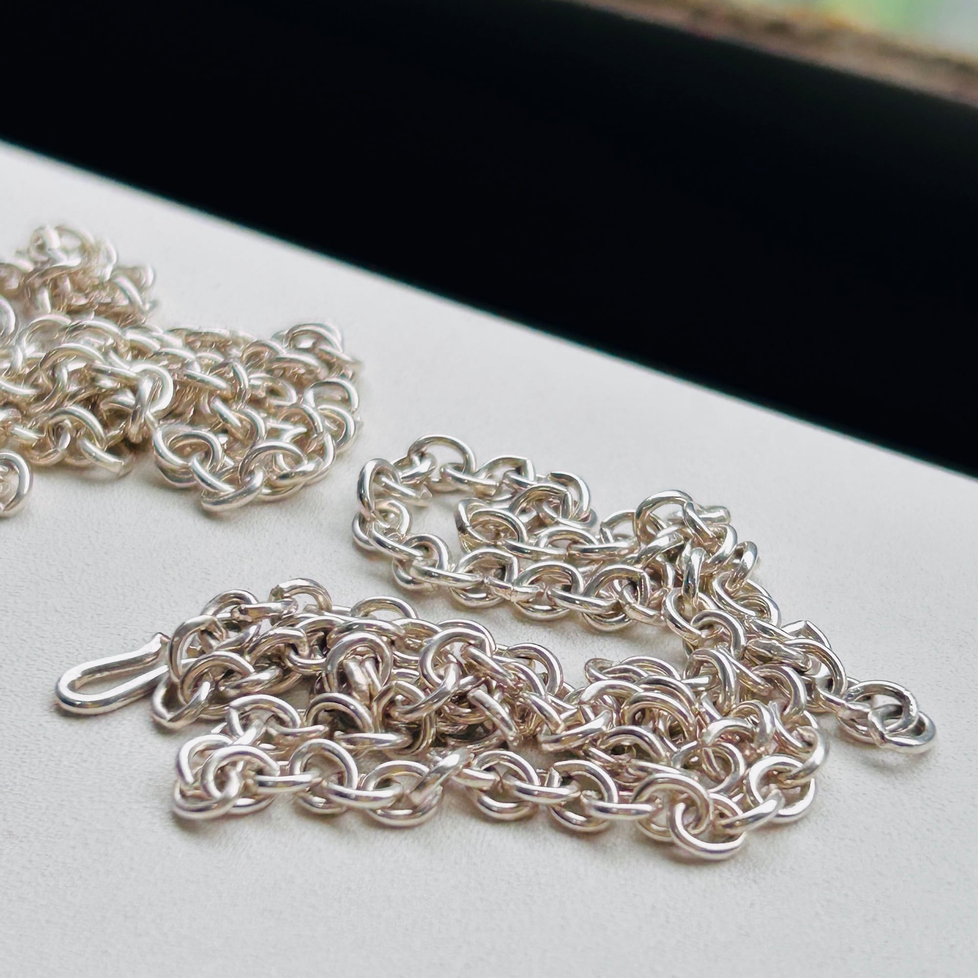 スウェーデン・ストックホルムの Rey Urban(レイ・ウルバン)ストアより直接輸入されたユティリティチェーン。程よい太さのアズキチェーンに引っ掛け金具の極シンプルな作り。単体だとスタイリッシュ、チャームとの相性も抜群。チャームを際立ててくれる品格あるチェーンです。金具のカタチはそれぞれ微妙に異なります。チェーンコマは全てロウ付けされています。引っ掛け金具は一番端っこのコマのみ引っ掛けることが可能で長さの調整はできません。(長い方のチェーンはどこにでも引っ掛けることができるので金具形状の違いかなと思いますが、詳しく解明できません)。引っ掛け金具を首の後ろから前に持ってきて取り外しがやりやすいです。現在在庫2本、長さが5mmほど違います。*シルバーアクセサリーはこちらのような留め具がないタイプが一番扱いやすいので強くオススメします。留め具は消耗しますので緩んだり、動きが悪くなってきます。その点、引っ掛け金具は金属疲労の心配がありません:)
