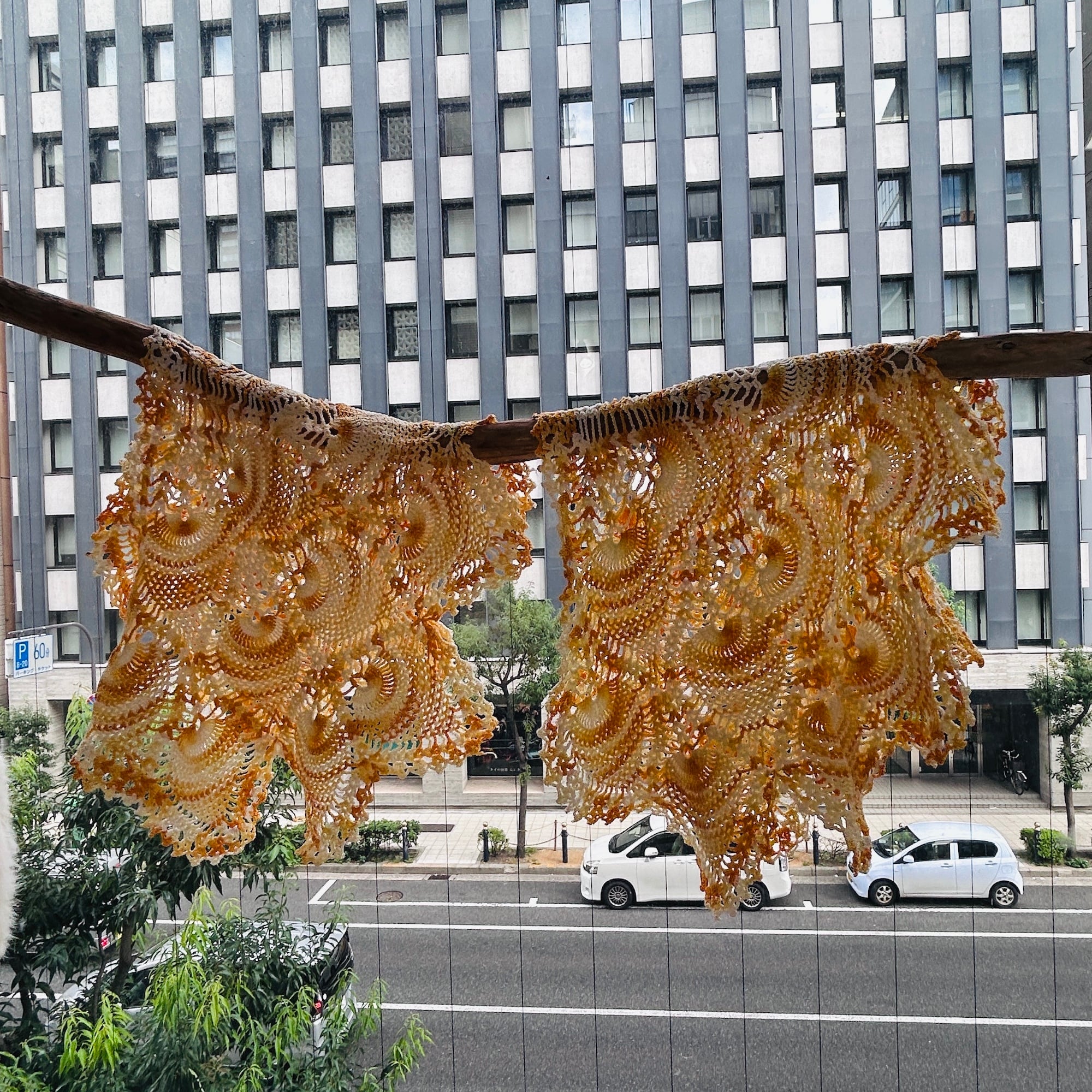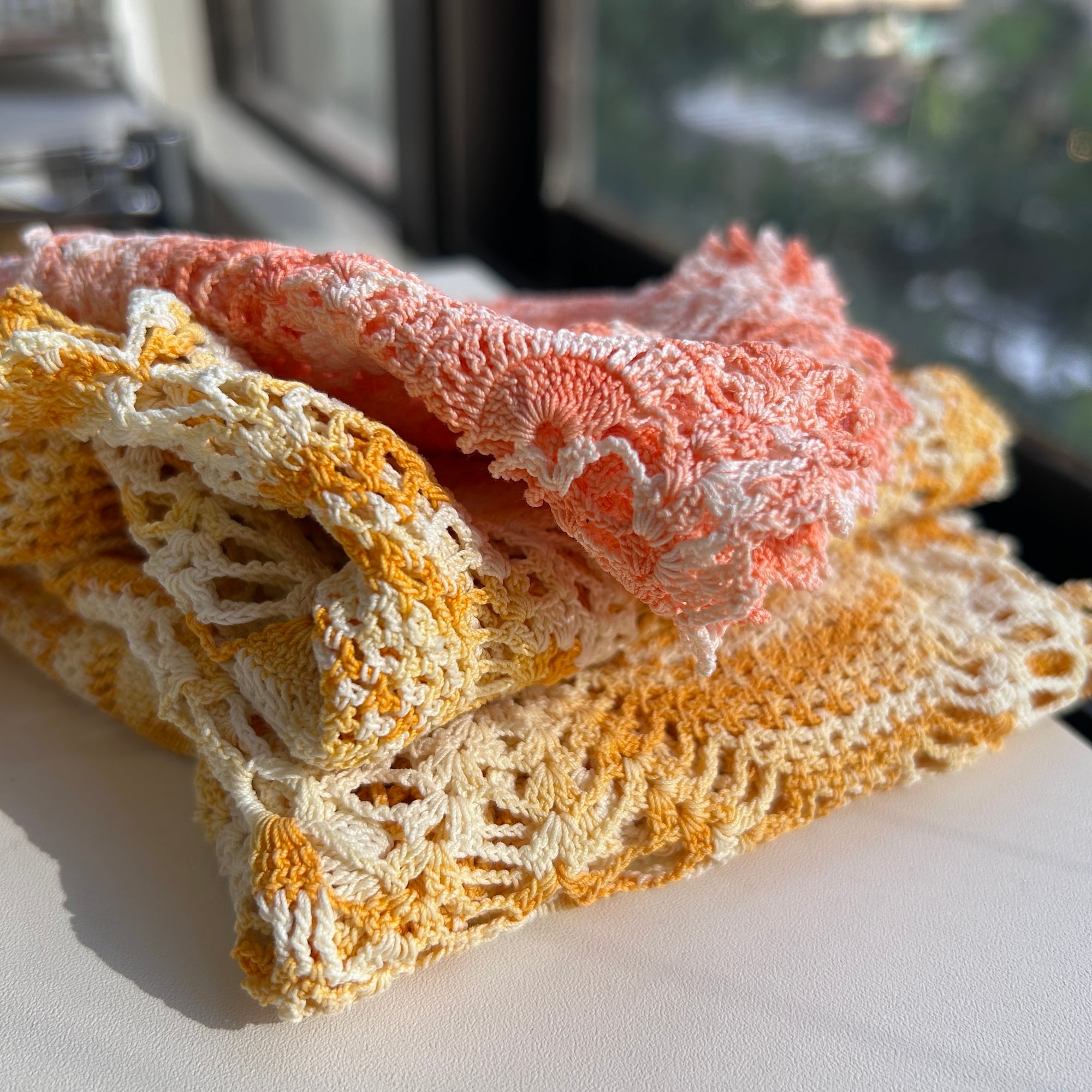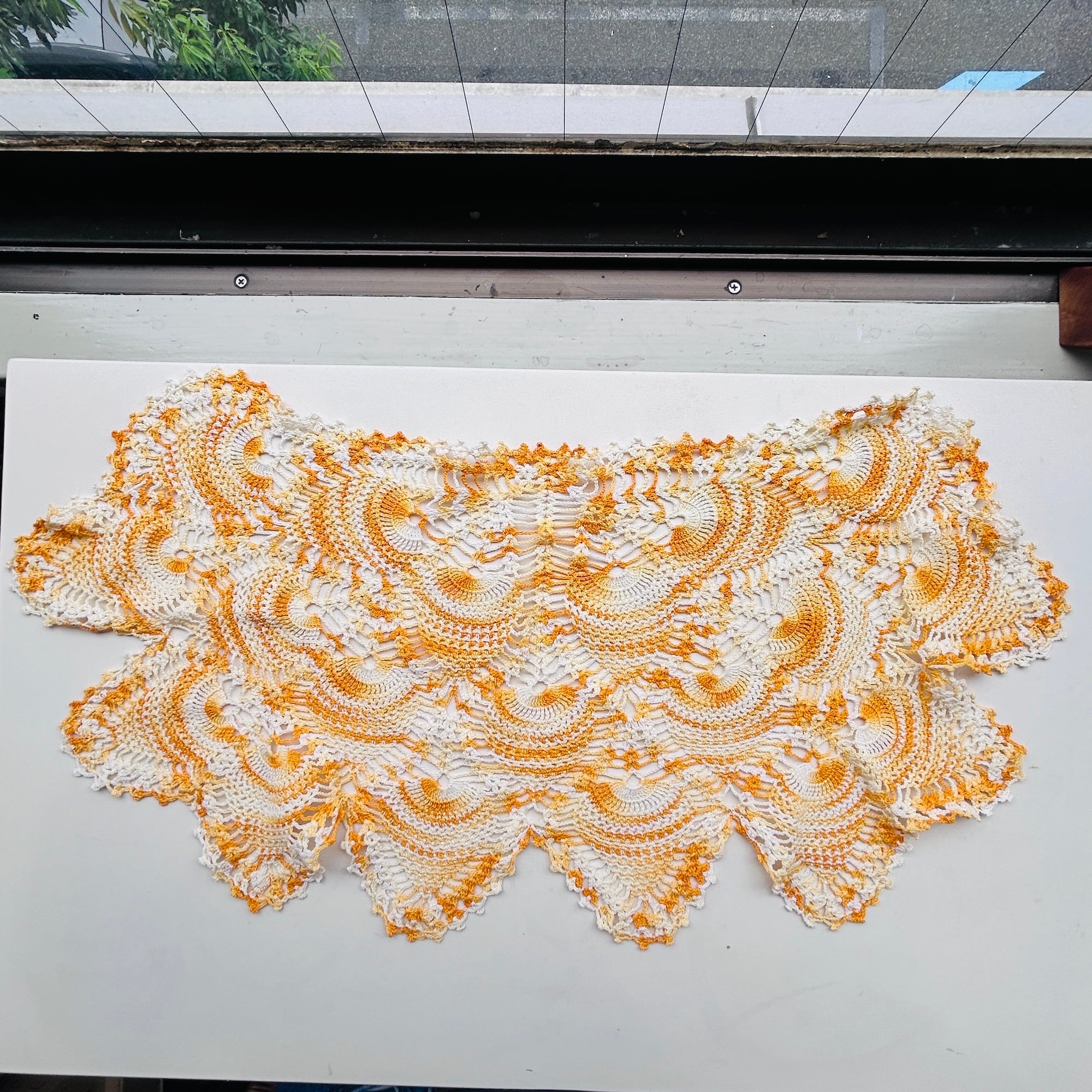 vintage オレンジ half サークル クロッシェドイリー
