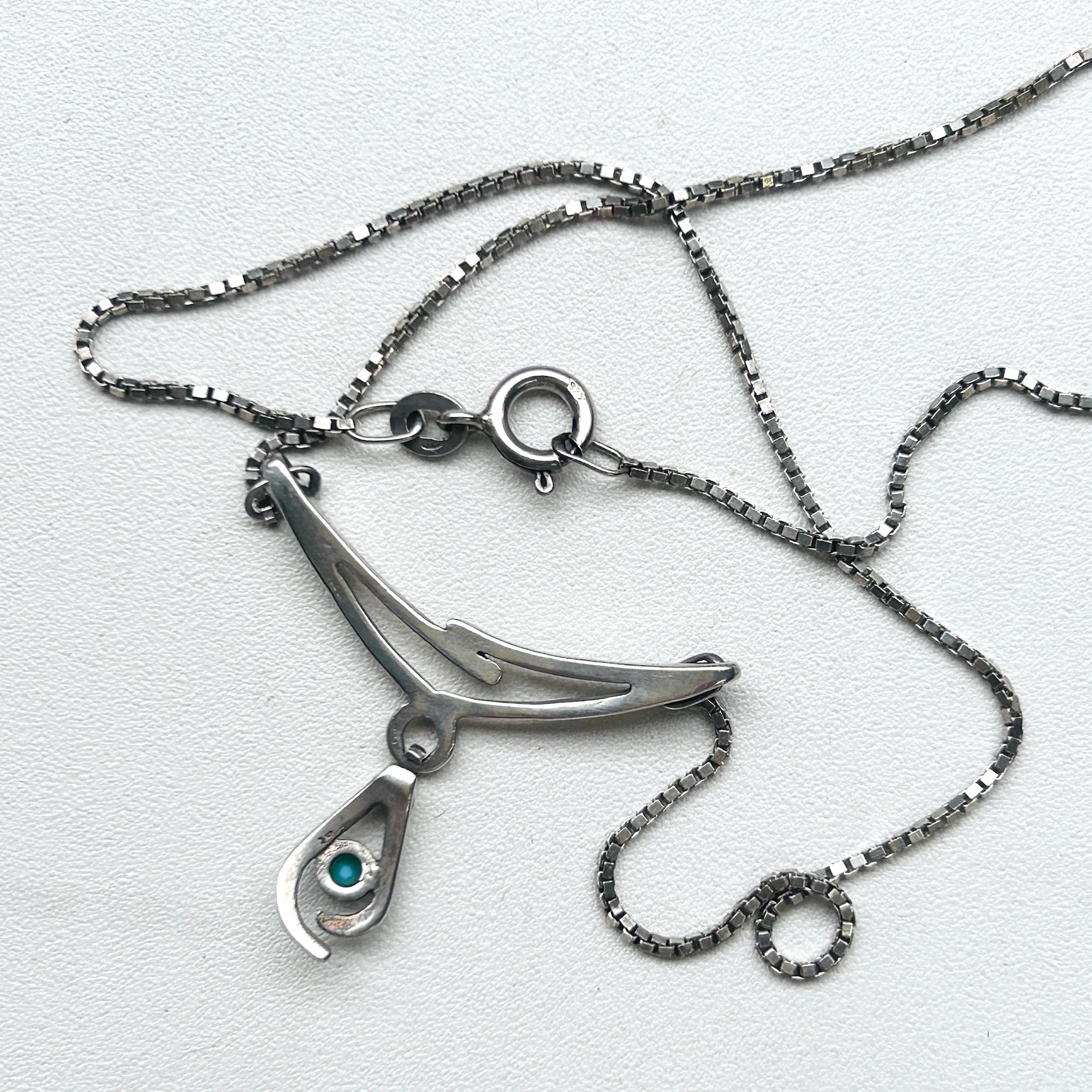 個性的なエスニックデザインネックレス。吊り下げタイプのデザイン。中央モチーフが個性的でラピュタとかナウシカを思わせる民族的なデザインだと思いました。ピカピカしすぎないツヤ控えめ、落ち着いたシルバーです。短いのでシャツの下に着けるのもいいですね:)引わ輪に「925」とフランスメーカーマーク。