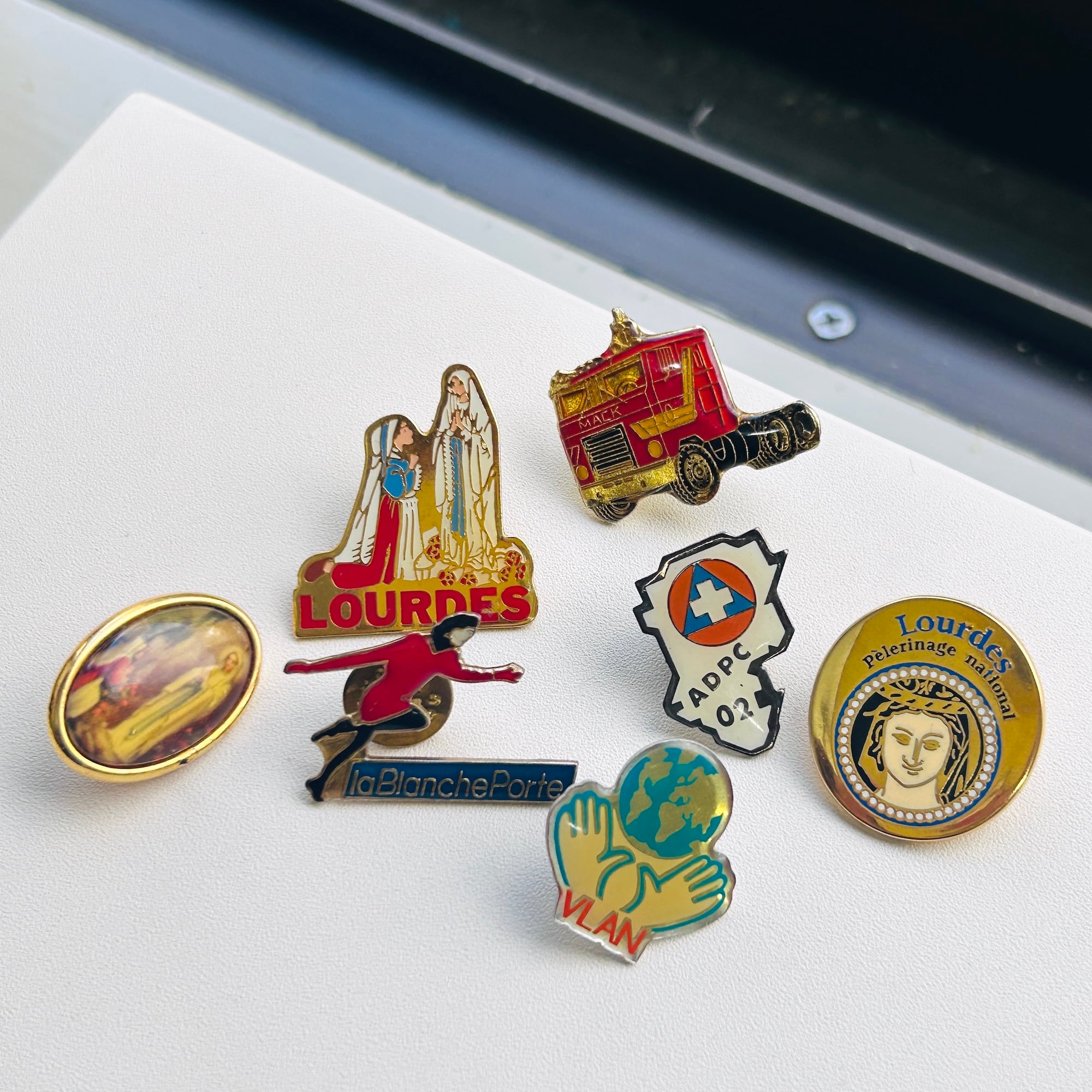 フランスのピンバッジです。サイズ異なりますが全て550円均一です。消防車?赤いトラックは針が少し歪んでいます。その他、使用に問題ありません。