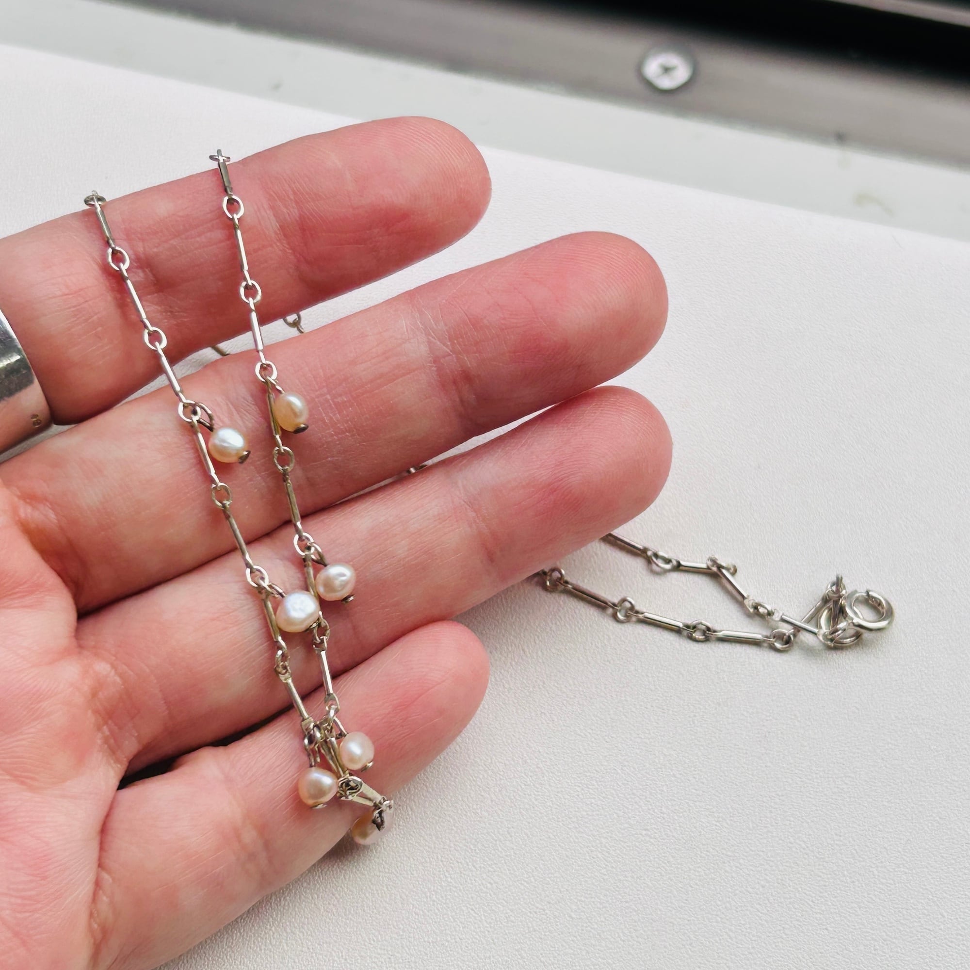 シルバー925 淡水パール バーリンクチョーカーネックレス(40cm)