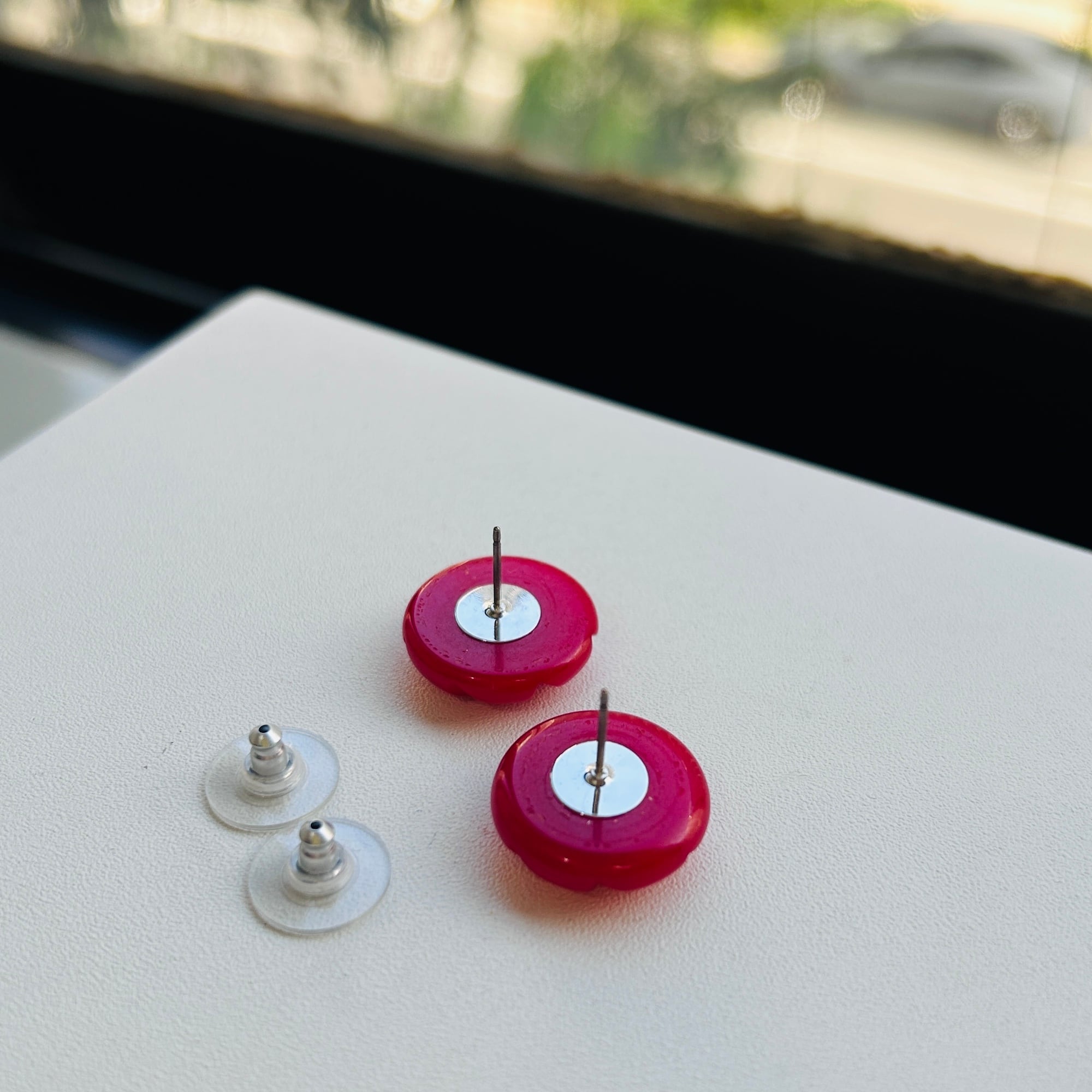 ベークライトイヤリングの金具を新品サージカルステンレス金具に交換いたします。金具は平皿ポストピアス、またはクリップイヤリングです。いつもお世話になってる修理屋さんに持ち込みます。納期は作業日数だけで4日かかりますので、修理出し・引き取り等を考慮して1週間くらいです。写真3のような裏にペイントがあるのは剥がれる可能性があり、似たような色でペイントすることになります。写真4のような背面までメタルがあるものは多少カットしたりすることもあります。それぞれのデザインに合わせていつも上手く仕上げて下さいます。何か気になることがありましたらどうぞお気軽にお問い合わせ下さいませ。