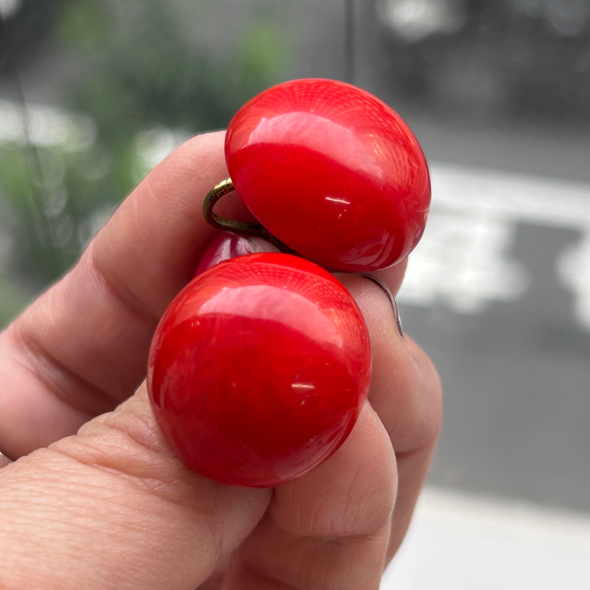 BAKELITE チェリーレッドベークライトドームイヤリング