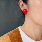 シンプルでキュートなドームイヤリング。少しマーブル模様の鮮やかでツヤのある赤色です。ネジはこちらでもキレイにしていますが細かい凹みに緑青色の錆が残っています。すいませんがご了承くださいませ。金具は有料でピアスもしくはクリップイヤリングに交換できます。その場合、ご注文からお届けに一週間くらいかかります。