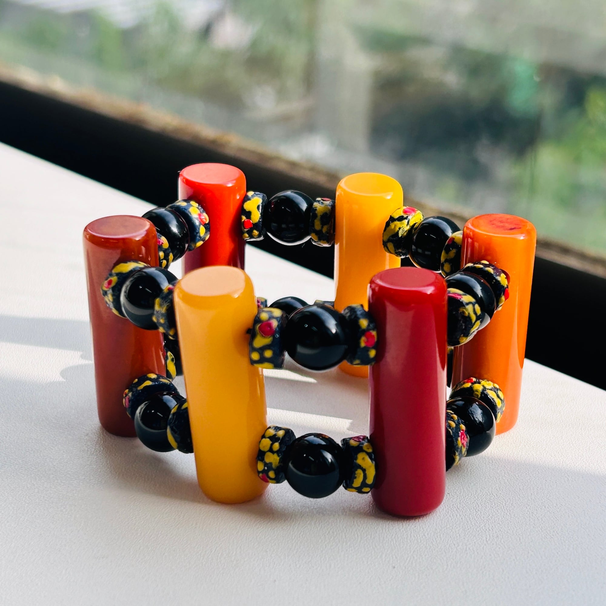 BAKELITE 円柱マルチカラービーズ ストレッチブレスレット