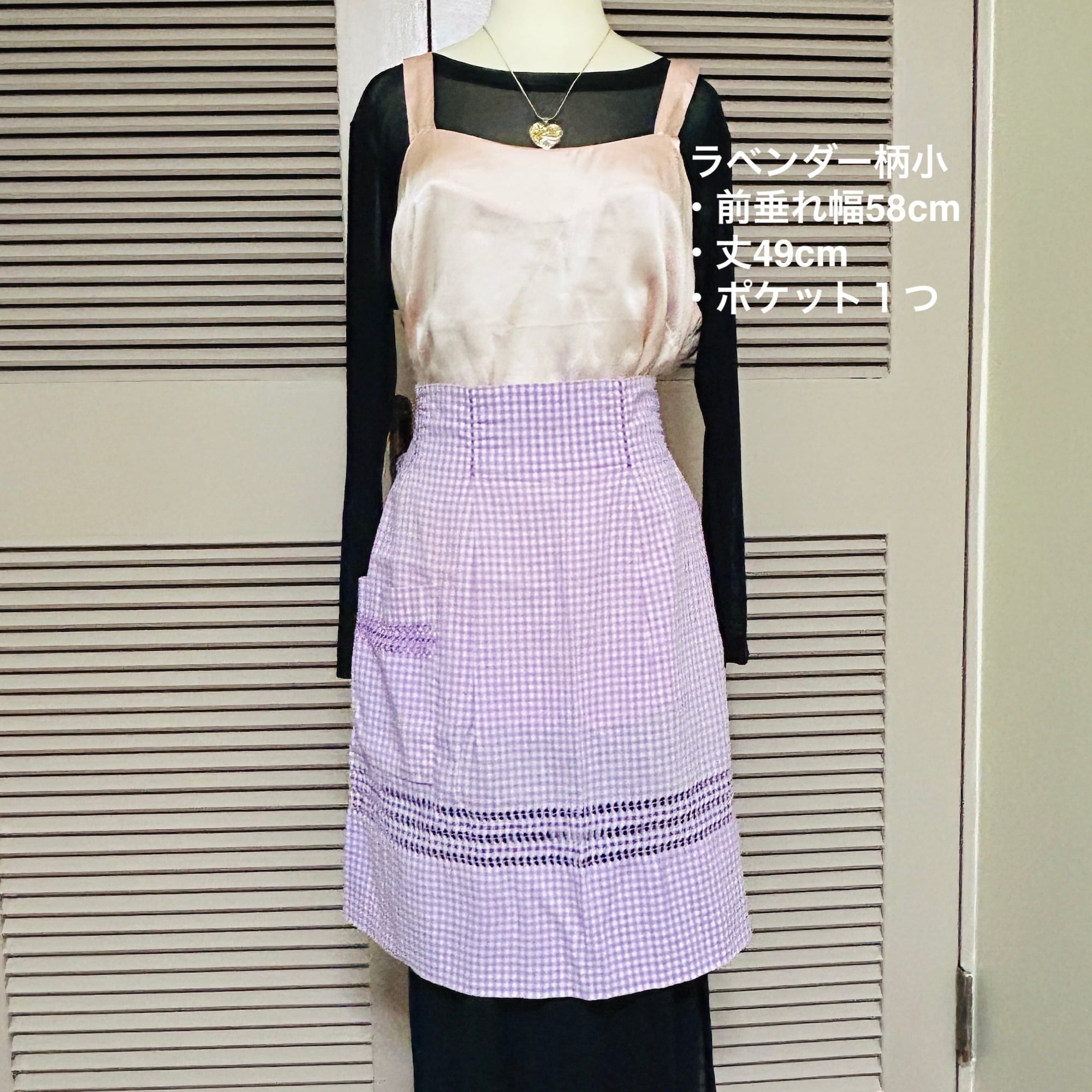 ハンドメイドのヴィンテージエプロン、色違いのギンガムチェック8着入荷しました。サイズは写真に記入しました。どれもサイズは然程変わりませんのでフリーサイズと思って頂ければ結構だと思います。写真10・グリーンはシミが数カ所ございますが、花の刺繍がキレイでカラフルで可愛いです。写真16・ラベンダー柄小は前面の透かし刺繍が少しほつれています。写真19・ウエスト部分に刺繍が施されているのはトップスをインして見せたくなります。自由な発想でお洋服に取り入れて楽しんで下さい。特筆すべきダメージはありません。細かい部分の確認を希望される場合はお問い合わせ下さいませ。