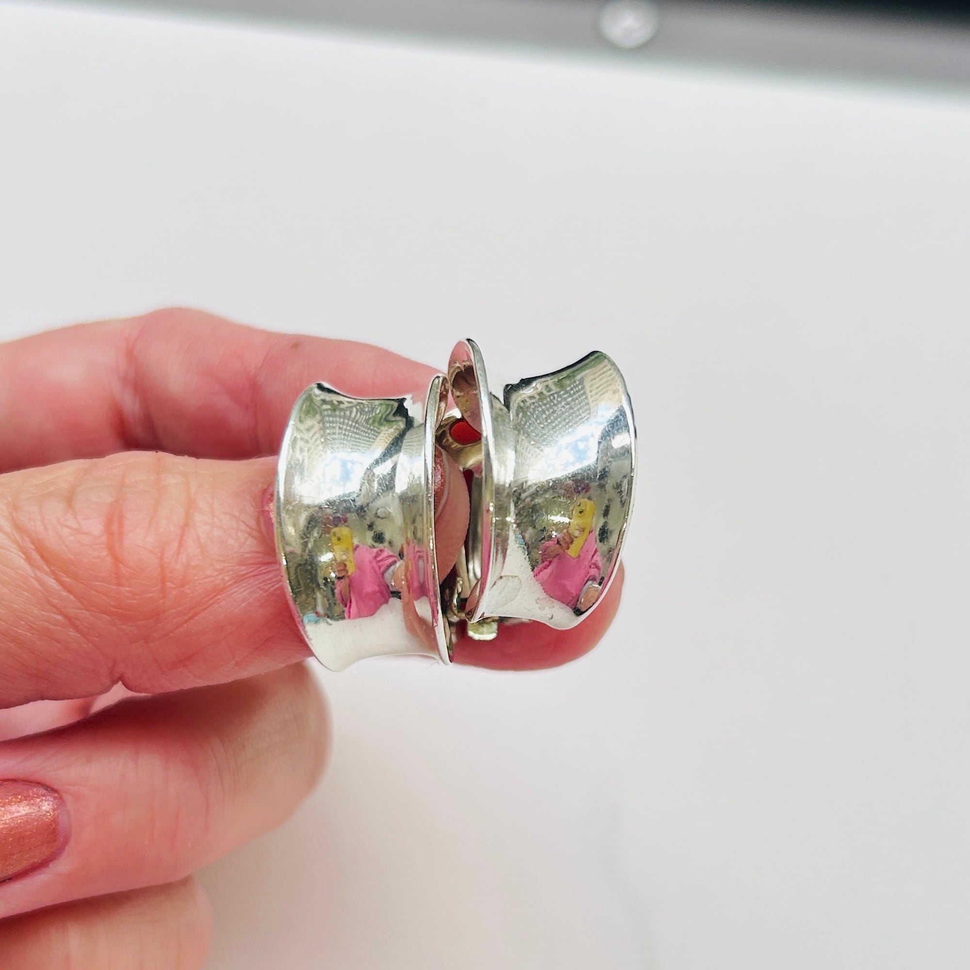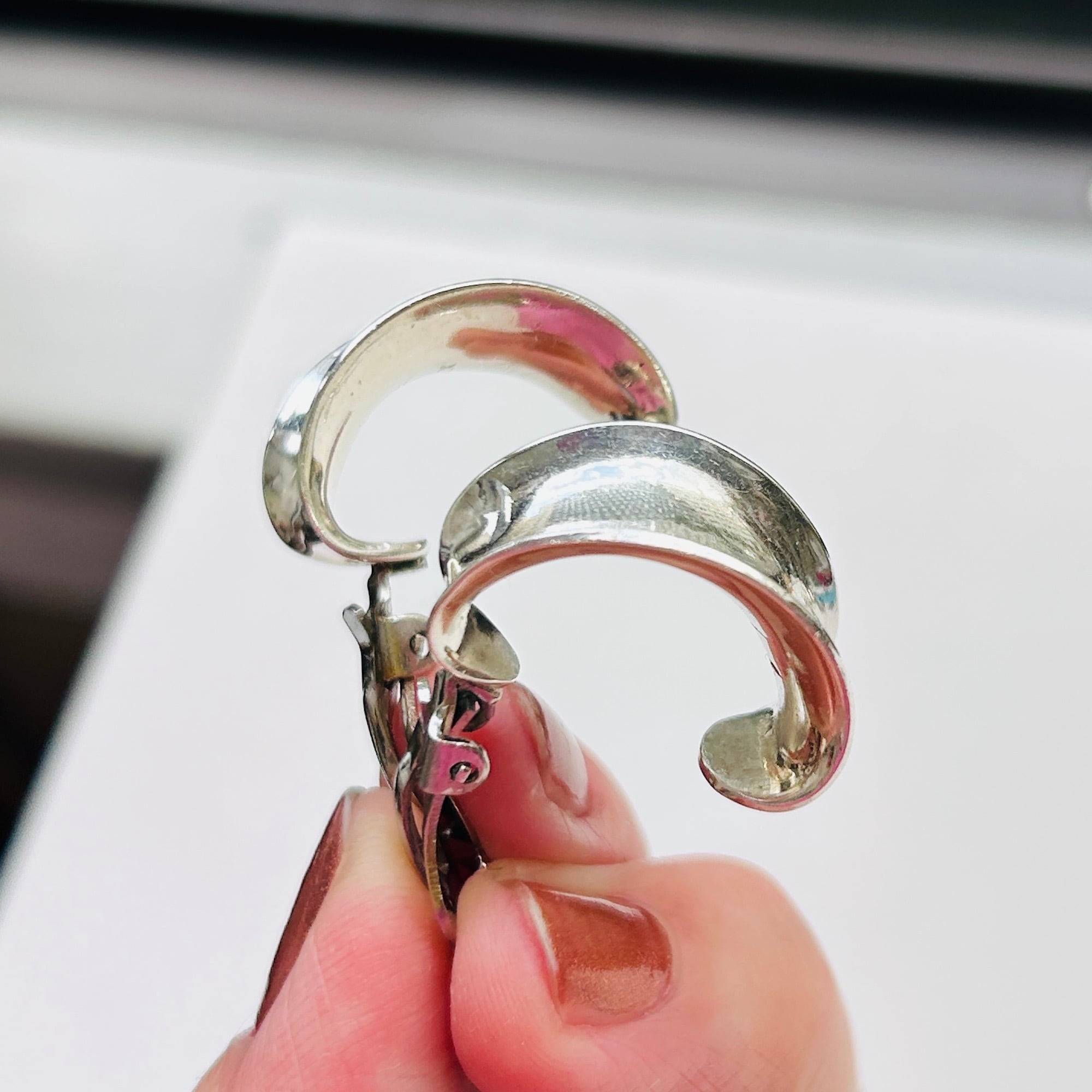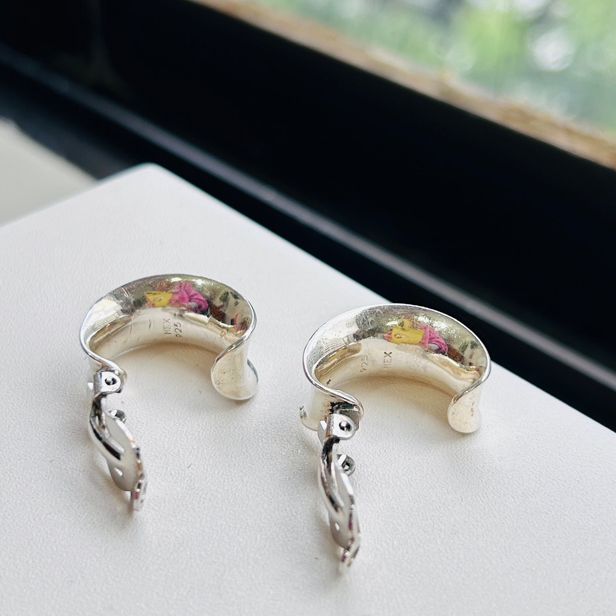 CONCAVEとは凹面です。そり返ったデザインの表現でよく使われてます。艶めくハーフフープ、稀少なクリップイヤリングです。スタイリッシュで都会的なデザイン。とても使いやすいと思います。裏に「MEX」「925」刻印。圧迫感なしで安定感のある着け心地です。