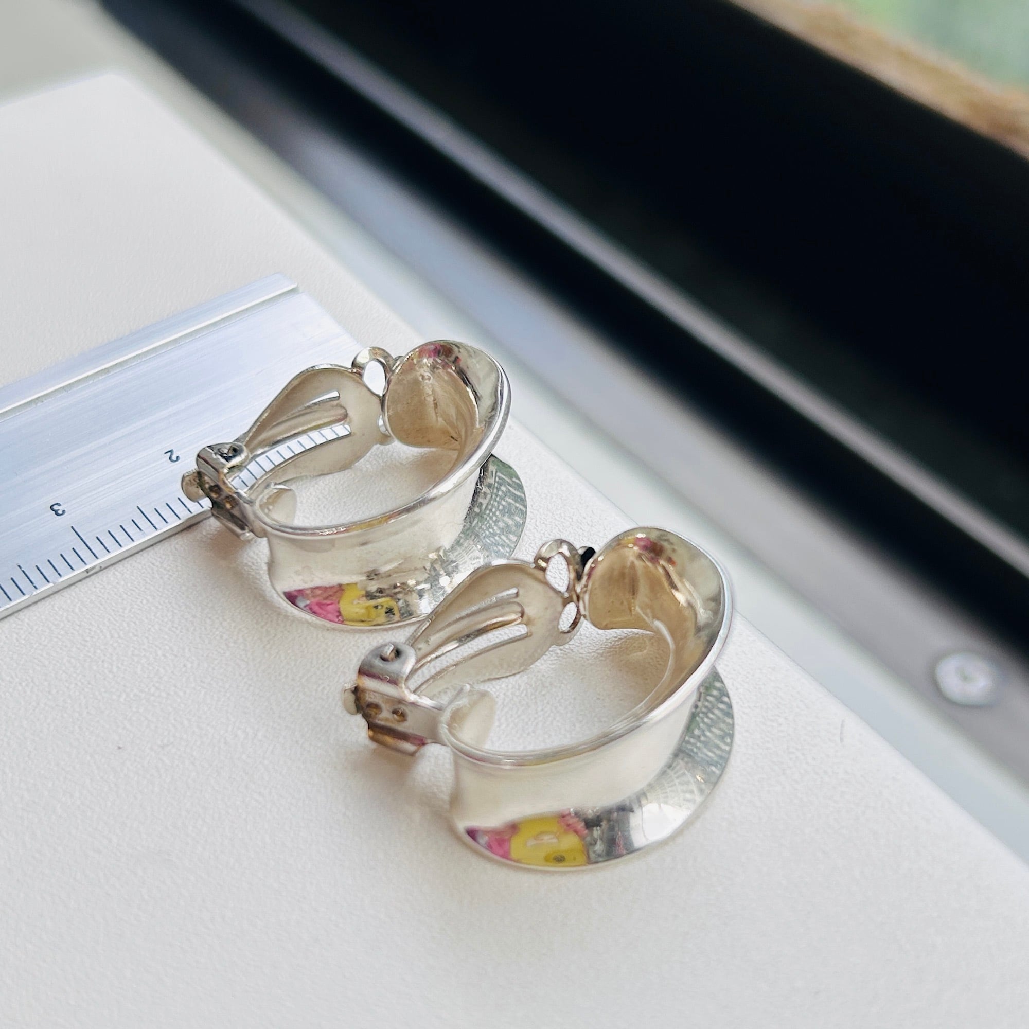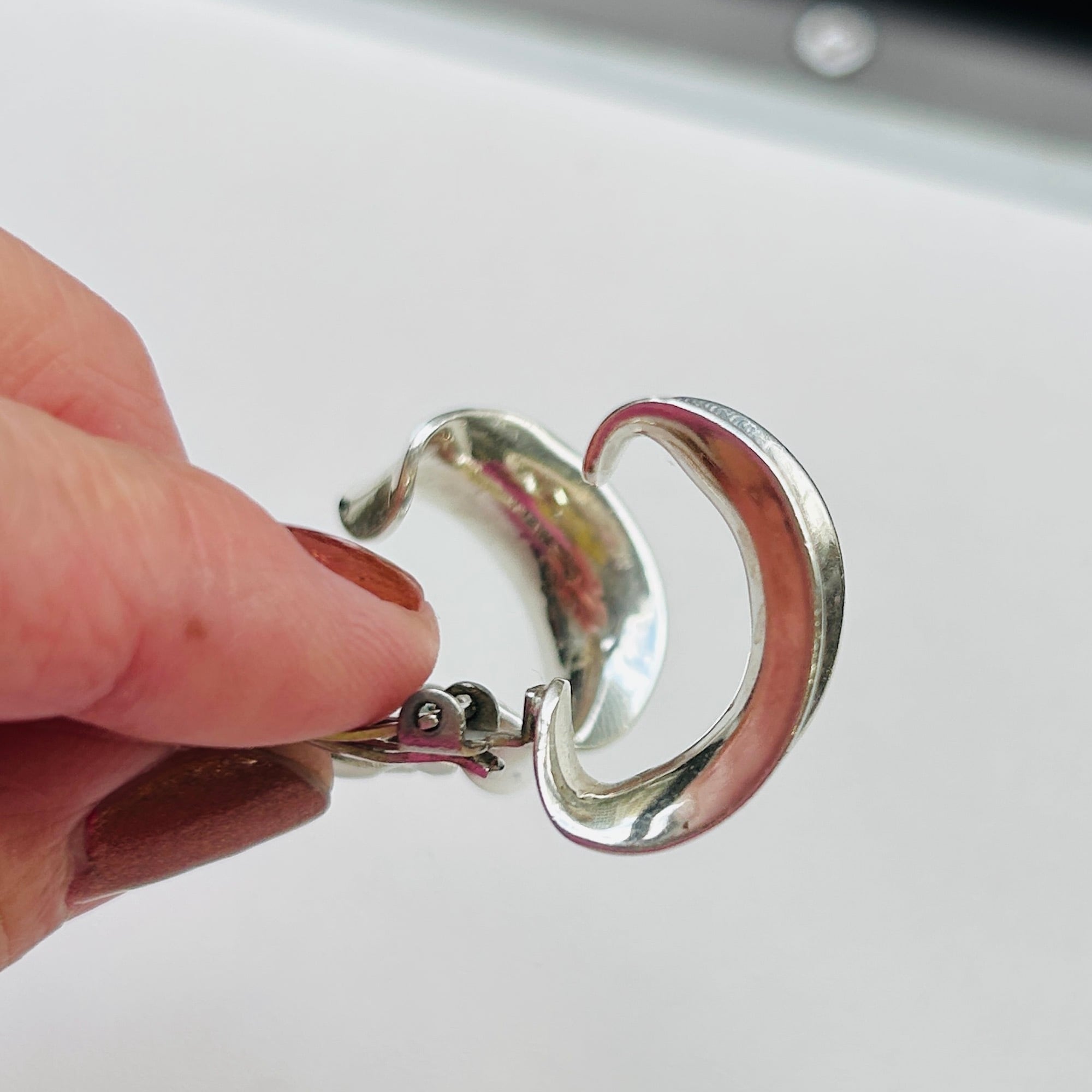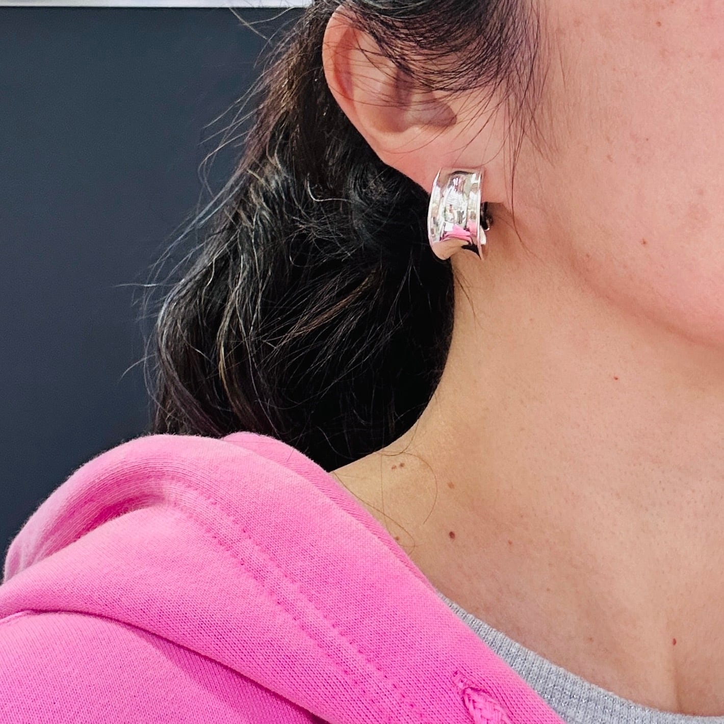CONCAVEとは凹面です。そり返ったデザインの表現でよく使われてます。艶めくハーフフープ、稀少なクリップイヤリングです。スタイリッシュで都会的なデザイン。とても使いやすいと思います。裏に「MEX」「925」刻印。圧迫感なしで安定感のある着け心地です。