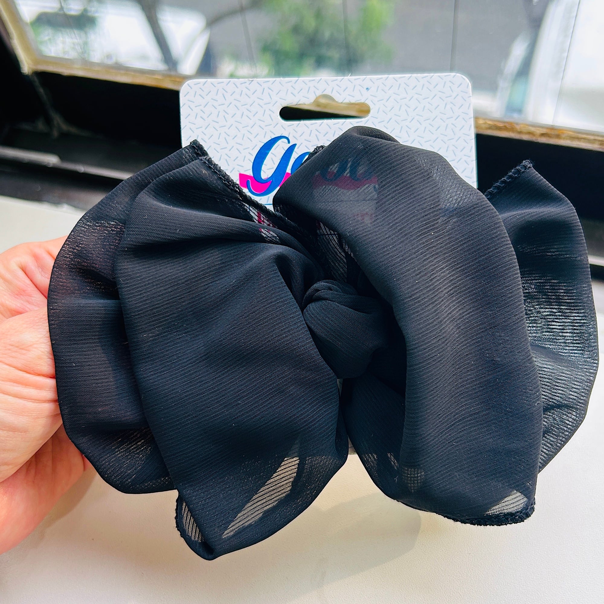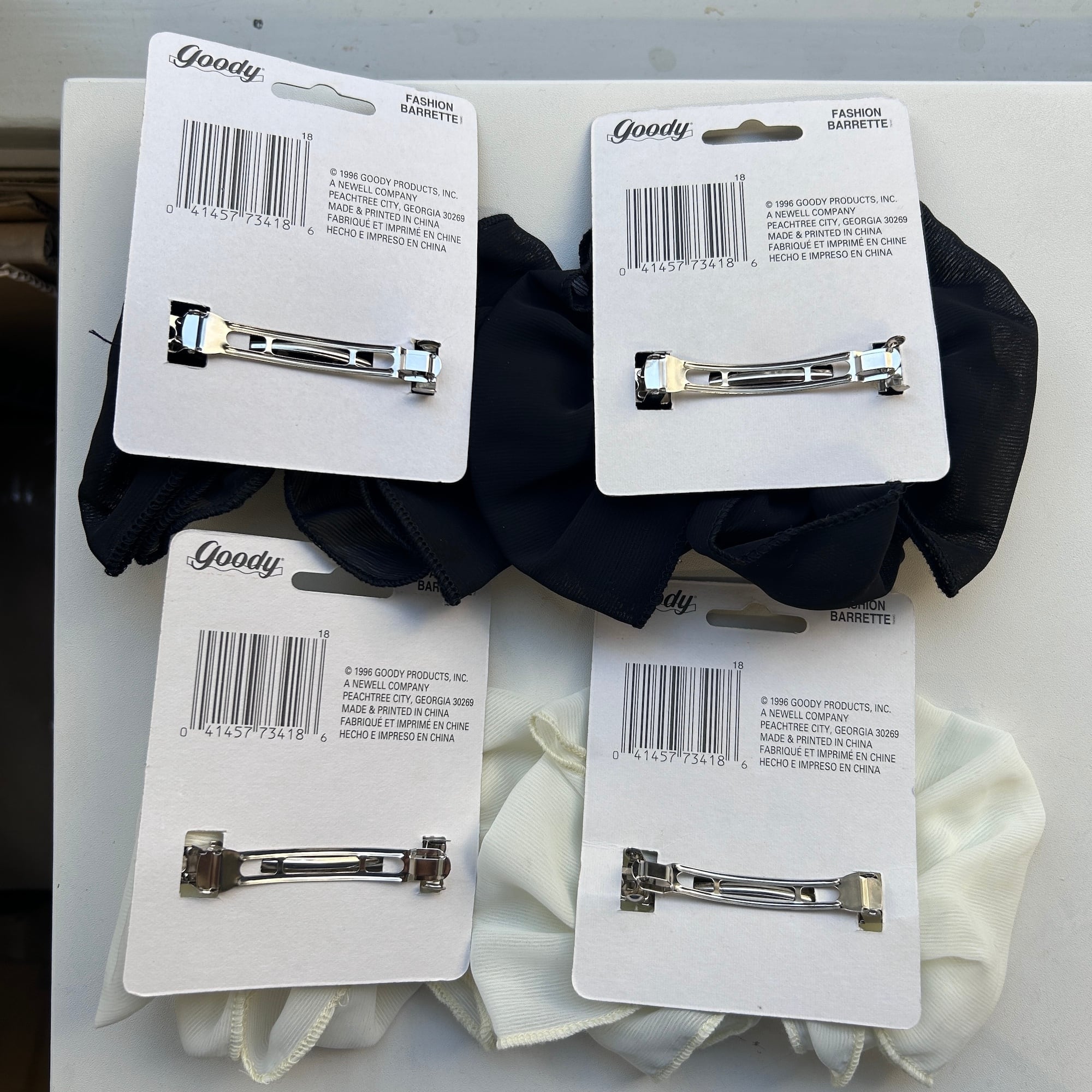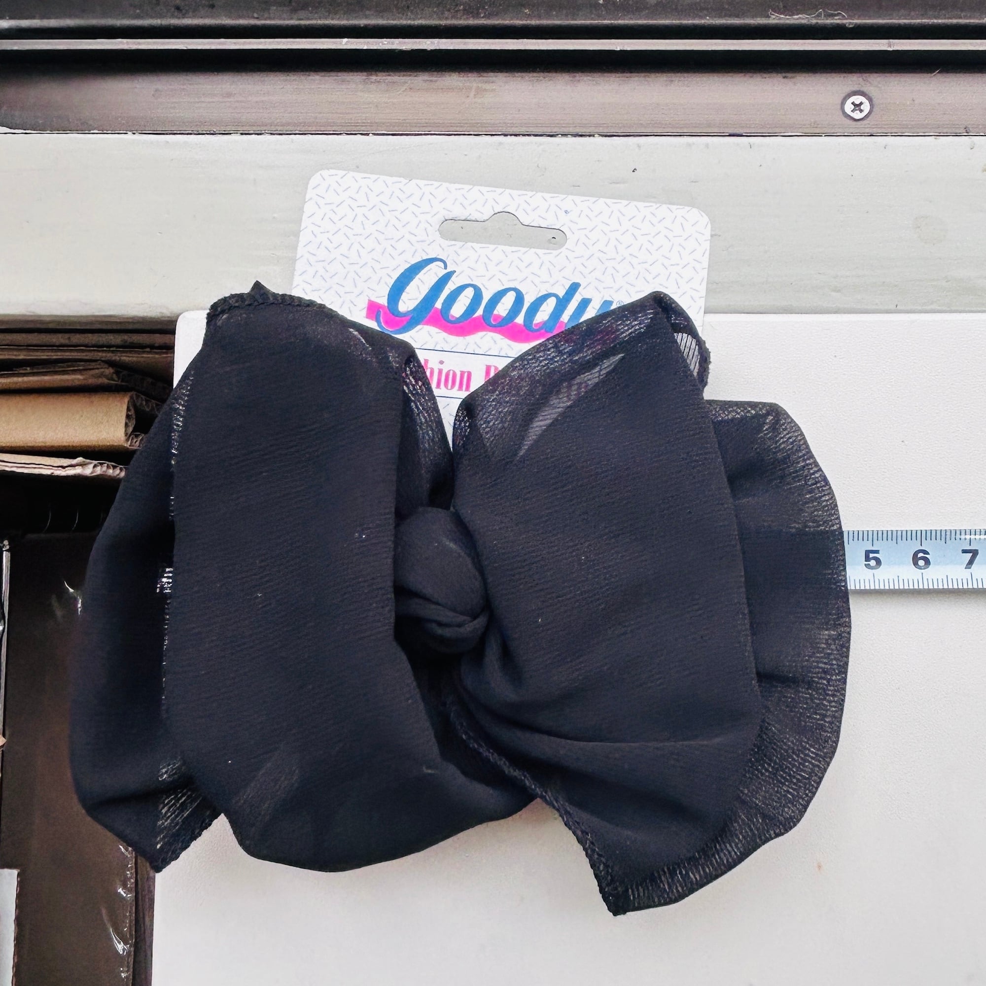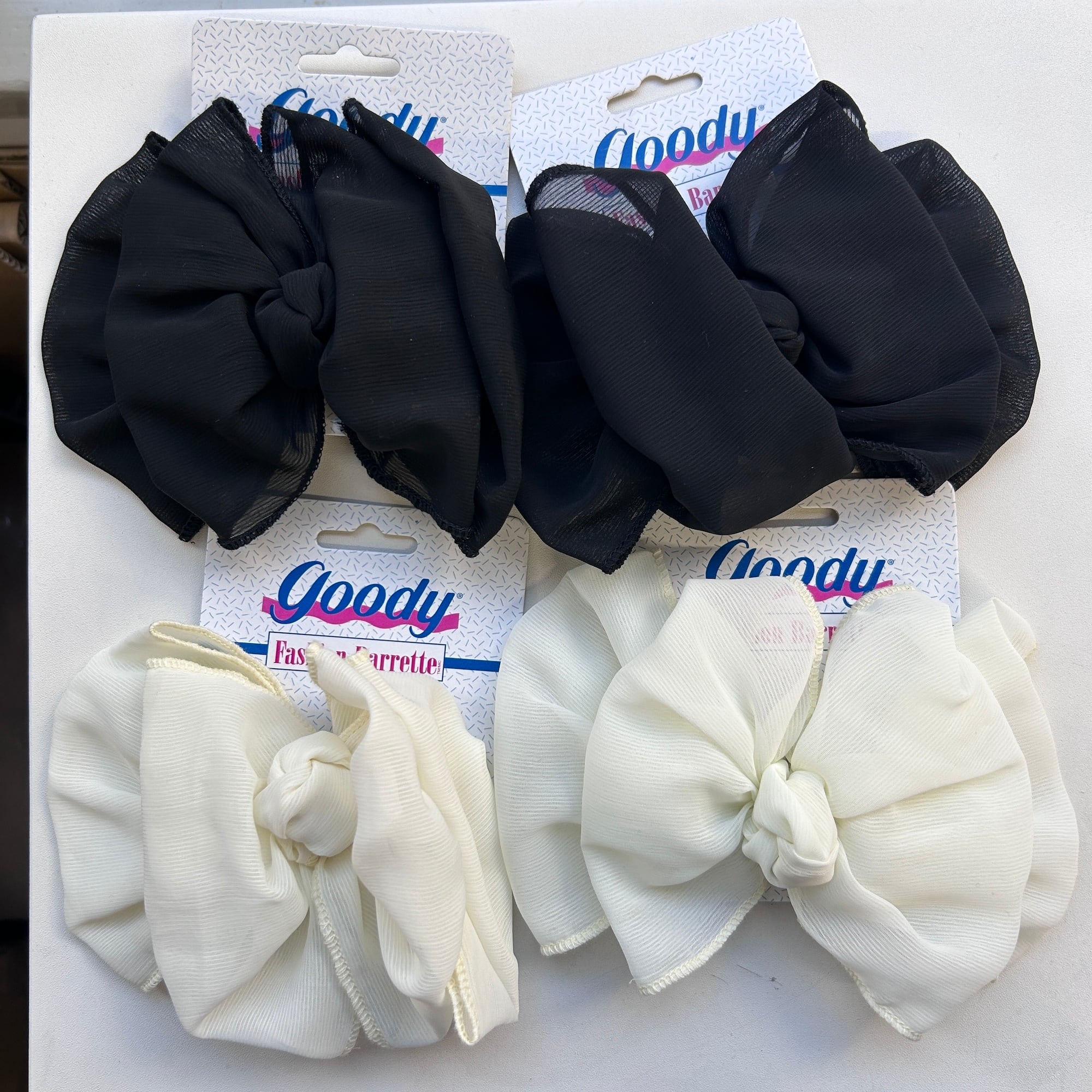 アメリカンなヘアアクセサリー「Goody」のシフォンバレッタ。シックなブラックです。台紙についたままのDEADSTOCK。金具もピカっとしています。特筆すべきダメージはありません。在庫2点、白もあります。メール便発送不可。