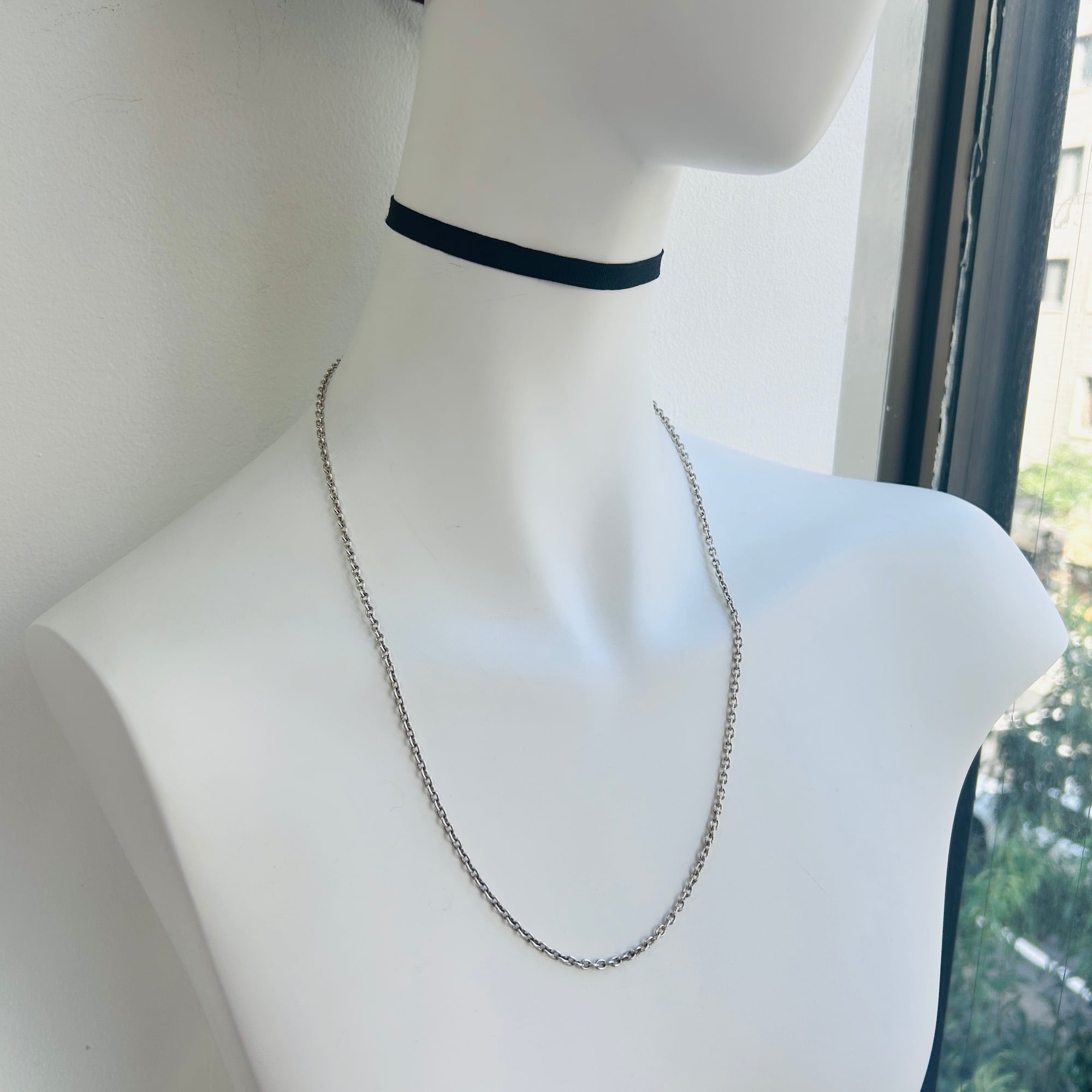 大きくてシャープなパフィハート、縦4.4cm。長いチェーンと大きなトップで存在感のあるペンダントネックレスです。チェーンは目の詰まったアズキチェーンです。単体で着けるとシンプルでオシャレ。永く使って頂けると思います。ハートの表面に薄いスレがある程度、特筆すべきダメージはありません。ハートのベイルに「925」、チェーンに「INDIA」「925」。