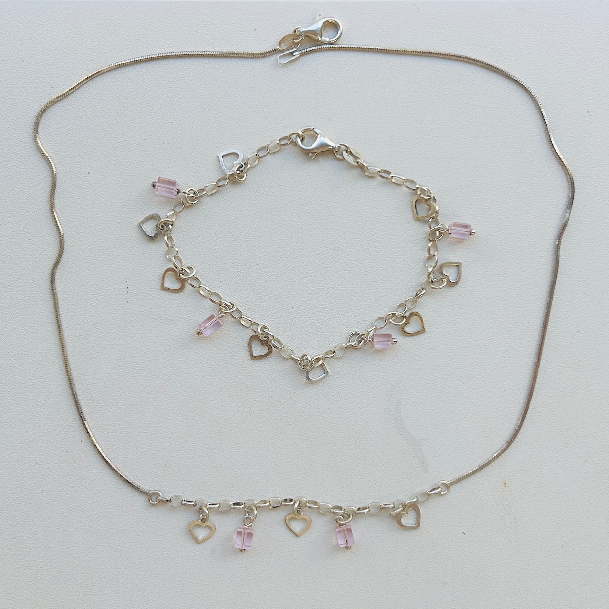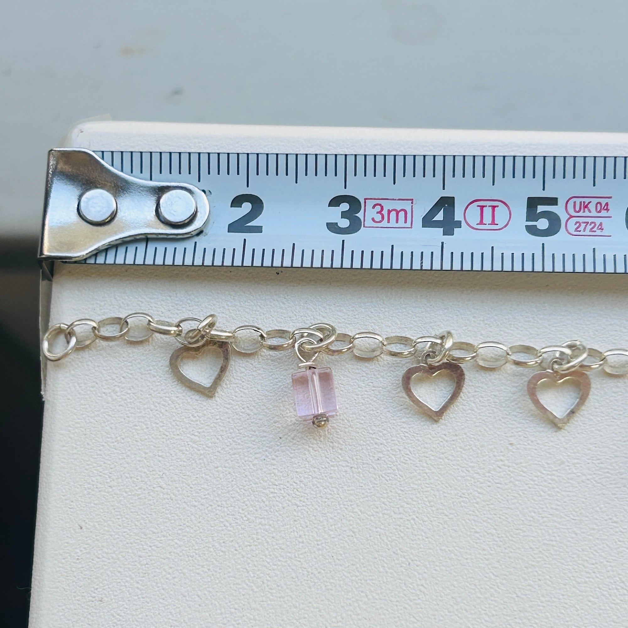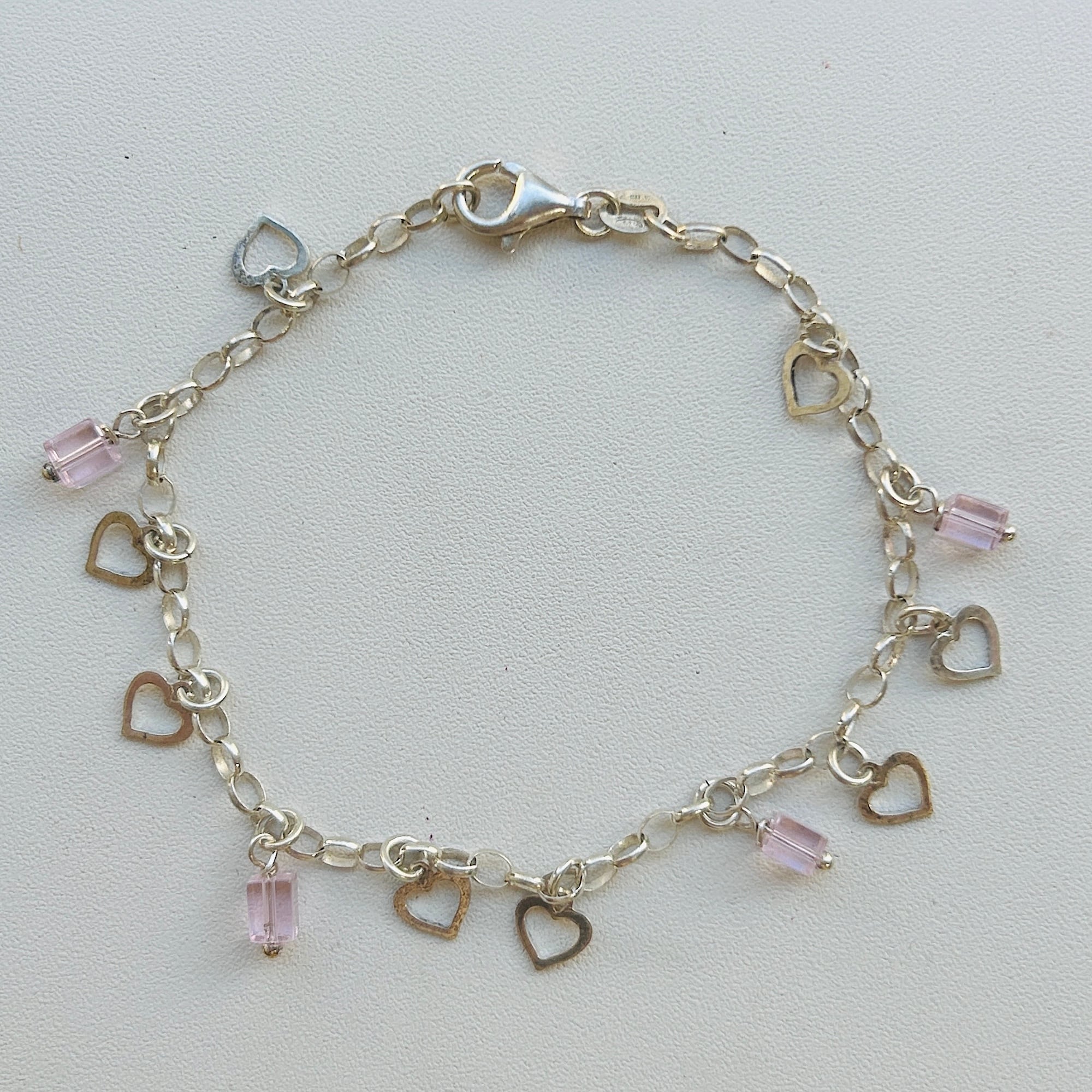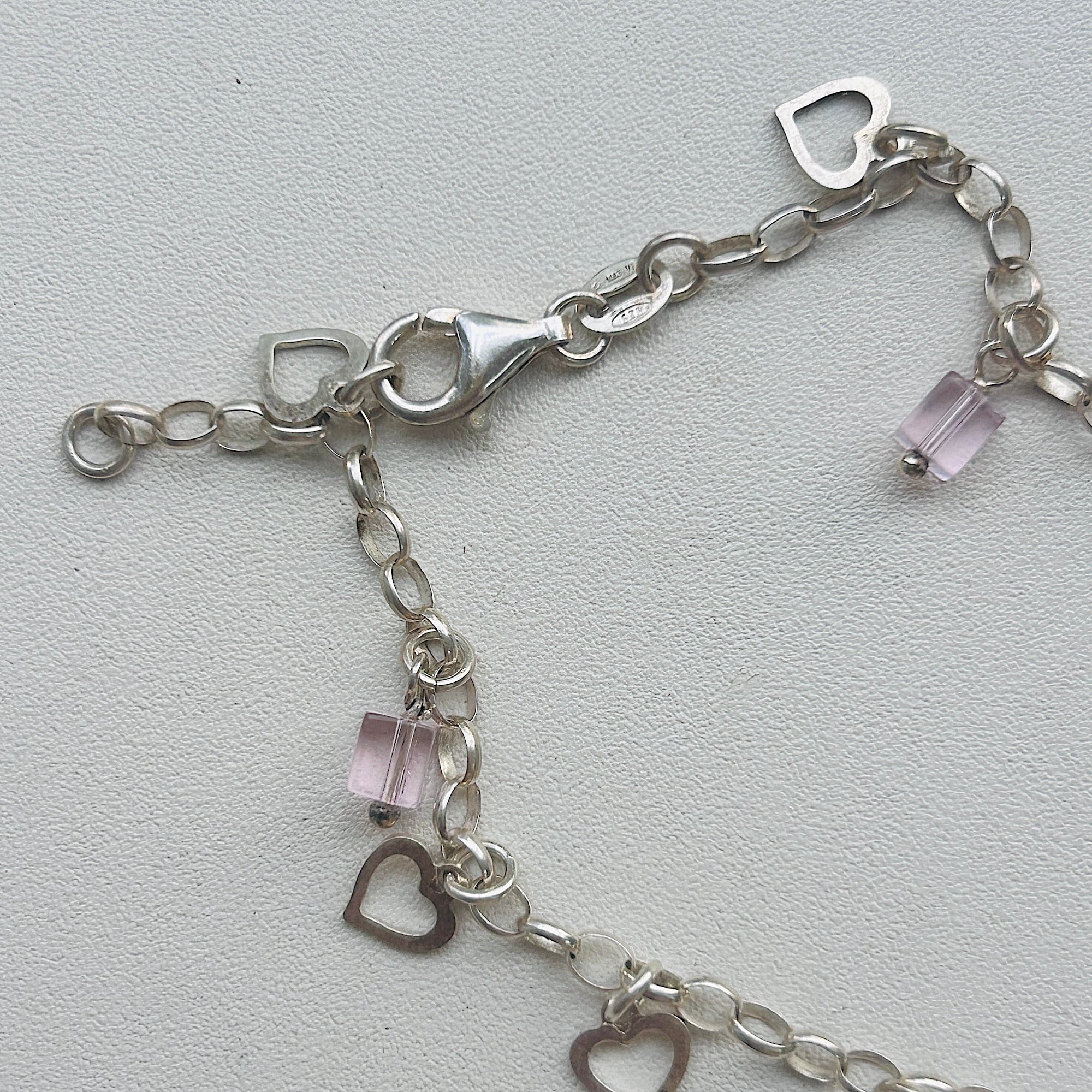 Italy シルバー925 ピンクトルマリン&ハートチャームブレスレット(18cm)