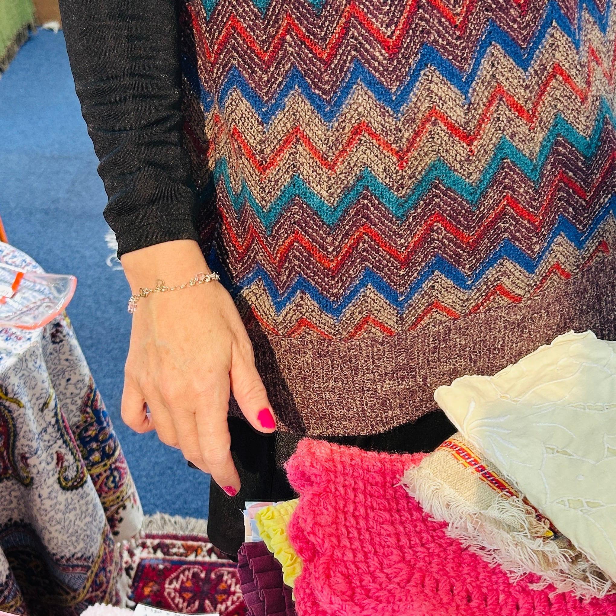 ネックレスとお揃いのチャームブレスレット。キューブストーンはピンクトルマリンです。チャームブレスレットってすごく外国風な感じがします。チャームの丸カンやチェーンに引っ掛けて長さ調整できます。ガーリィな手元に:)楕円タグに1970年頃から使用のちょい古イタリアンシルバーマークと引き輪に「925」。