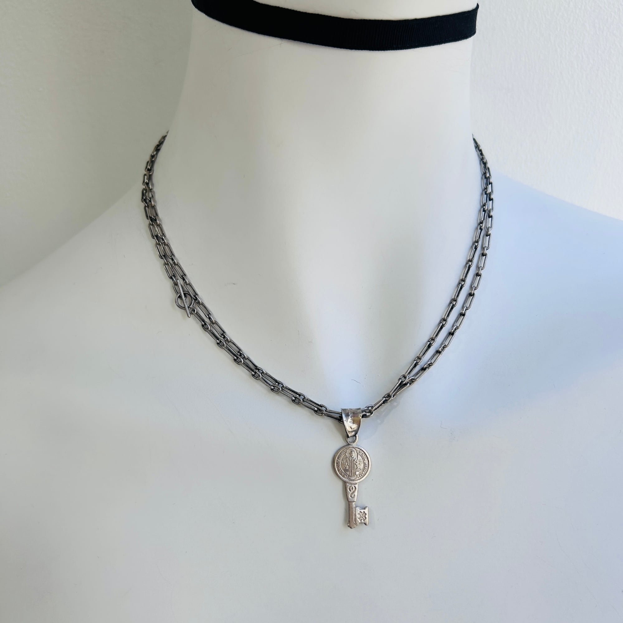 シルバー925 ミニトグル・リンクチェーンロングネックレス(86cm)