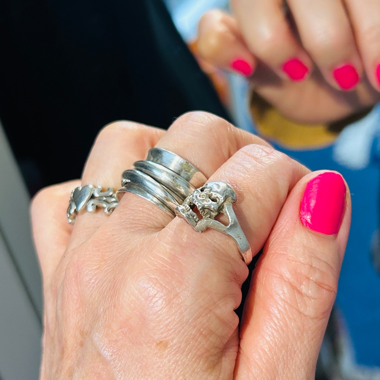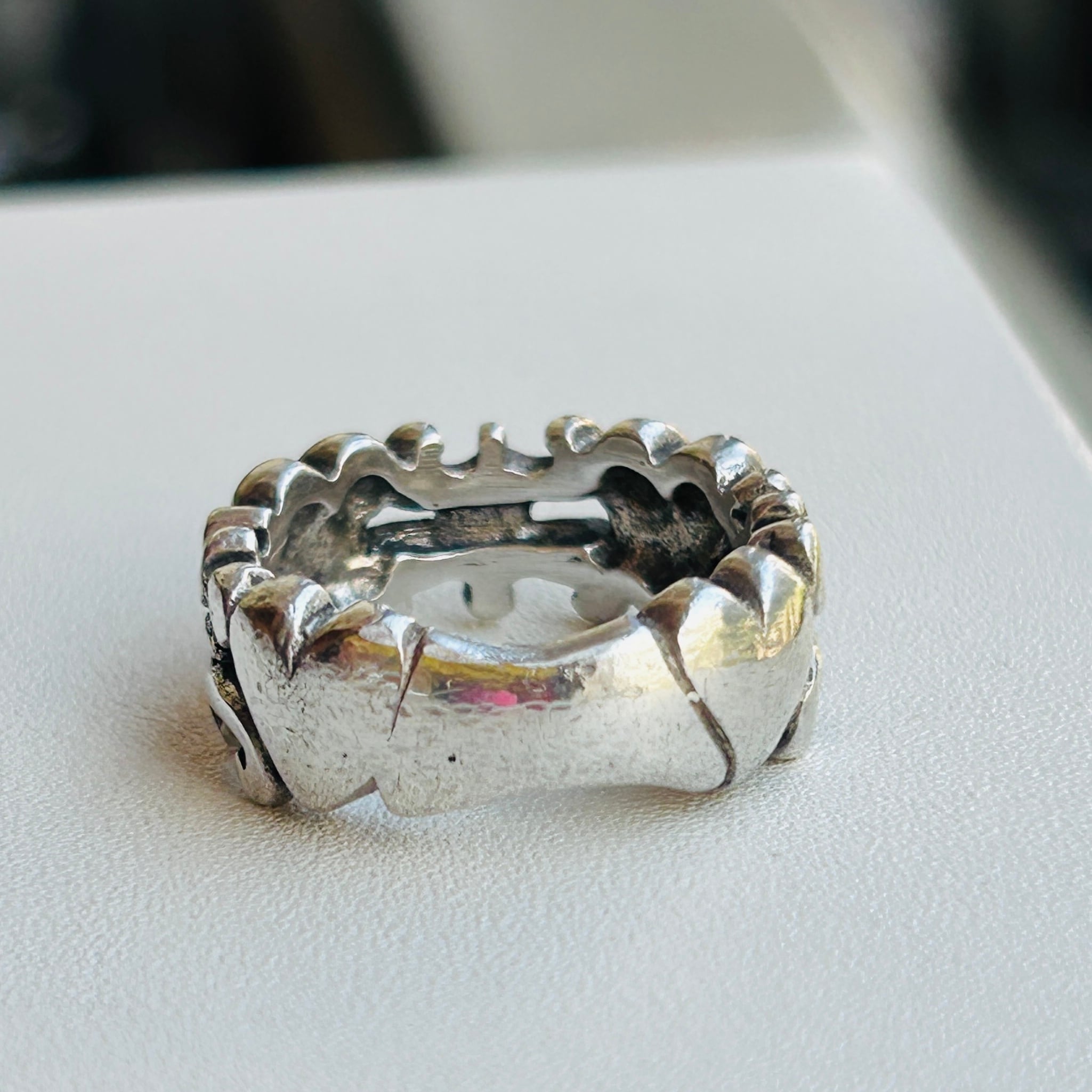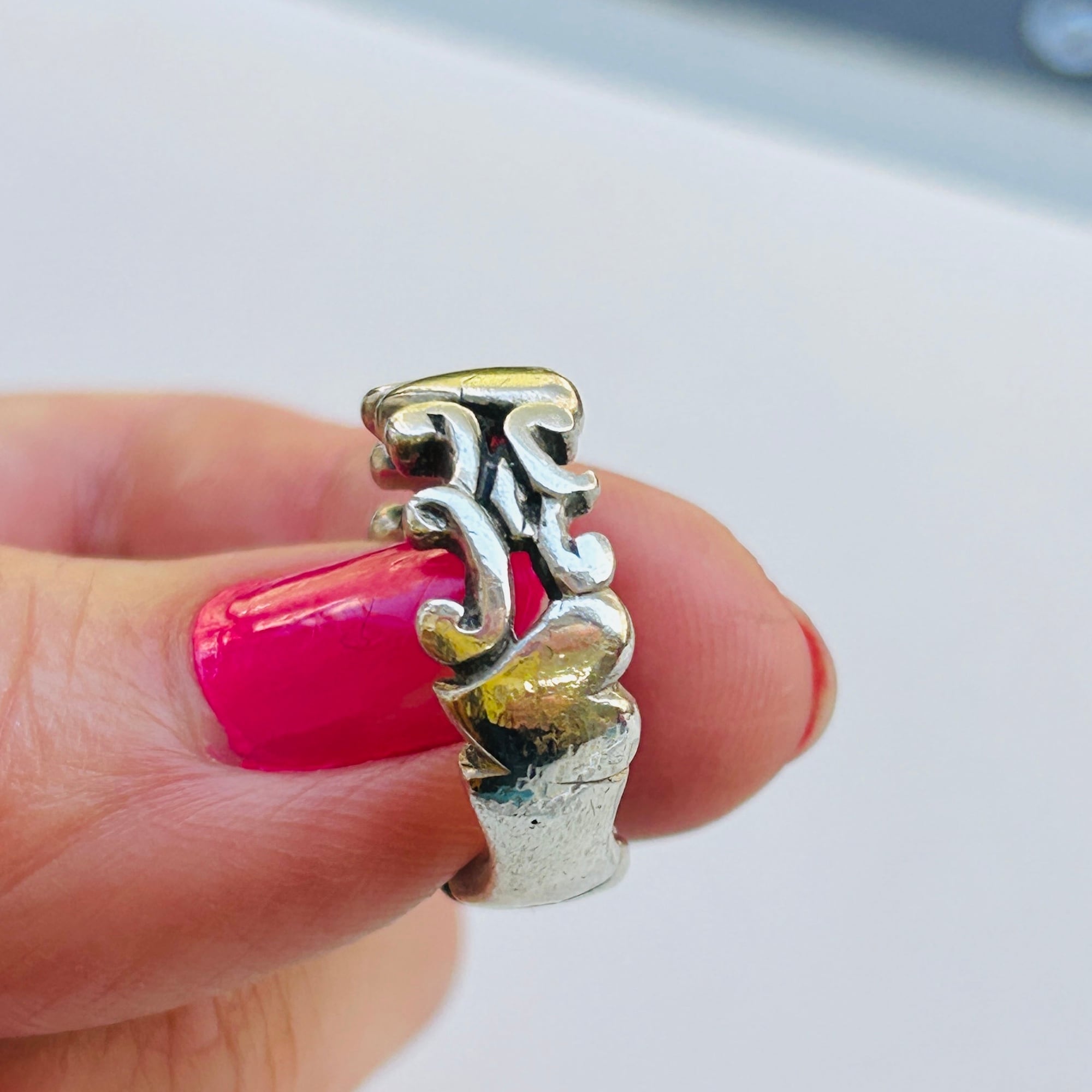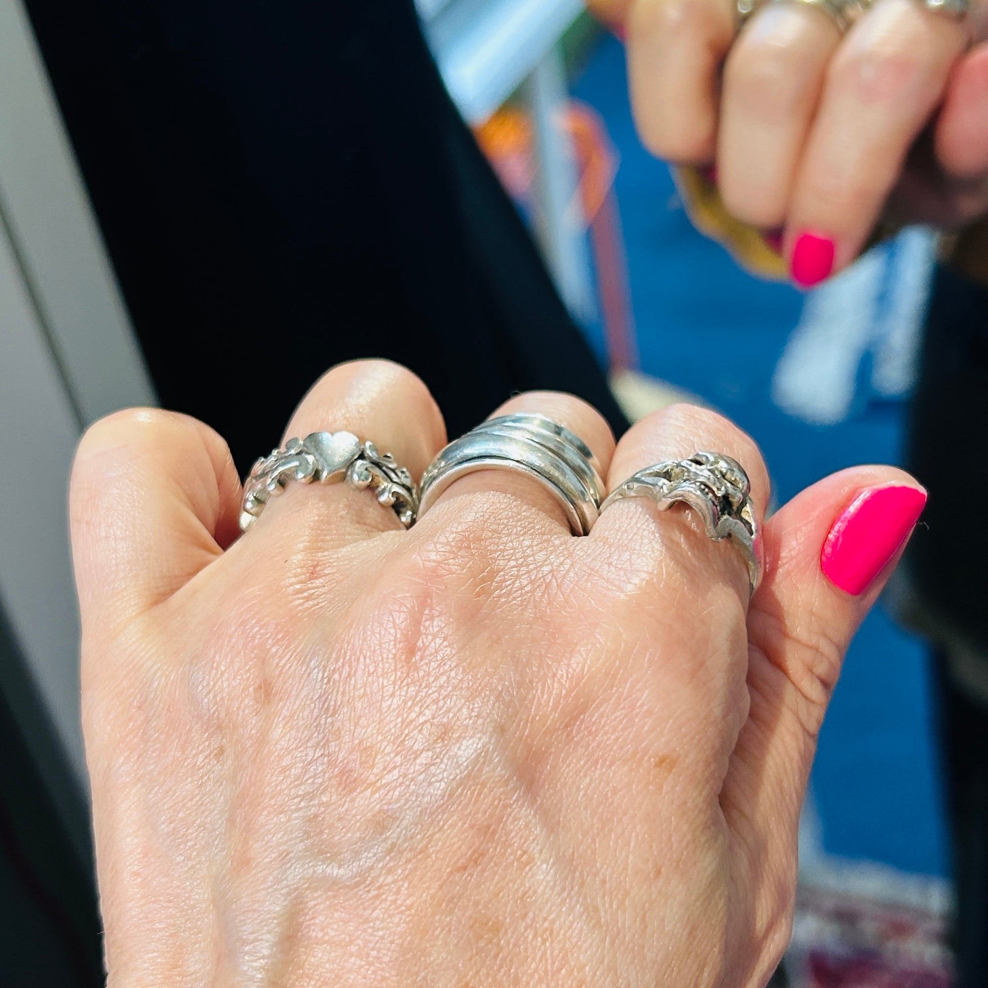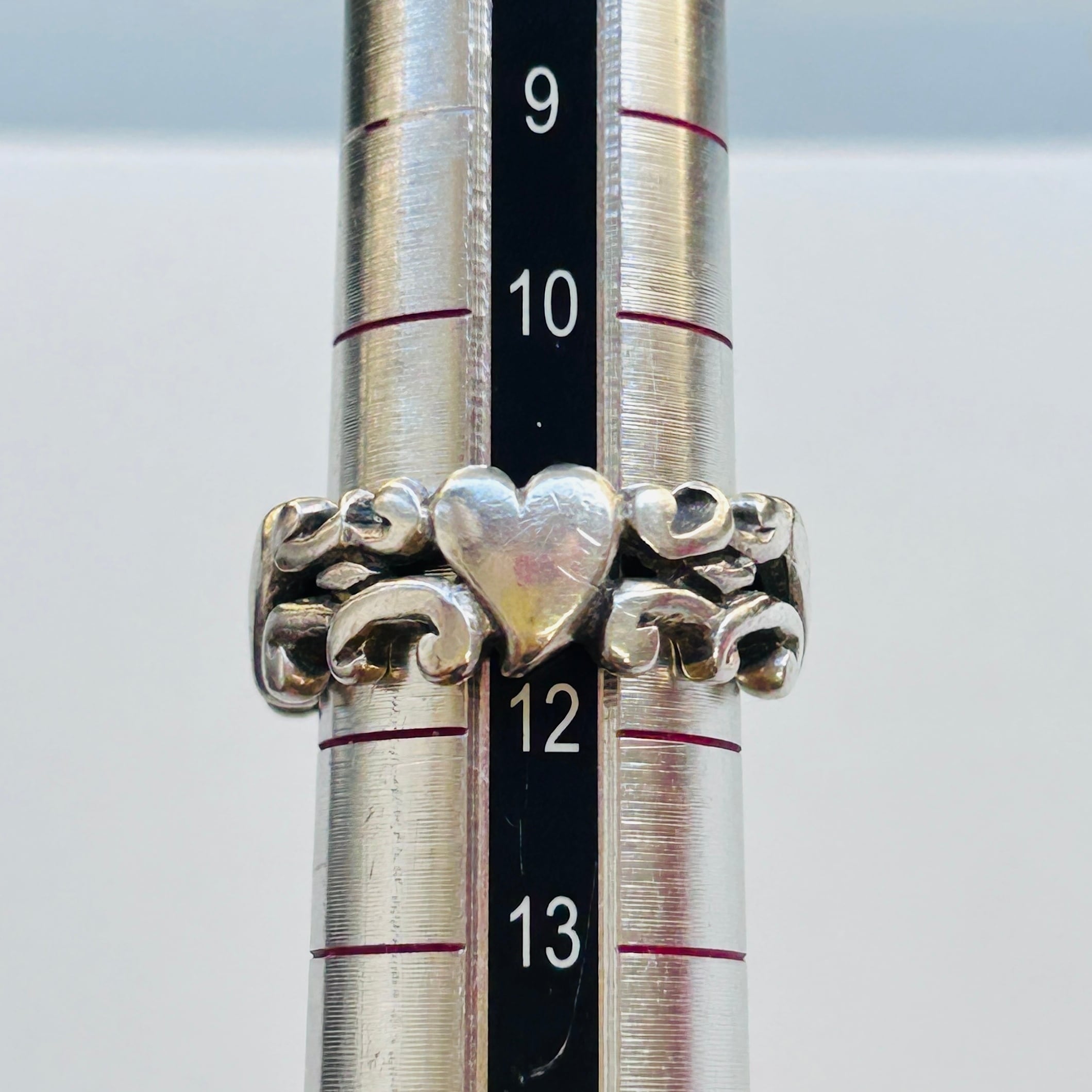 ぽってりした厚みのあるバンドリング。ハートと蔦のようなゴシック調デザイン。ロックな雰囲気のキュートなリングです。刻印なシルバーです。