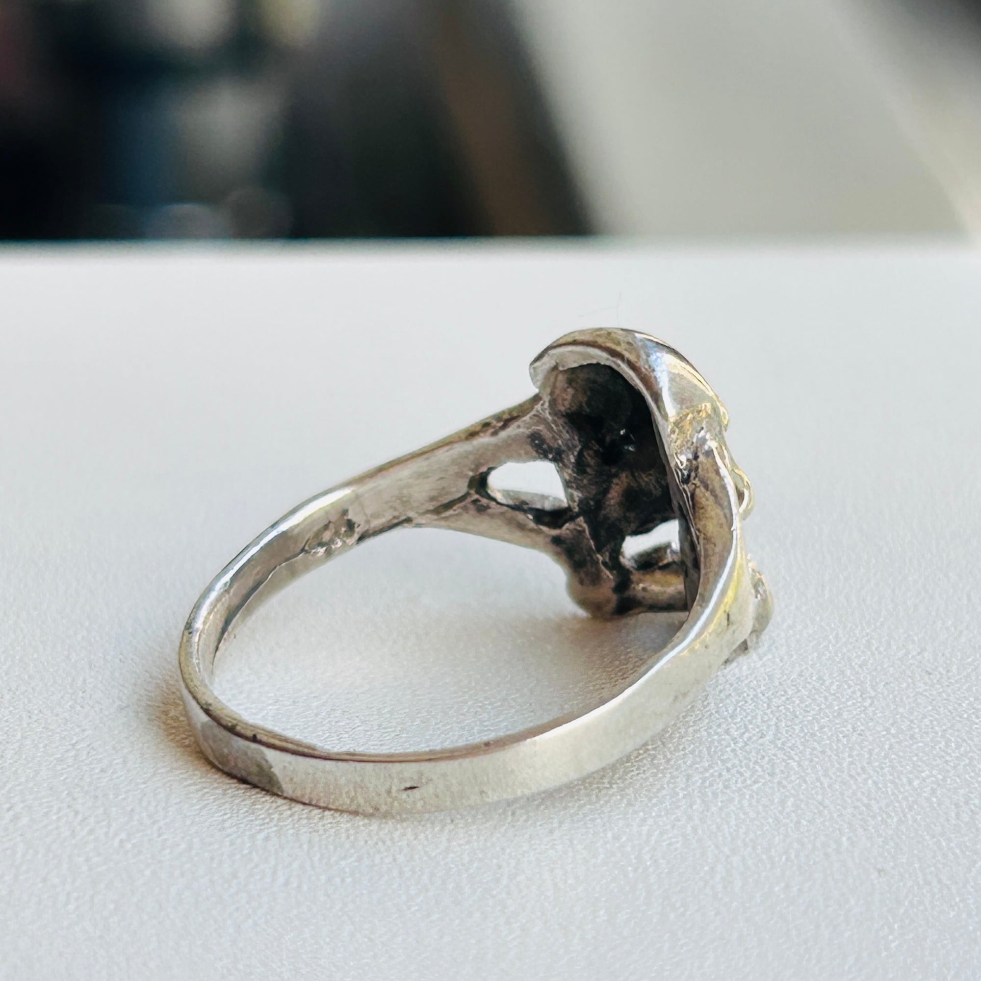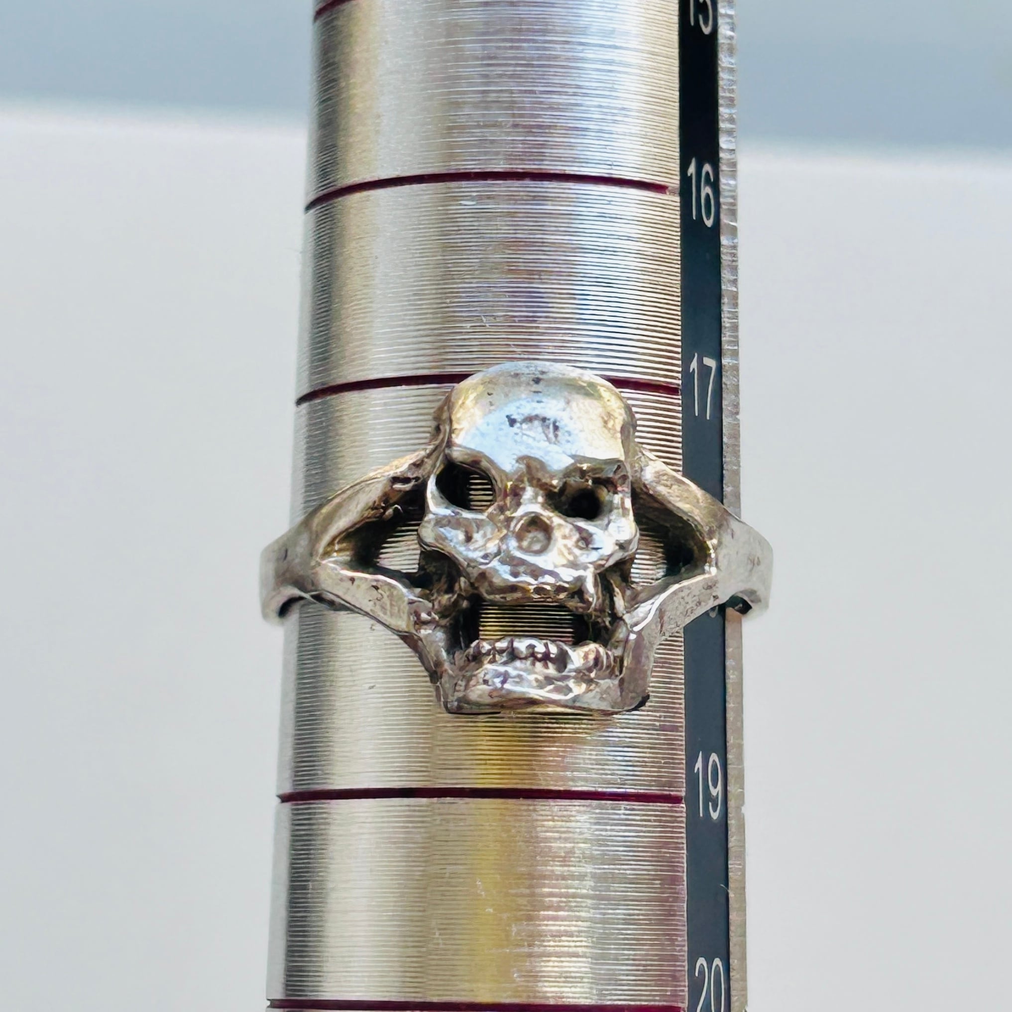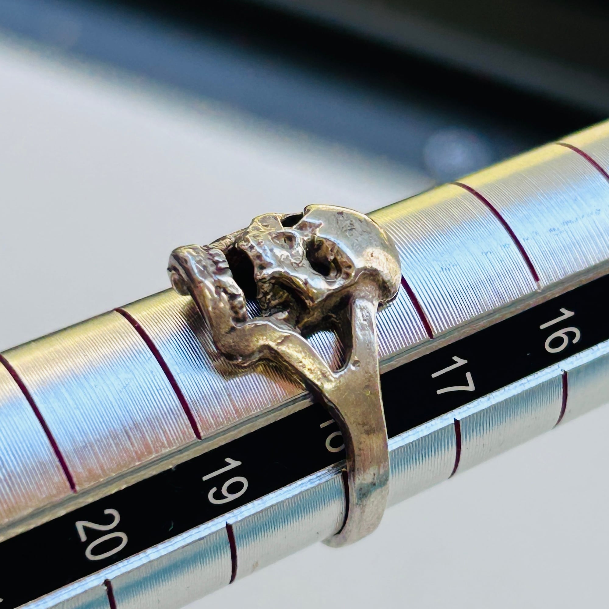 スカルリング。今までスルーしてきたモチーフですが私の買い付けアンテナも変わりました:)遊びゴコロある手元になります。内側に「925」。細いバンドでスカルの裏側に凹みスペースがありので19号の指にも入るような気がしてます。