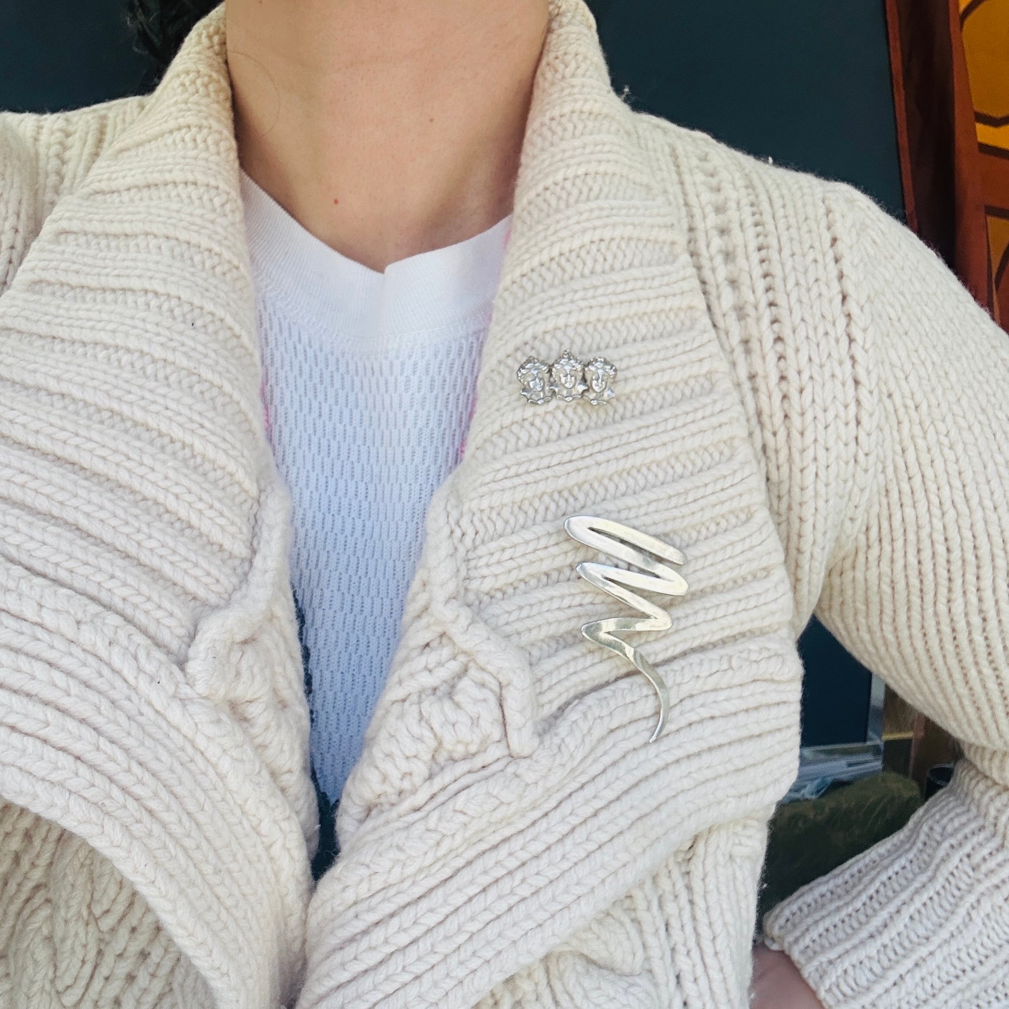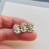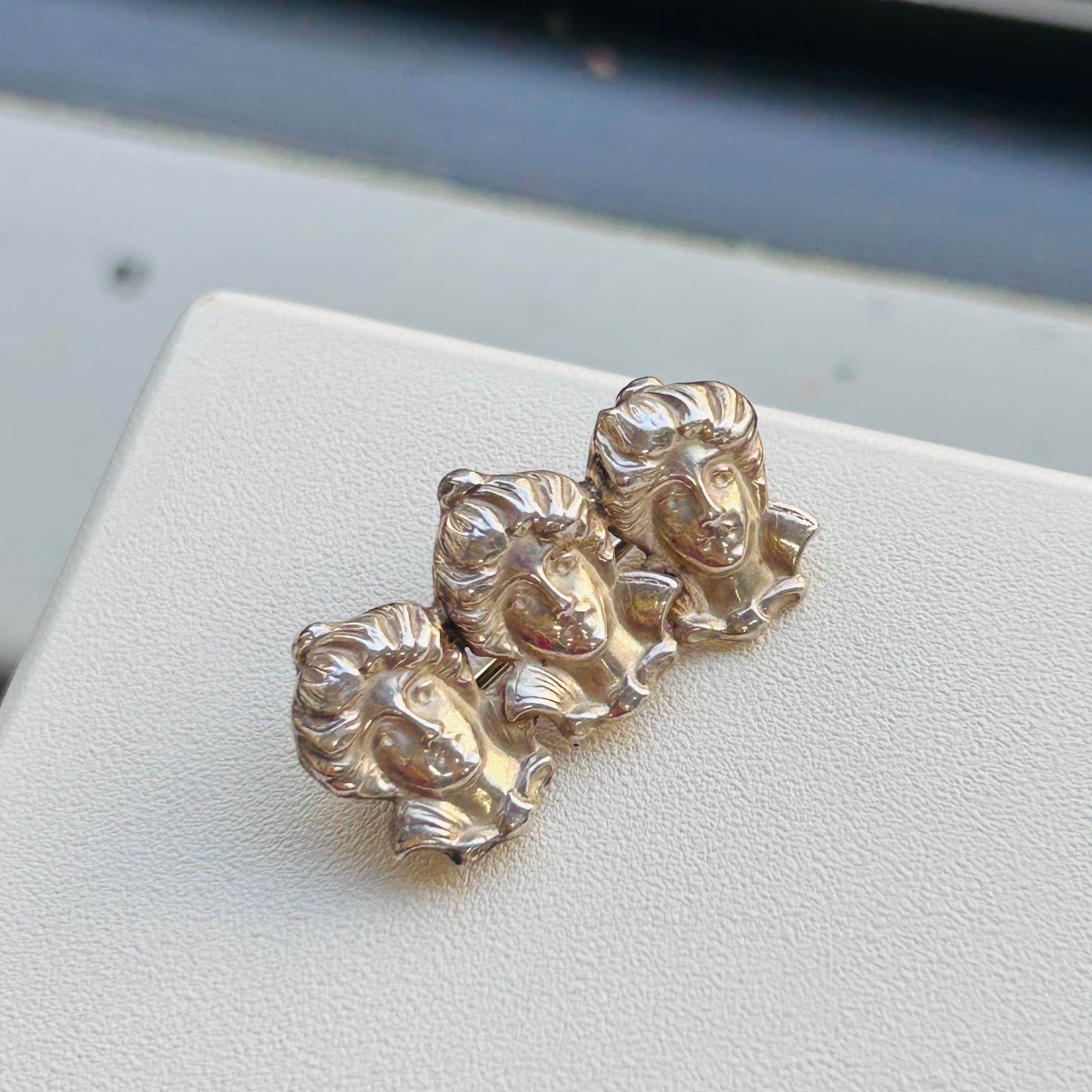 女性像が3つ並んだミニブローチ。アールヌーボーを意識したユニークなデザインです。プレスして作られた薄い作り。小さいですが凹凸があるので目立ちます。裏の刻印は「STERLING TOP」。初めて見ました。これは顔の部分だけスターリングシルバーでピンはシルバーではないということだと思います。
