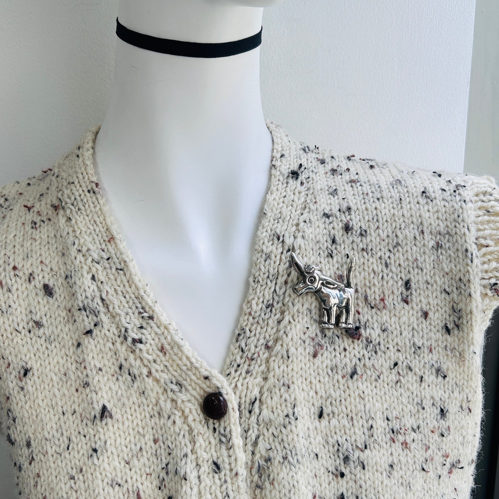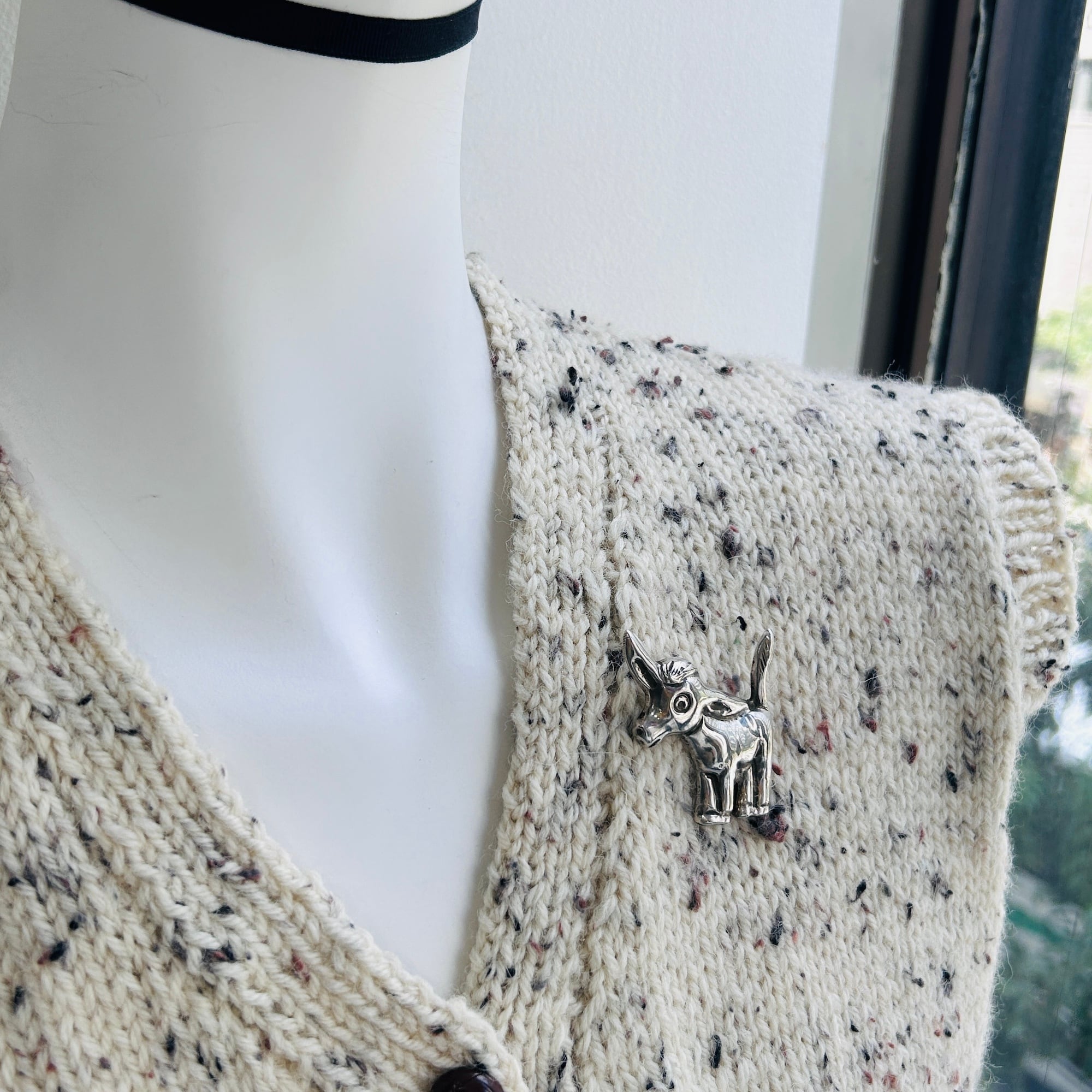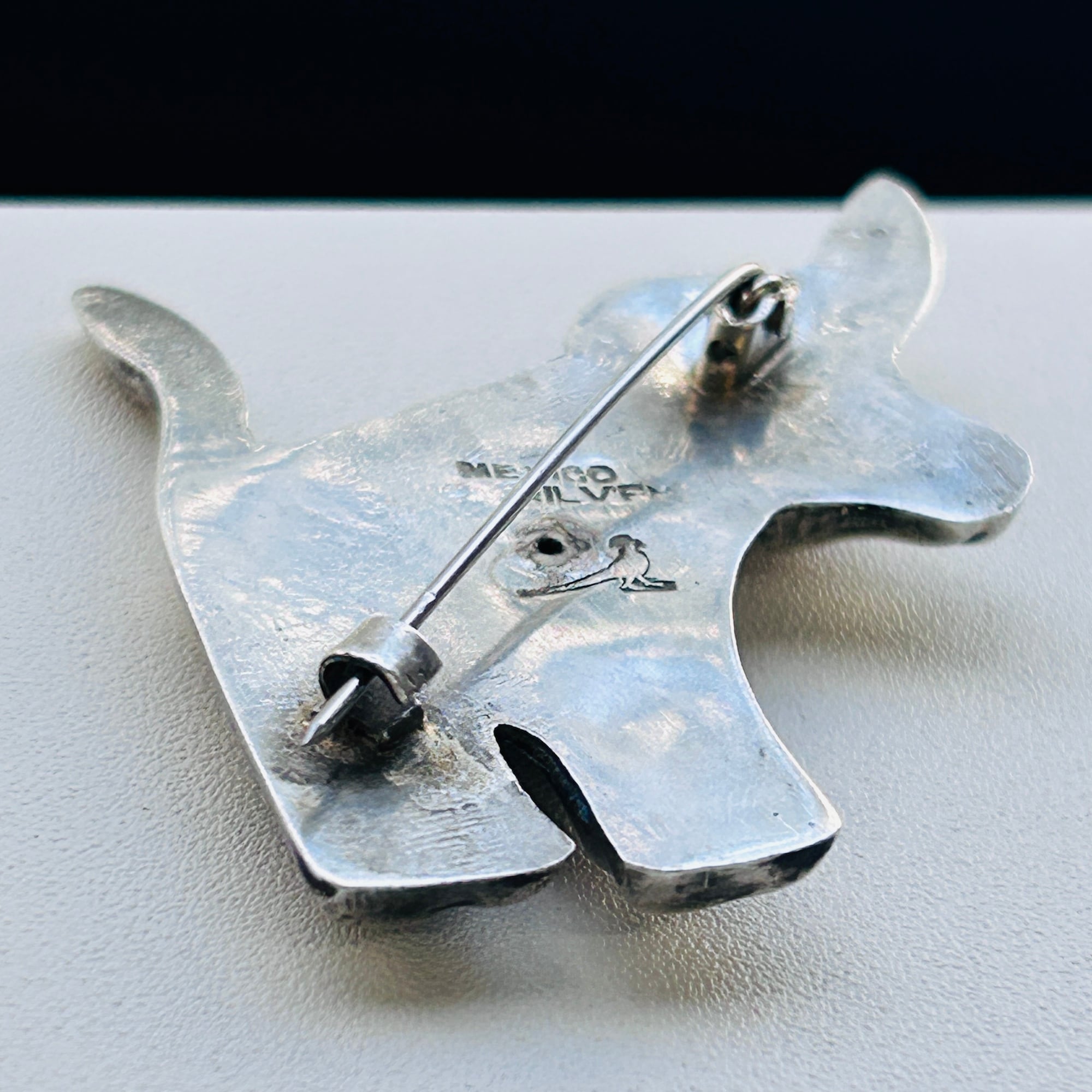 愛嬌あるお顔が可愛いドンキーブローチ。ぷっくり膨らんだカタチ、ツヤがあるシルバーでユニークなアクセントになります。ピンはひっかけるだけのC型。この留め具の方が故障の心配が少なくてオススメです。「MEXICO SILVER」刻印と見たことのない鳥マーク。鳥マークの詳細は分かりません。イーグルマークより前の1920年〜40年代、古いメキシカンシルバーです。ピンは45度くらいまでしか開きません。