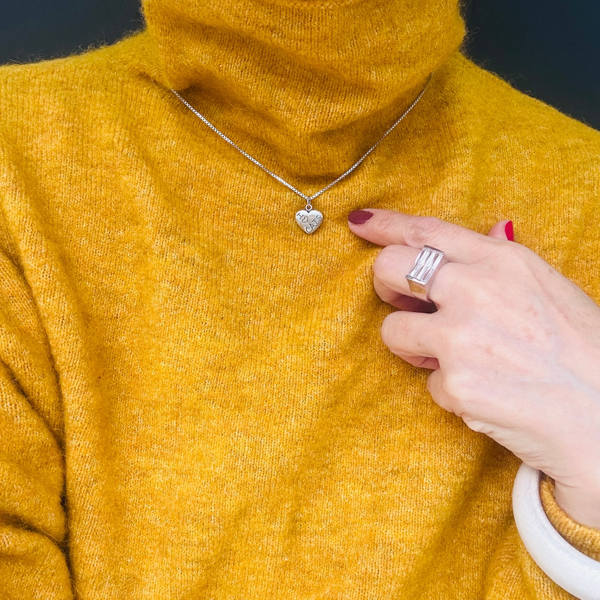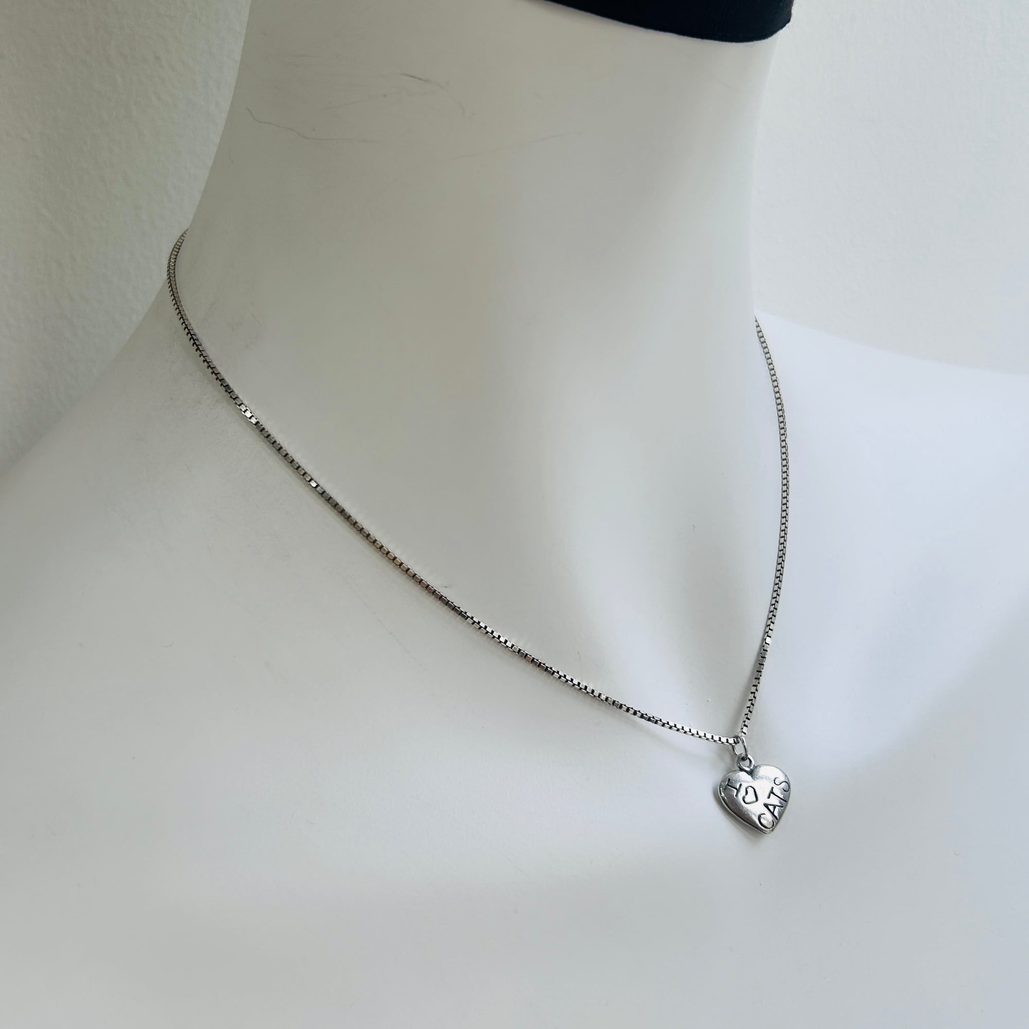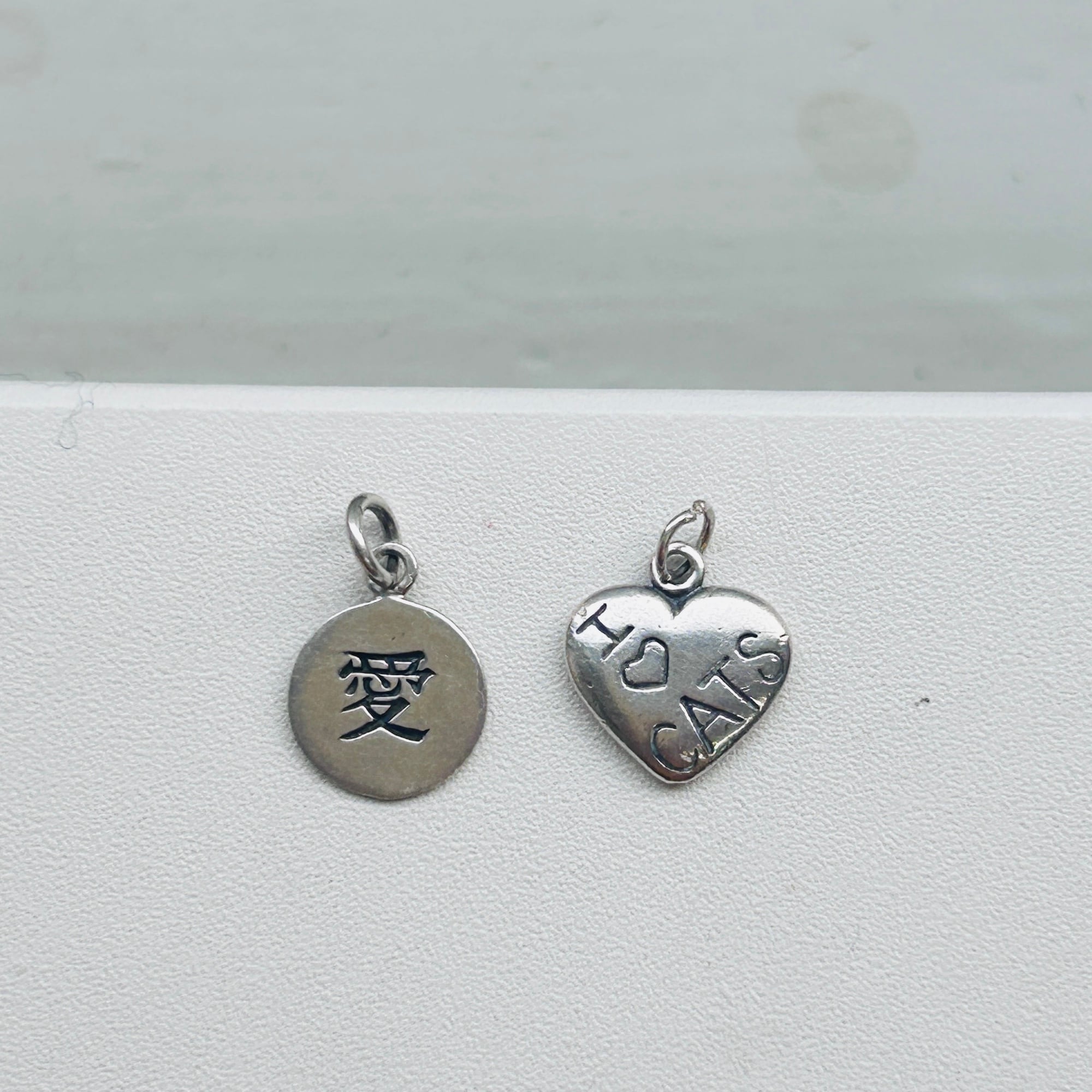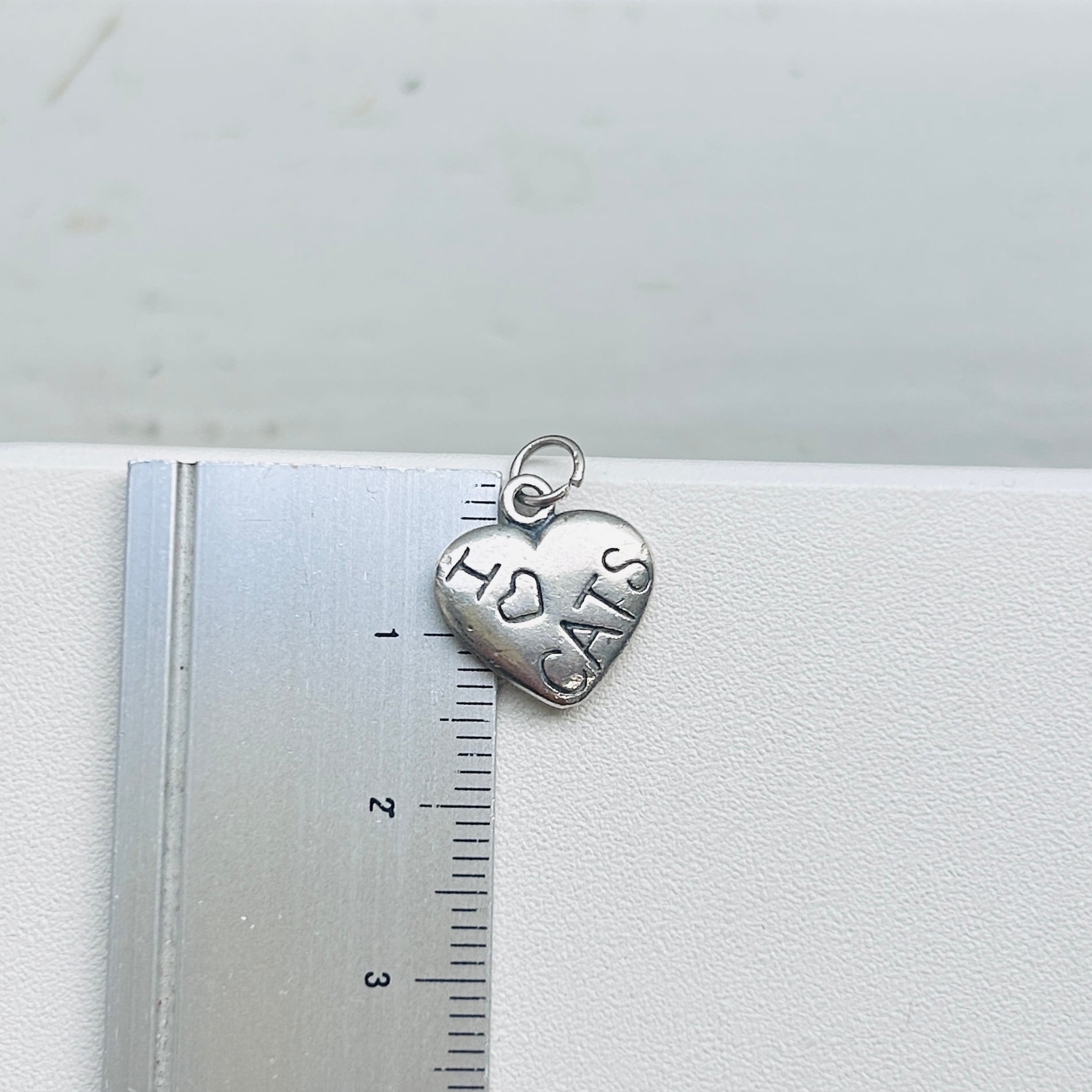 猫好きさんの為の小さなハートチャーム。さりげなく猫への愛を主張できるチャームです。鉛っぽい色味、質感のシルバーです。小さいですが厚みがありゴロンとしています。裏面にメーカーマークと「925」。丸カン内径3mmです。チェーンは付属しません。チェーンをお探しの場合はお問い合わせ下さい。