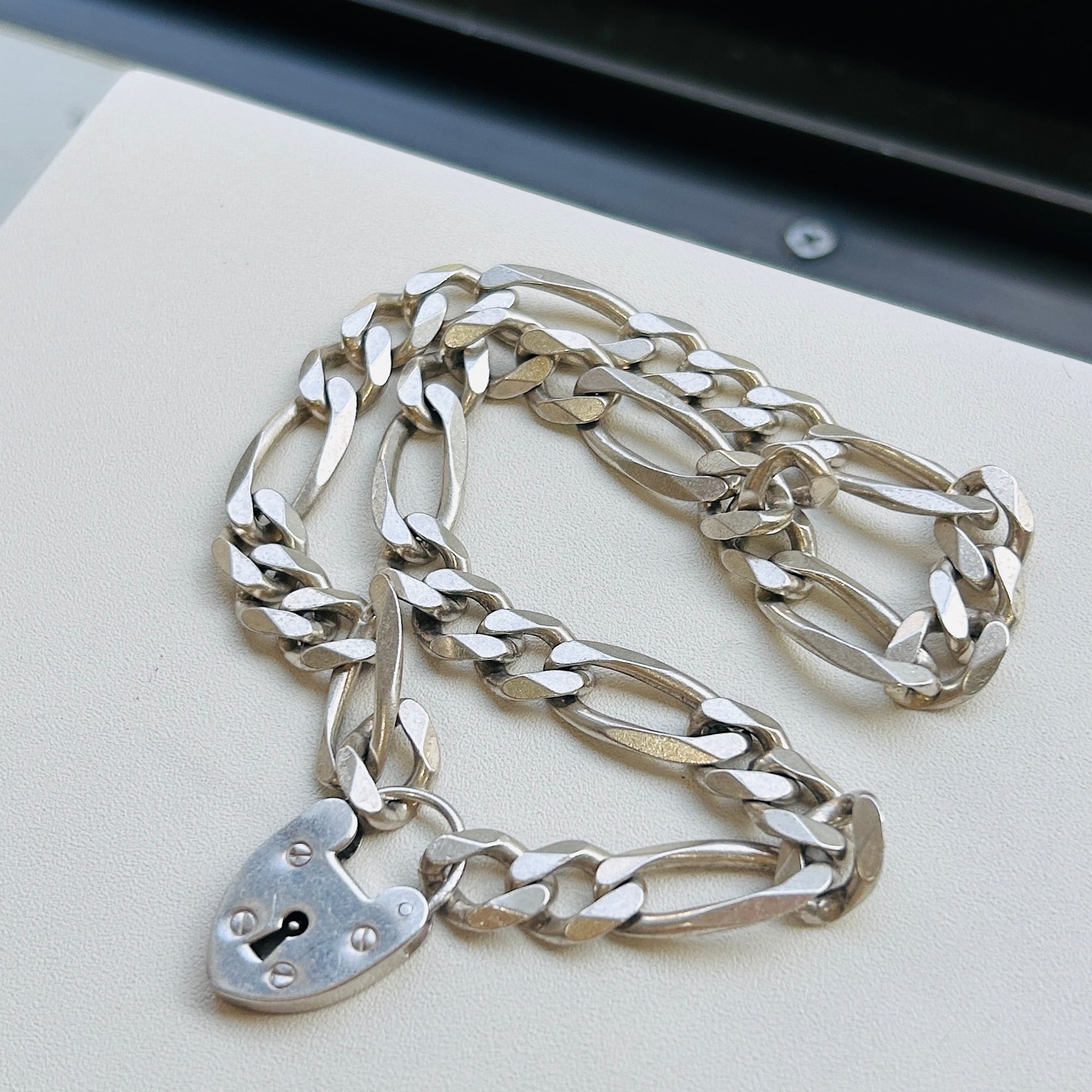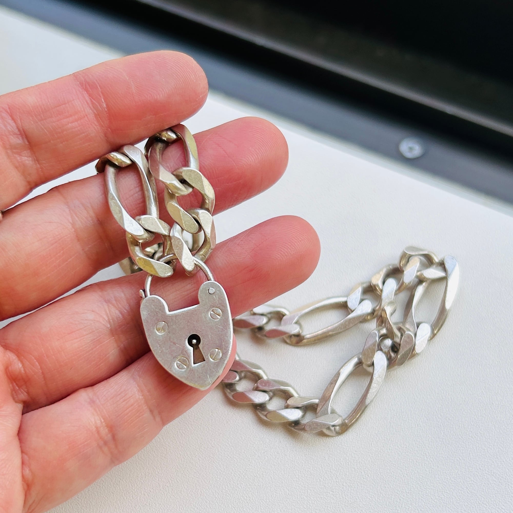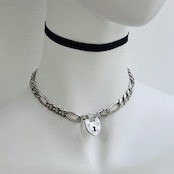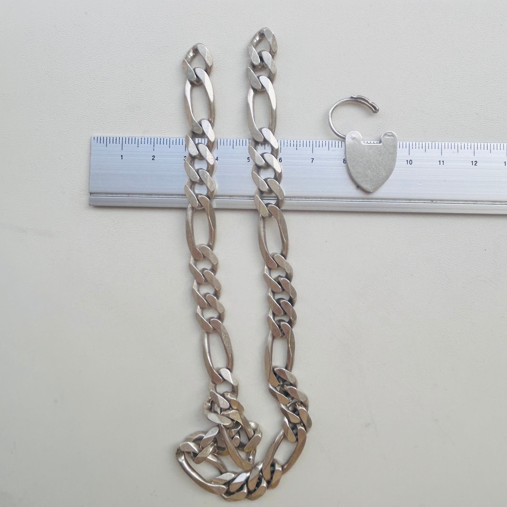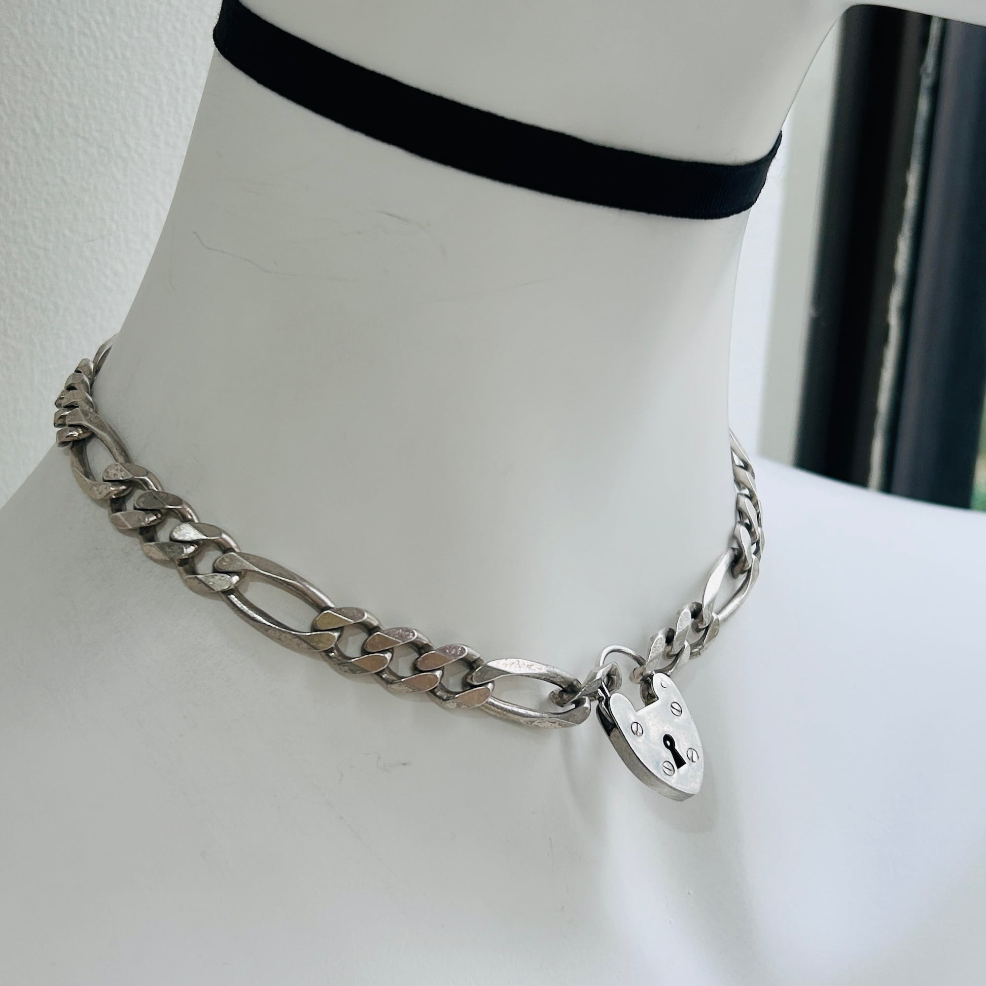 シルバー925 ヘビーフィガロ & 1974パドロックハート チェーンチョーカー