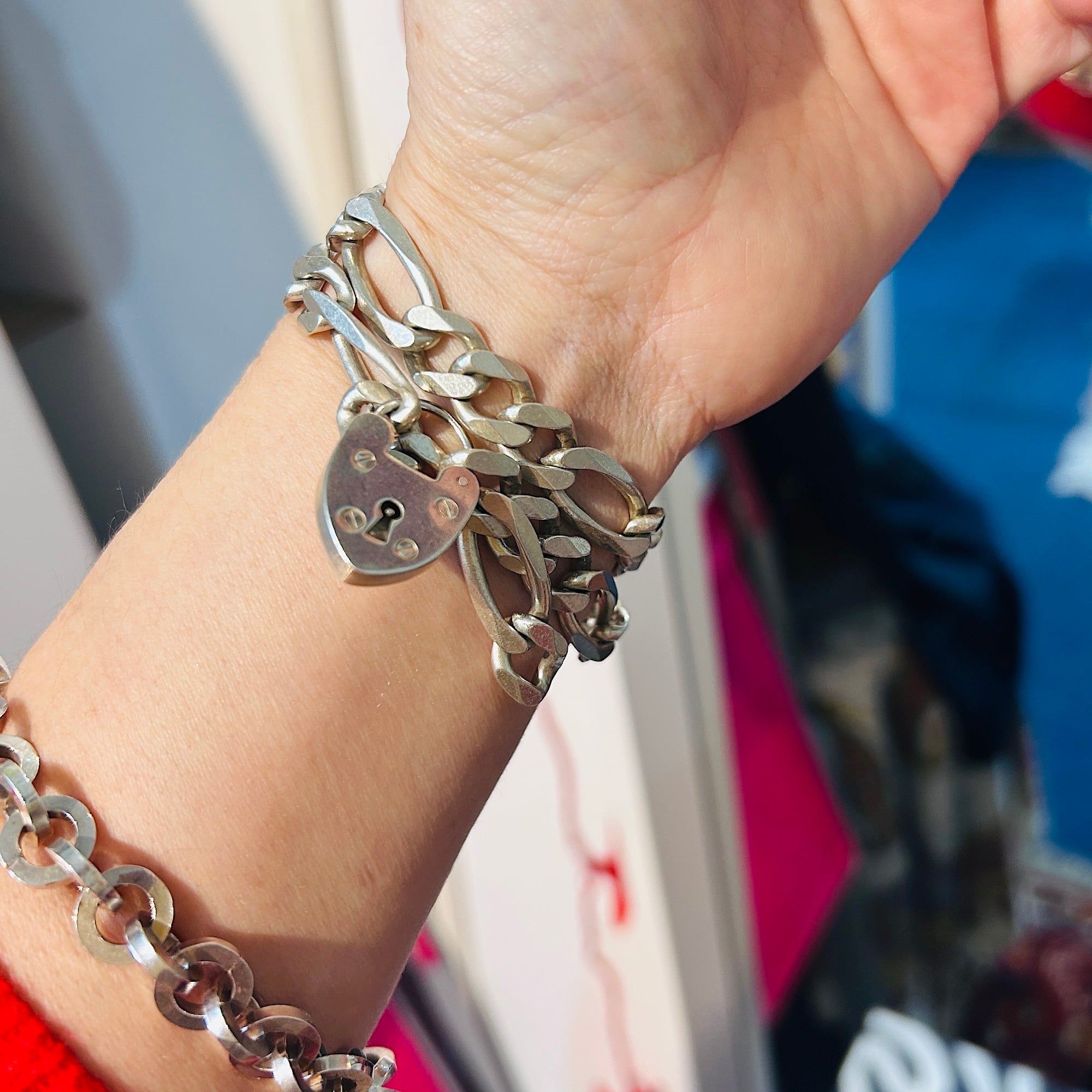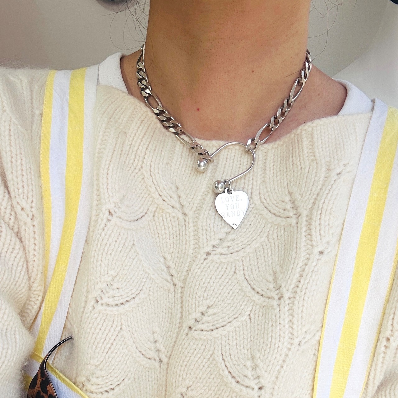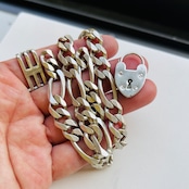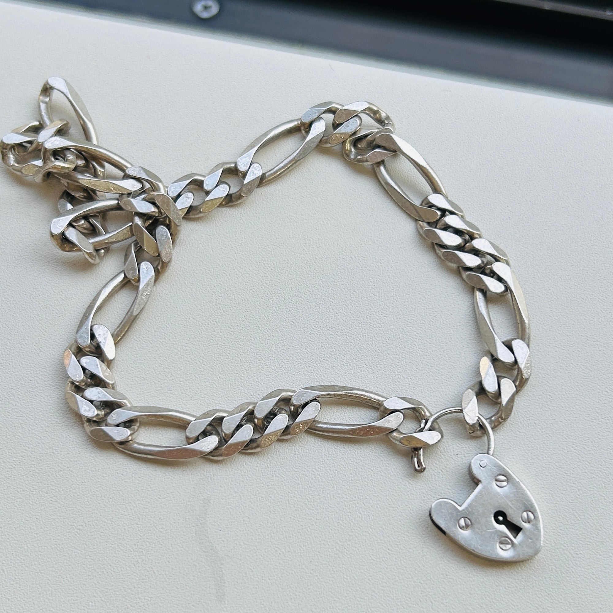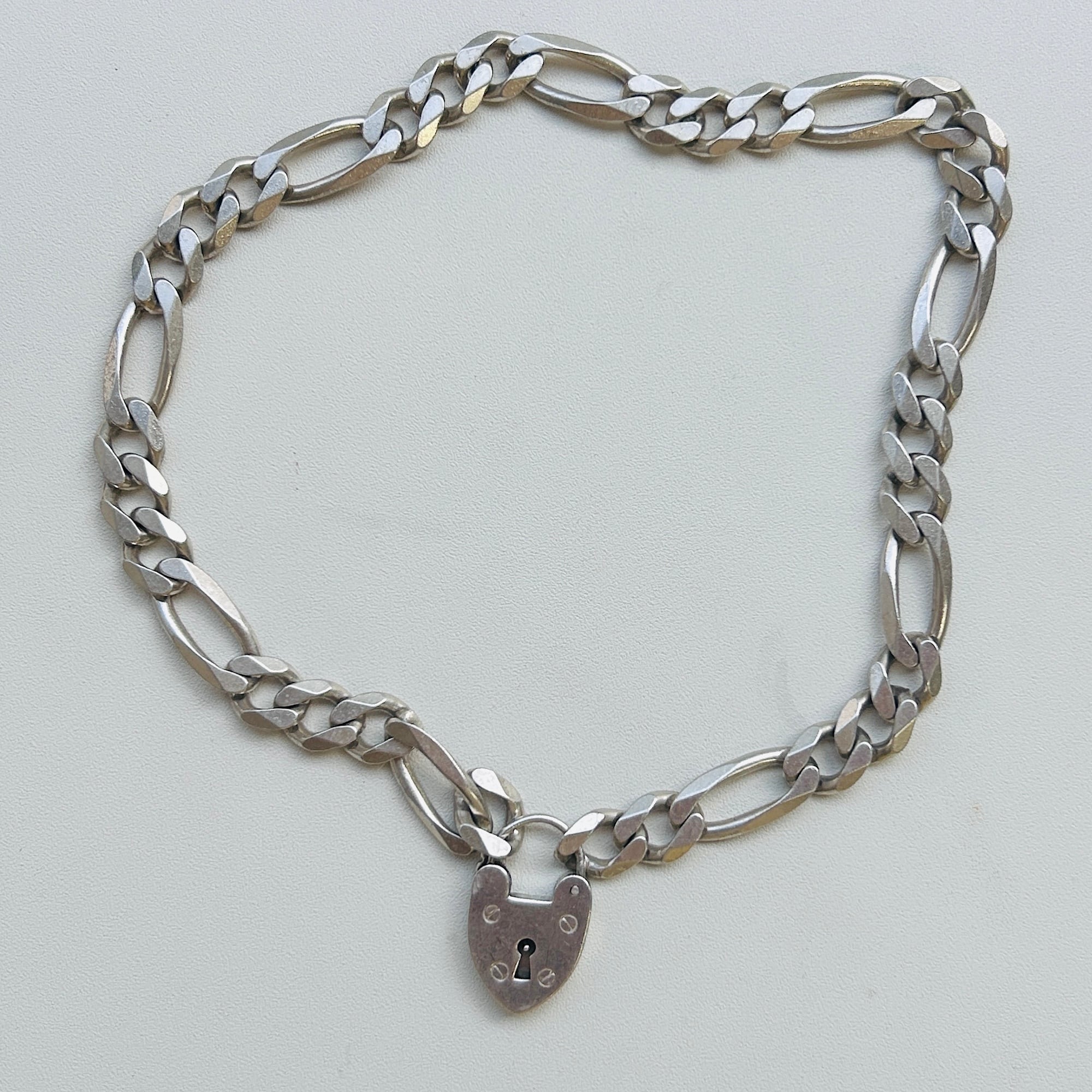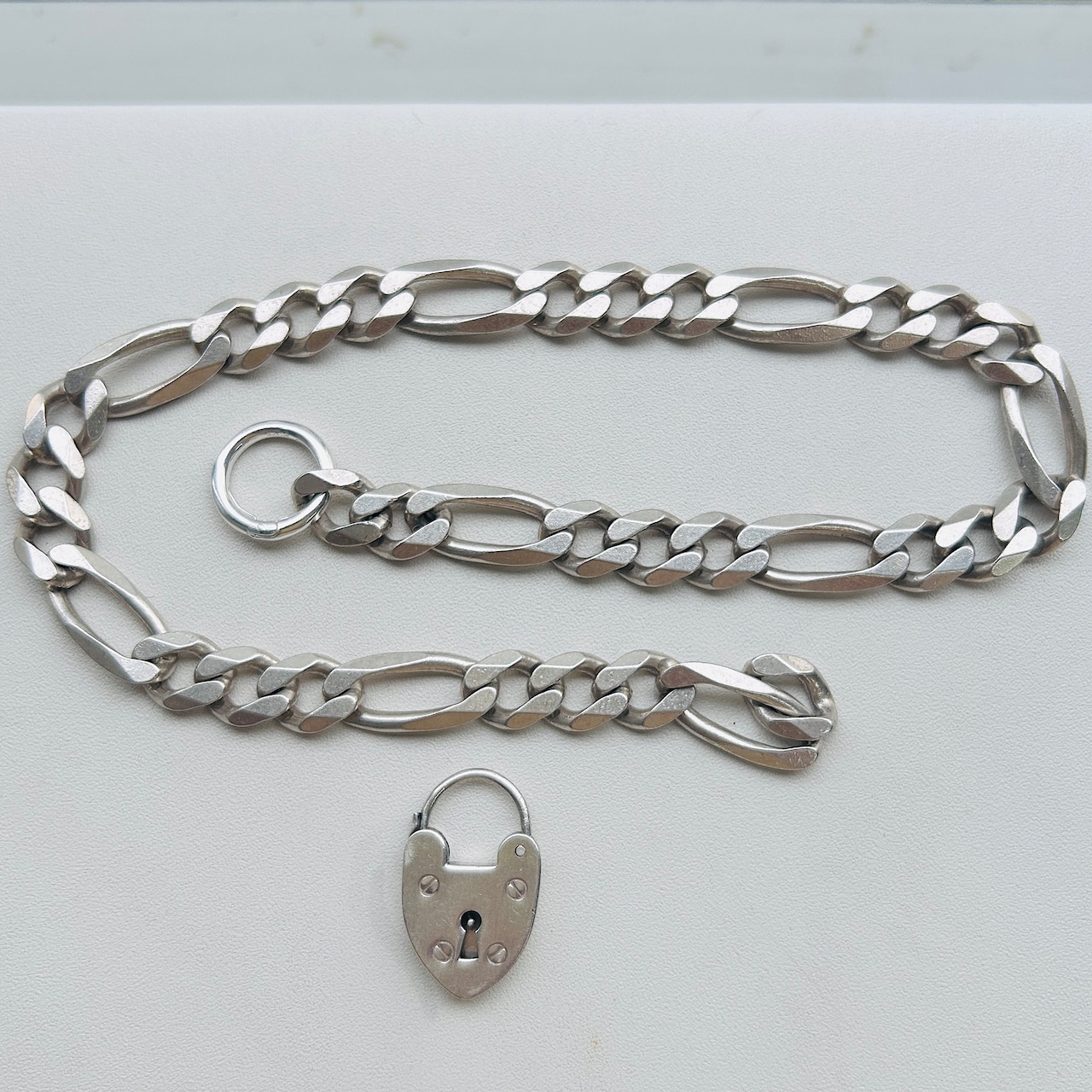 シルバー925 ヘビーフィガロ & 1974パドロックハート チェーンチョーカー