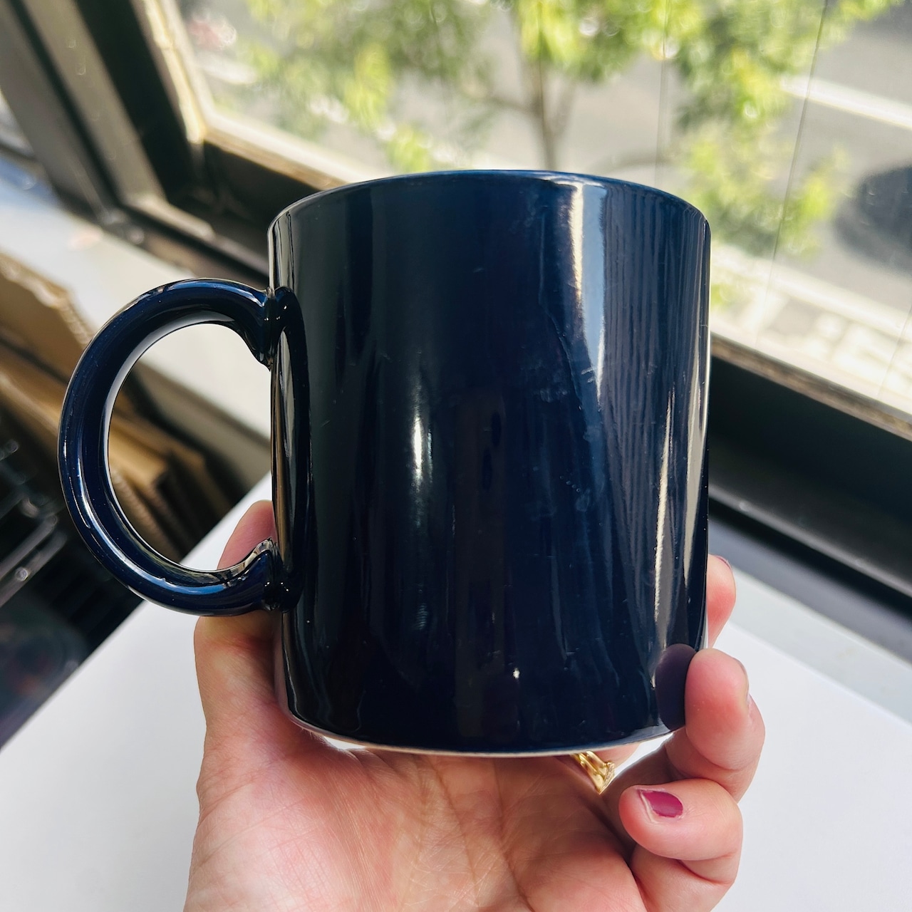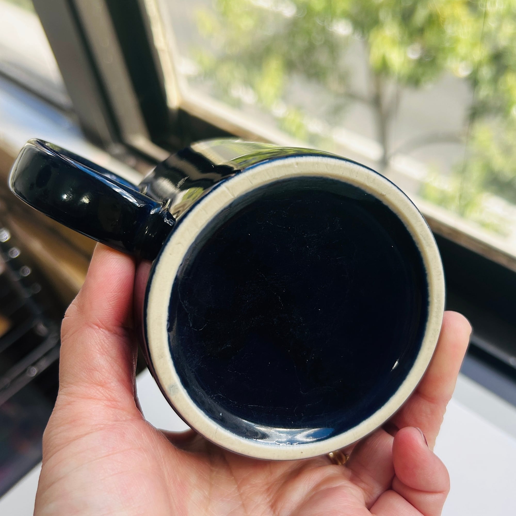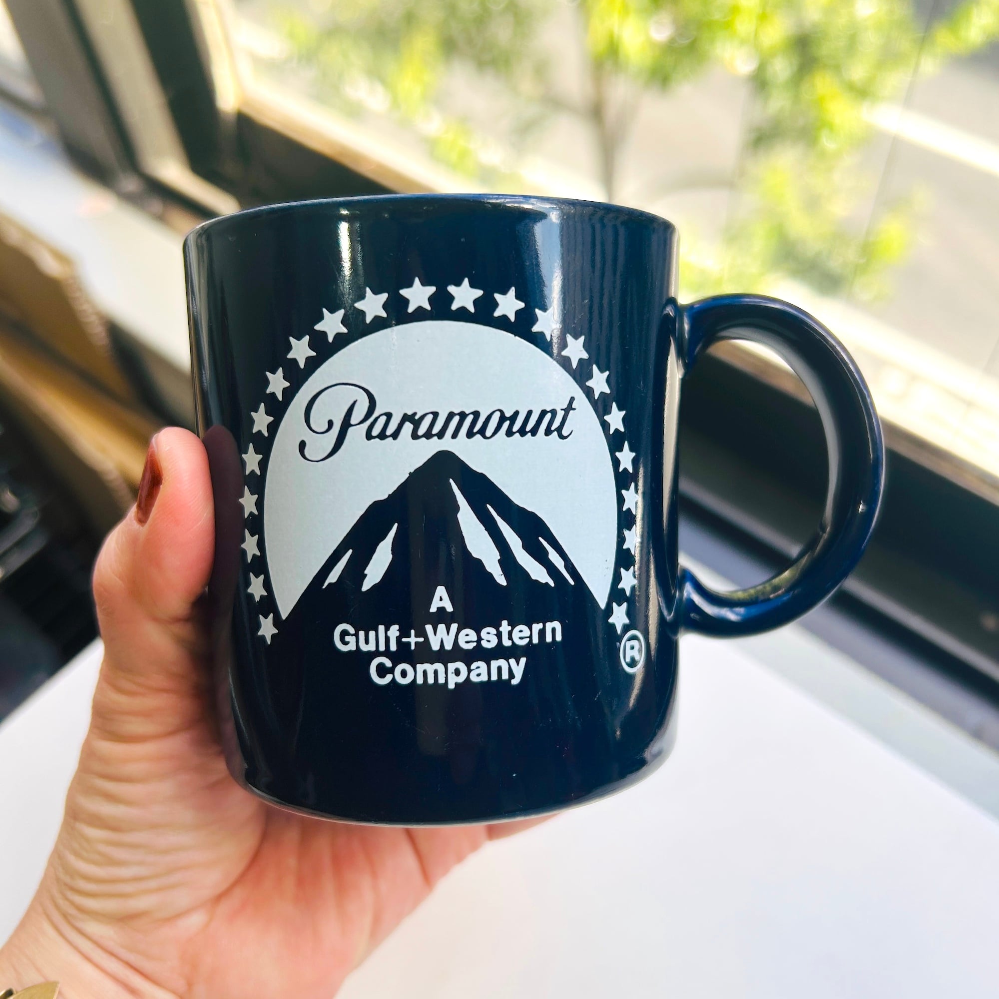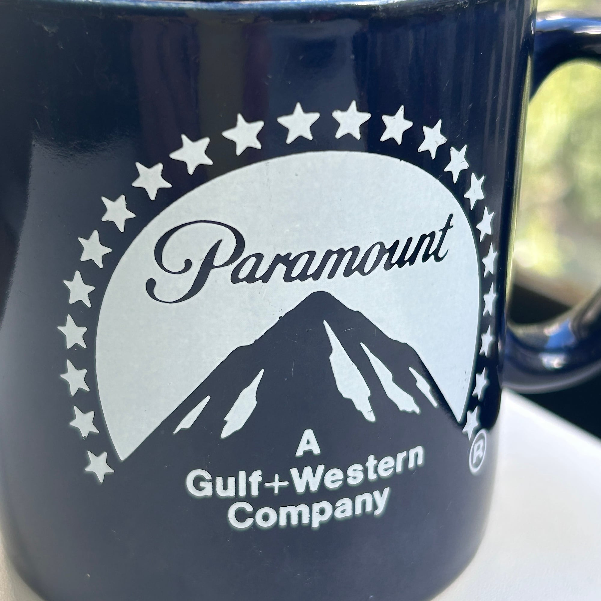 米国パラマウント・ピクチャーズのマグ。1966〜94年に使用されたロゴマークです。色はミッドナイトブルー。大きなハンドルでカフェオレに最適なサイズ感です。バックスタンプなし。フチに少々使用感ありますが大きな汚れやダメージはありません。