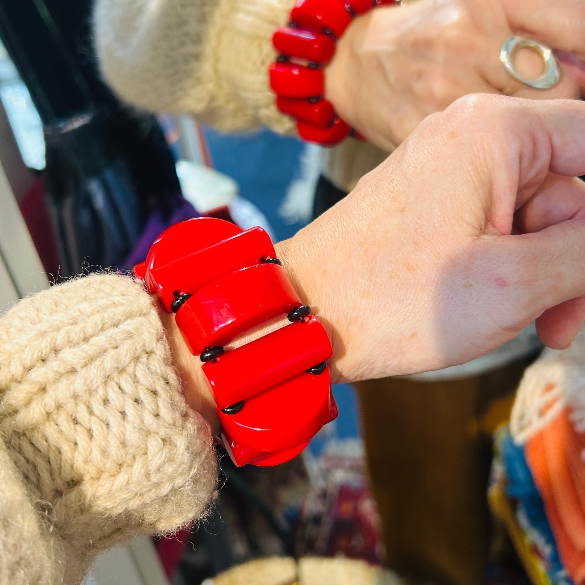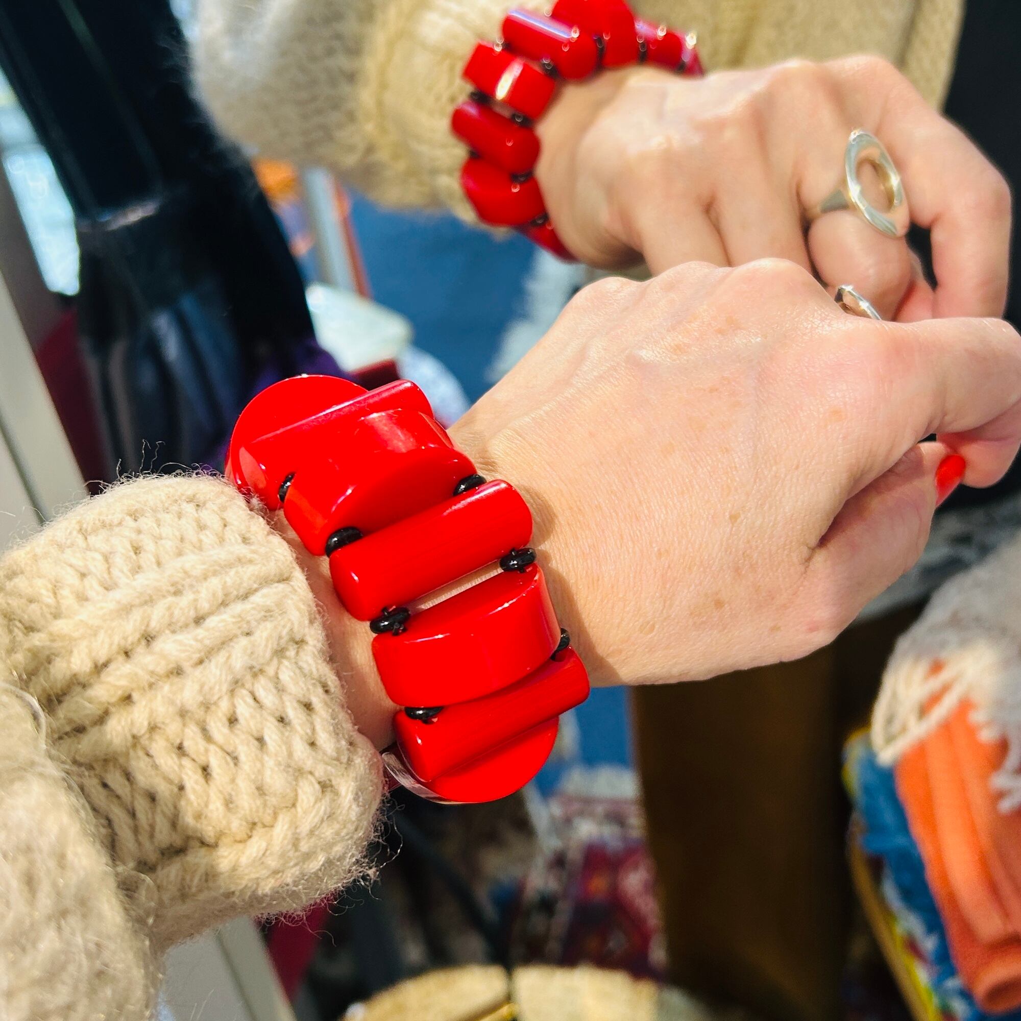 BAKELITE チェリーレッドベークライト STRETCHブレスレット
