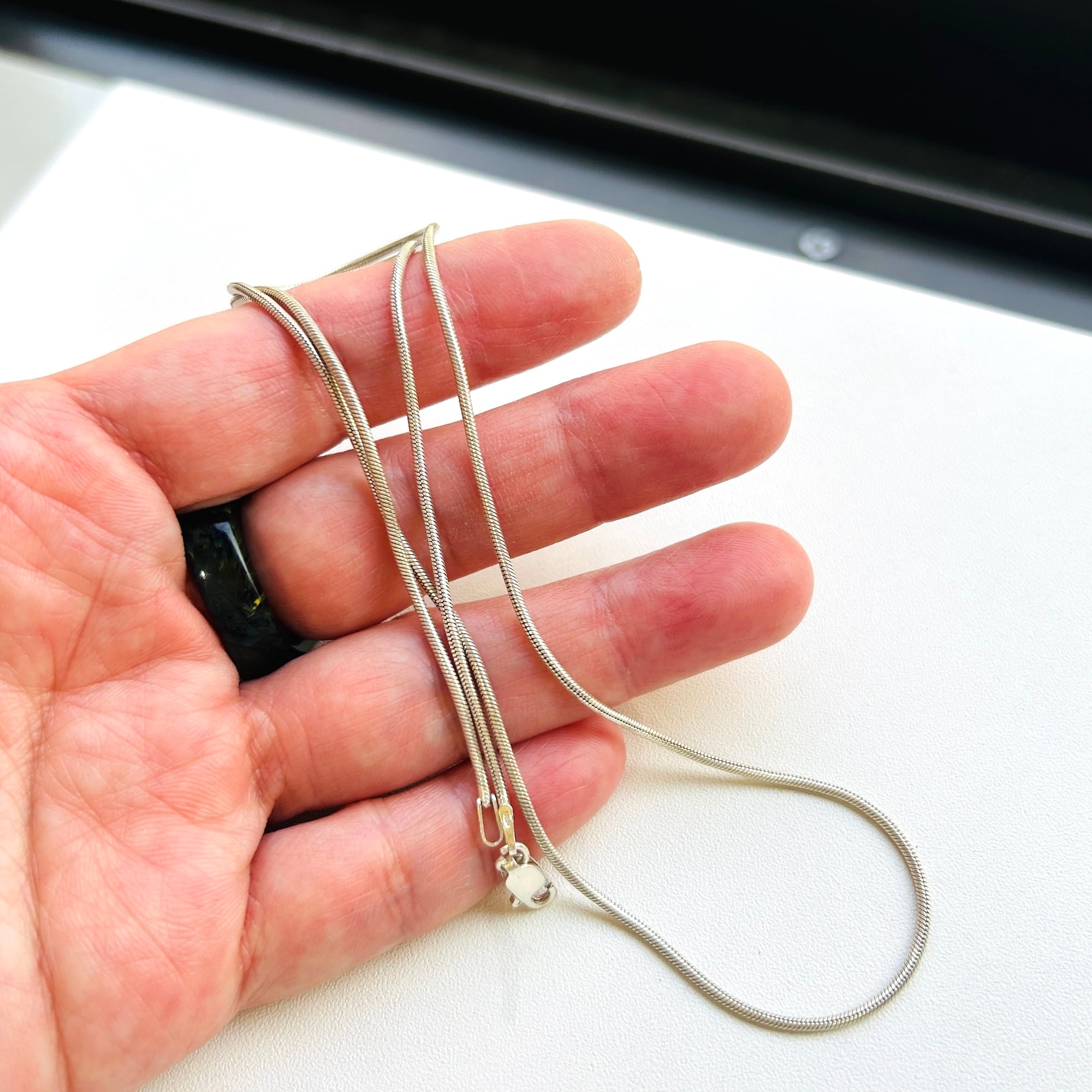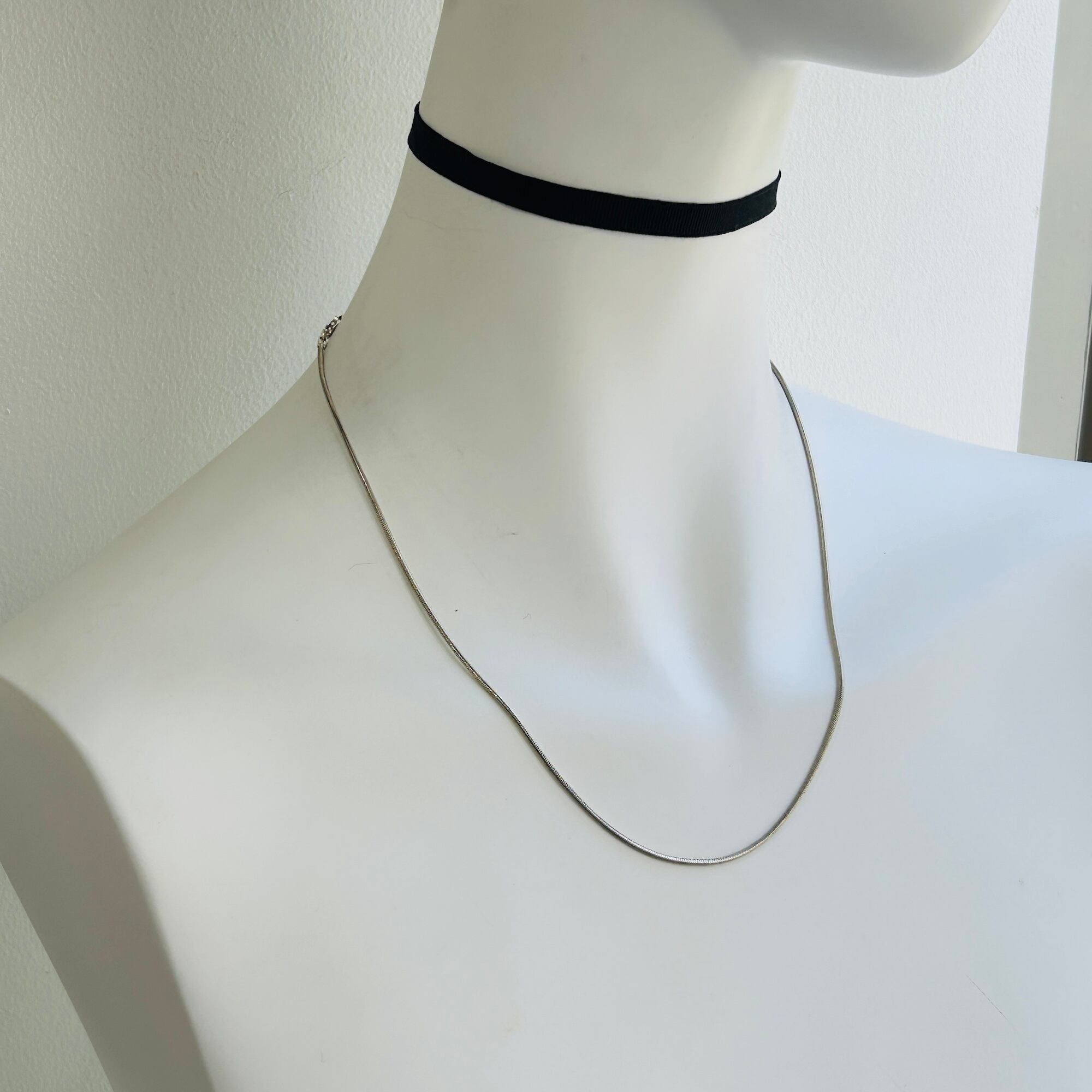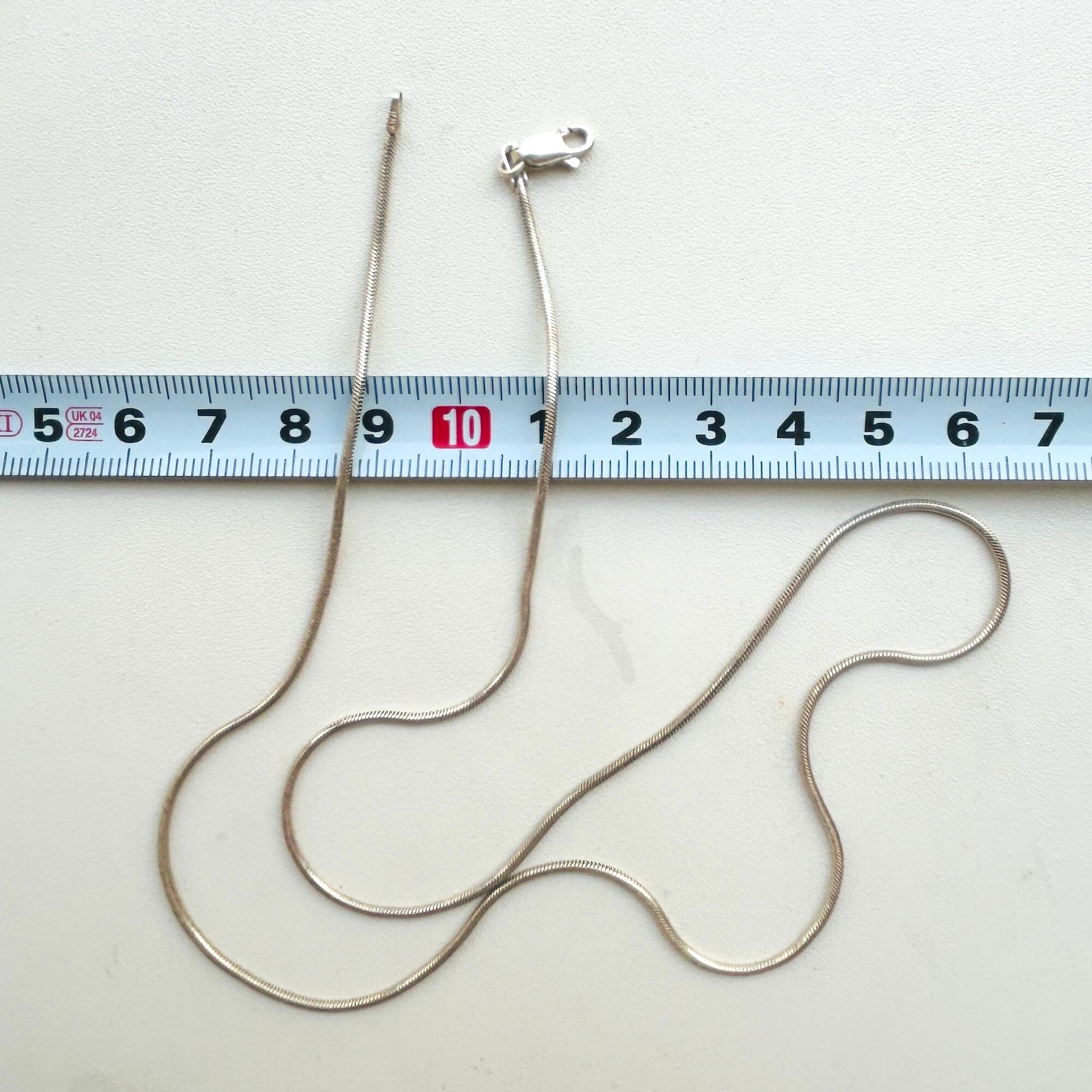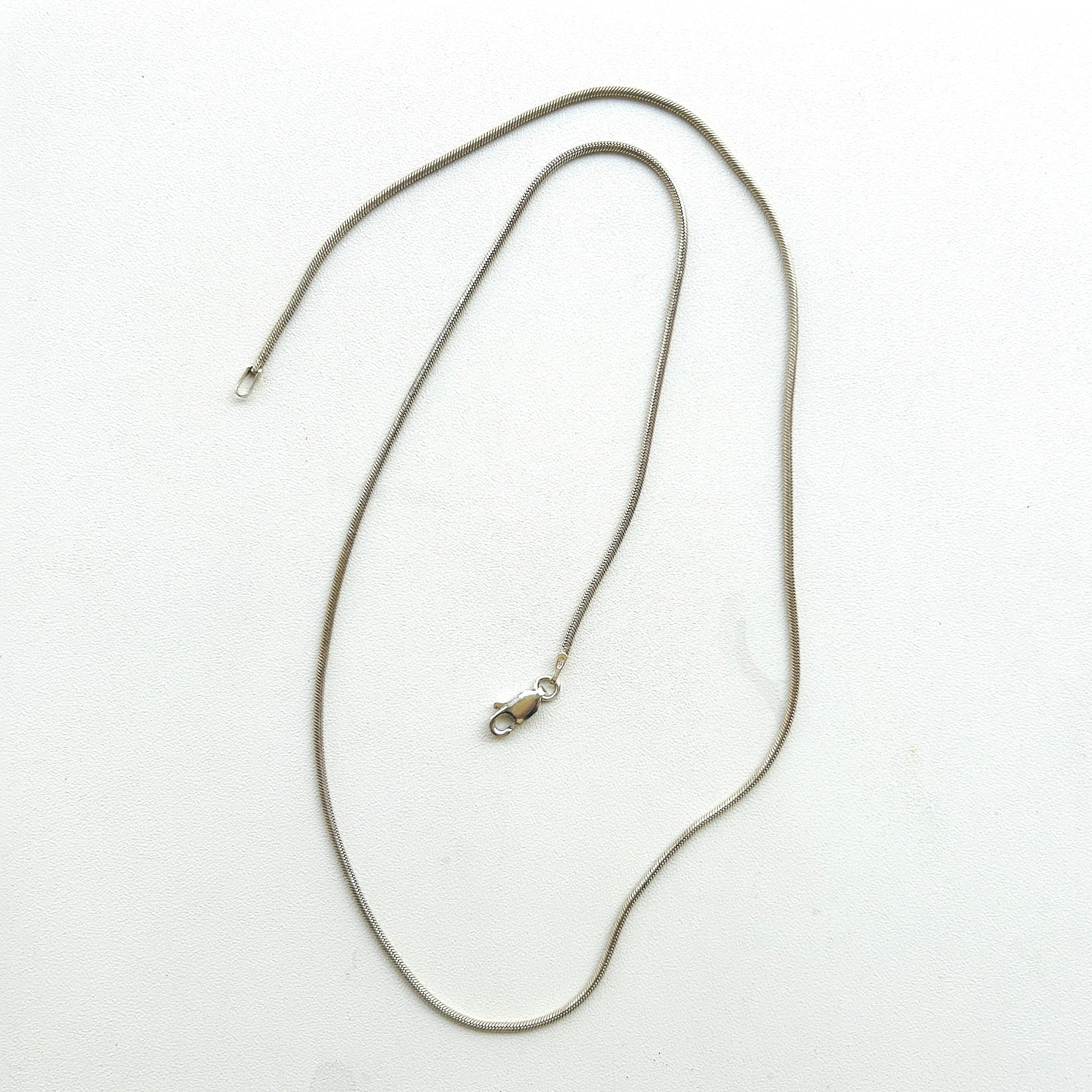しっかりめのスネークチェーンネックレス。ツヤが控えめな筒丸状のシンプルチェーンです。どのようなトップとも合わせKU便利なチェーンです。「ITALY」「925」刻印。