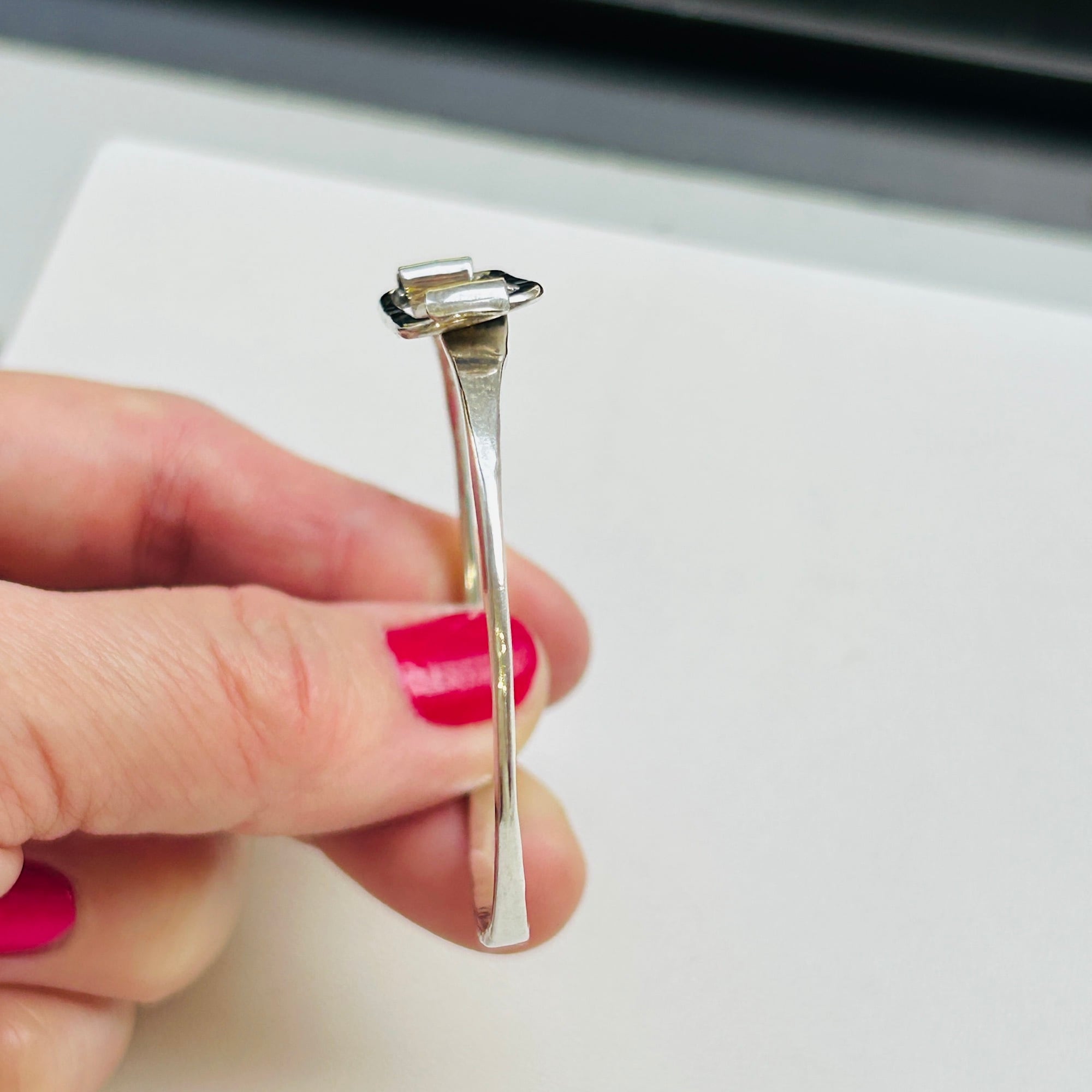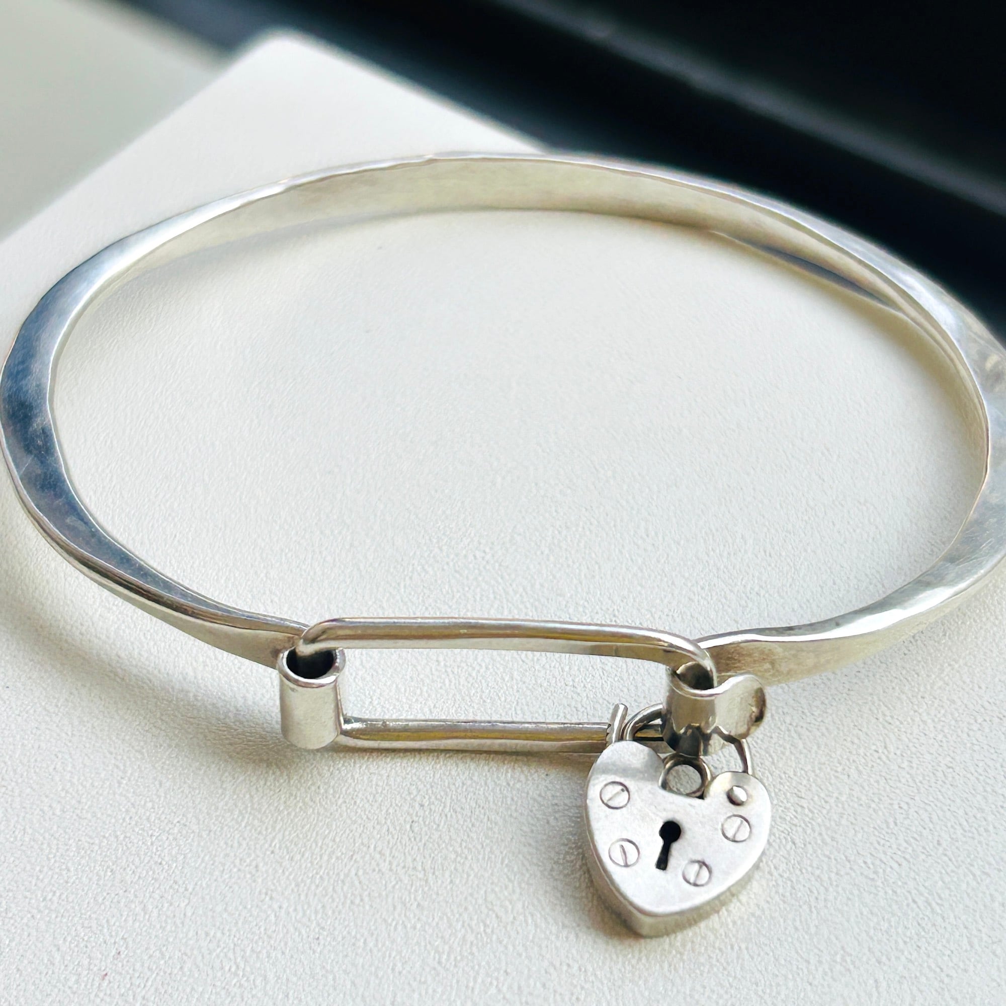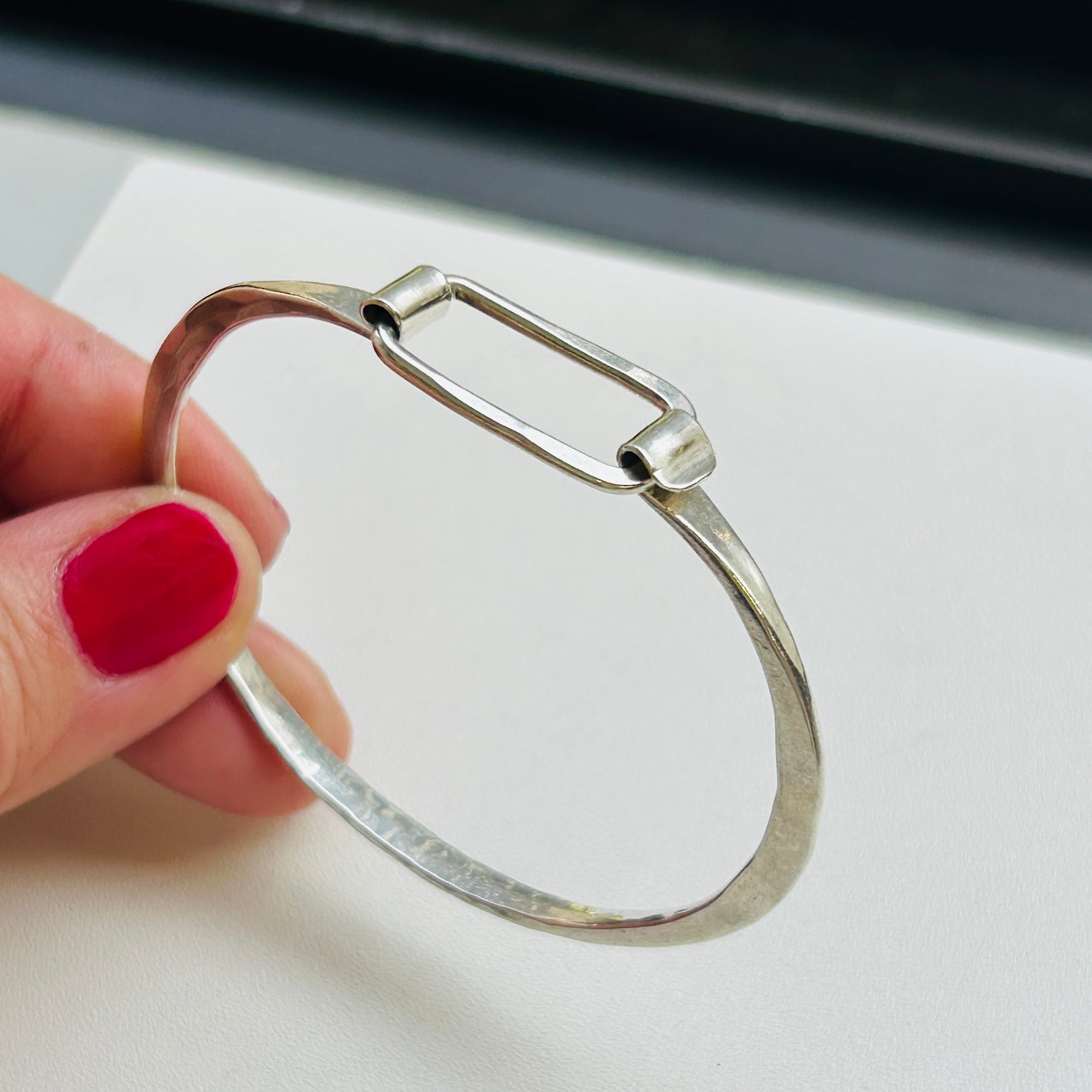シルバー925 槌目スクエアフックバングル