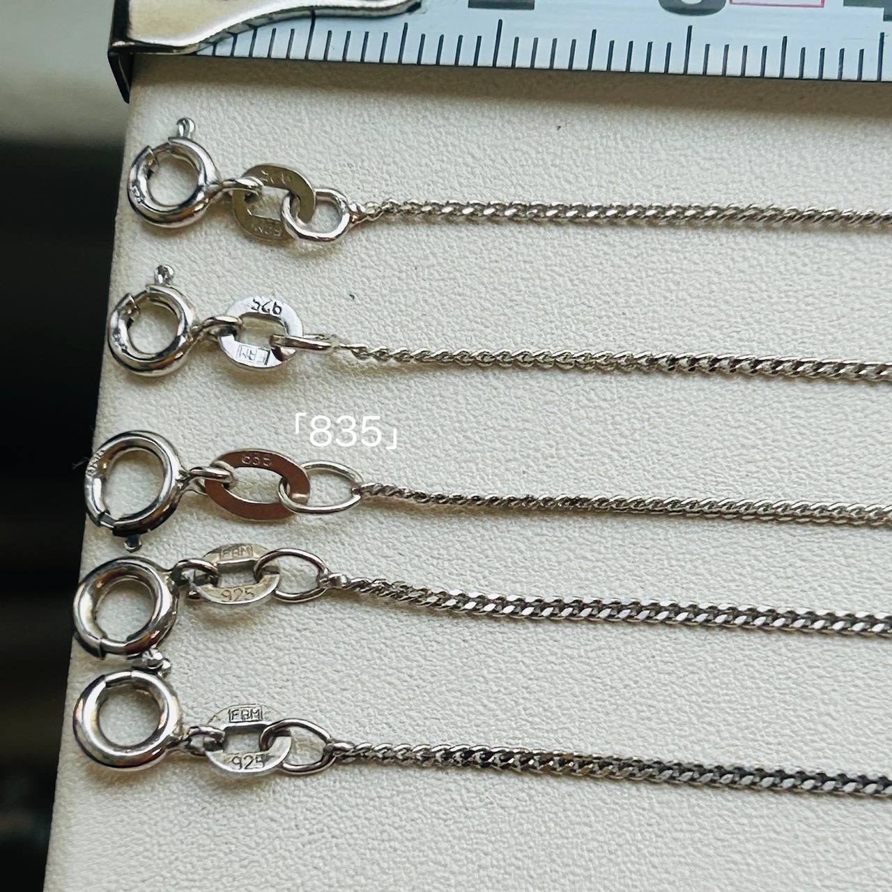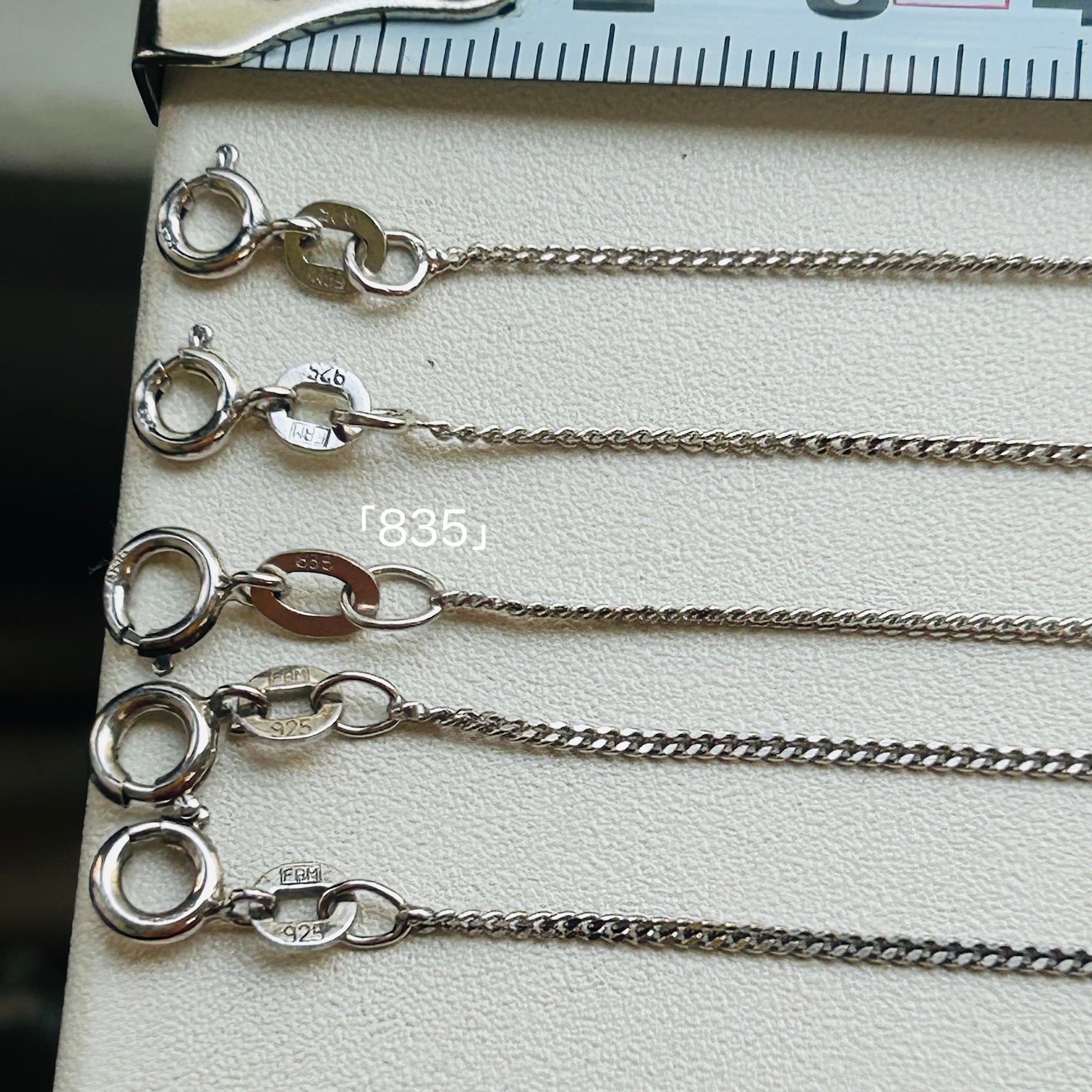 36cm3本、34cm2本あります。36cmチェーンのうち1本は「835」刻印。