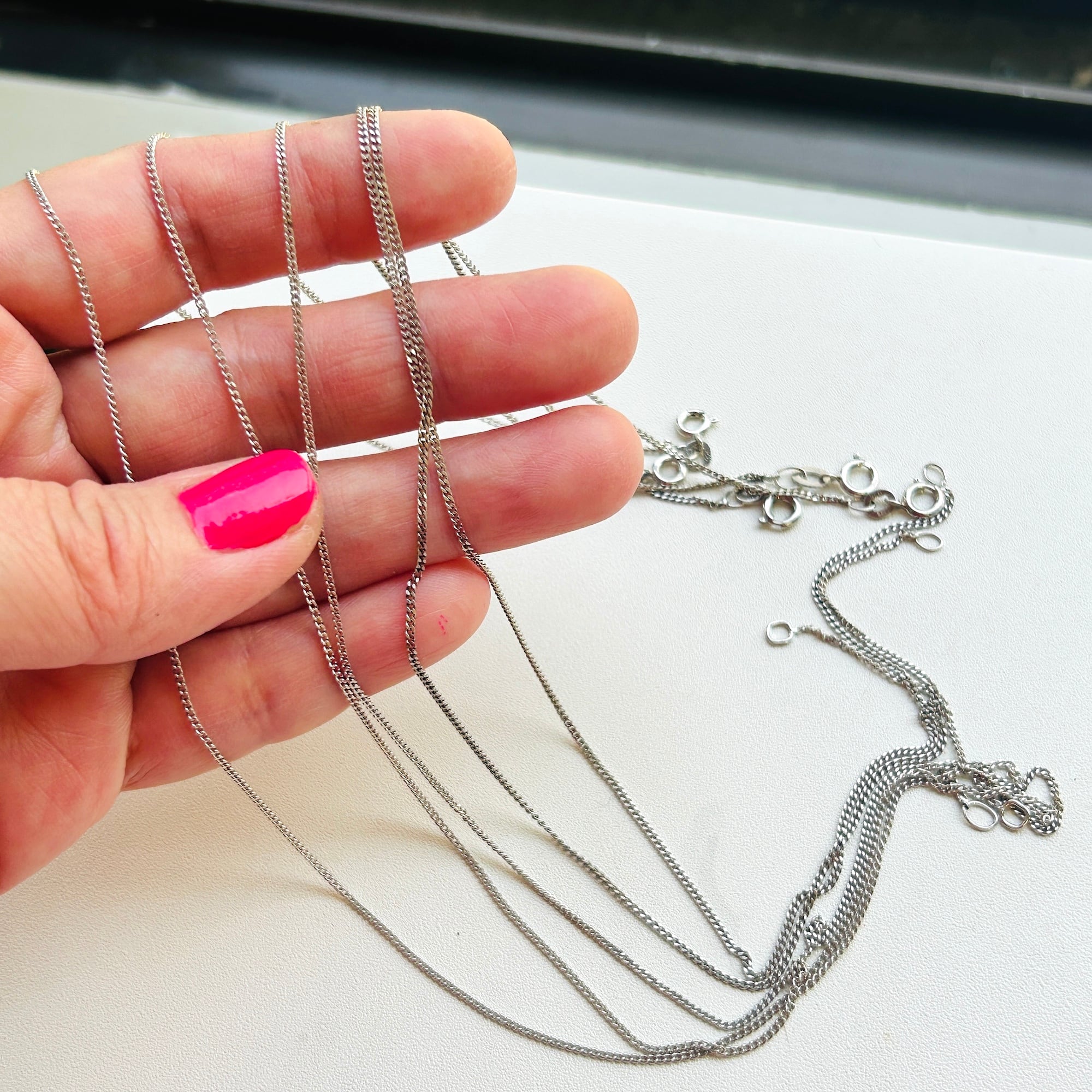 その他「FBM」「925」。「FBM」が付いてないのもあります。バラツキはありますが全てFriedrich Binderチェーンです。非常にデリケートなチェーンですので強く引っ張らないよう使って下さい。