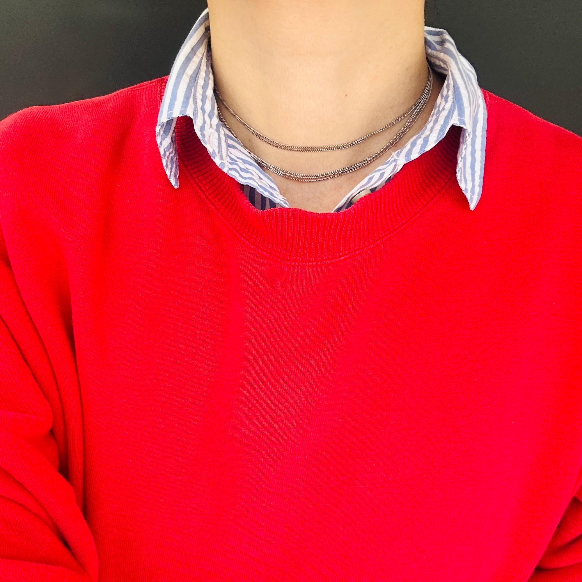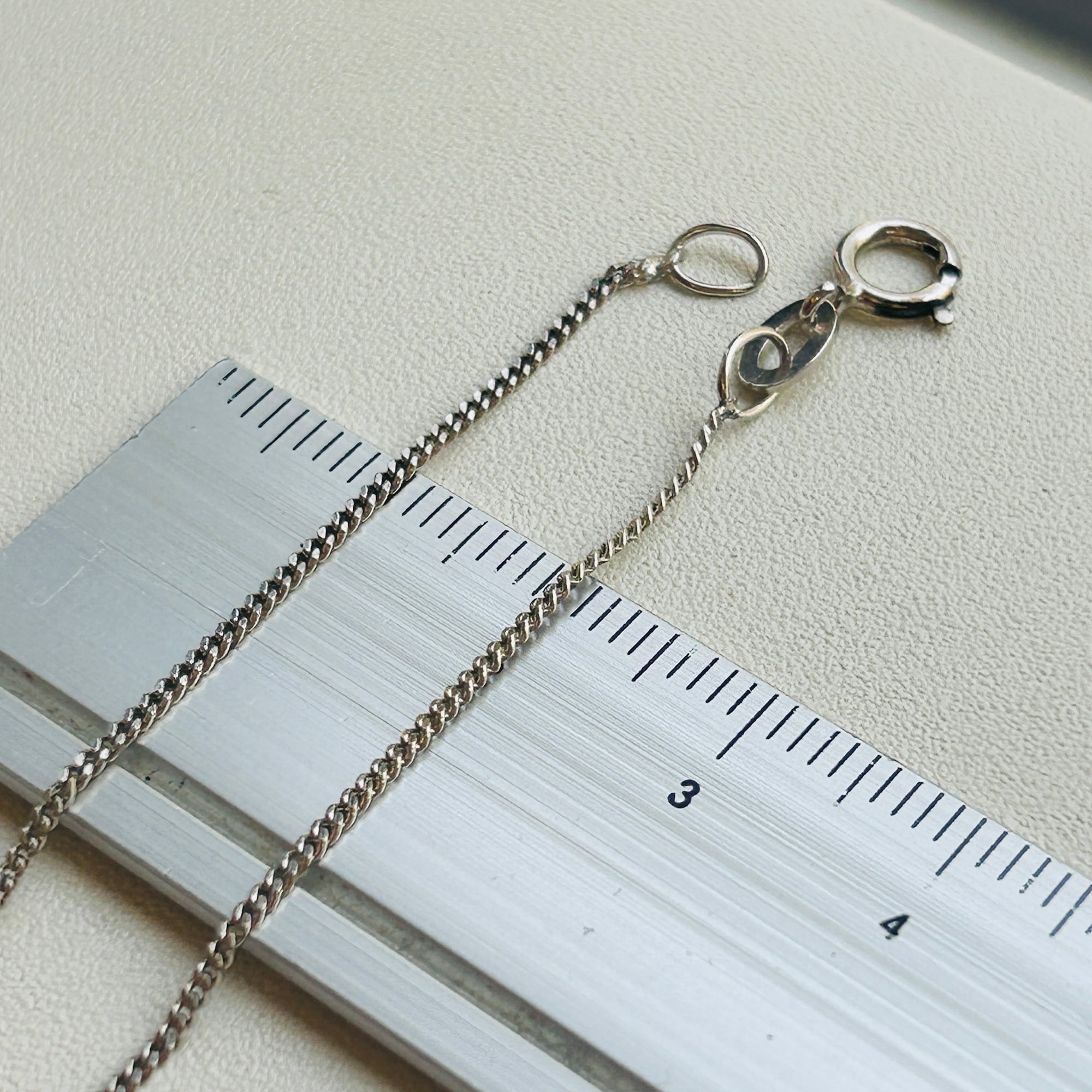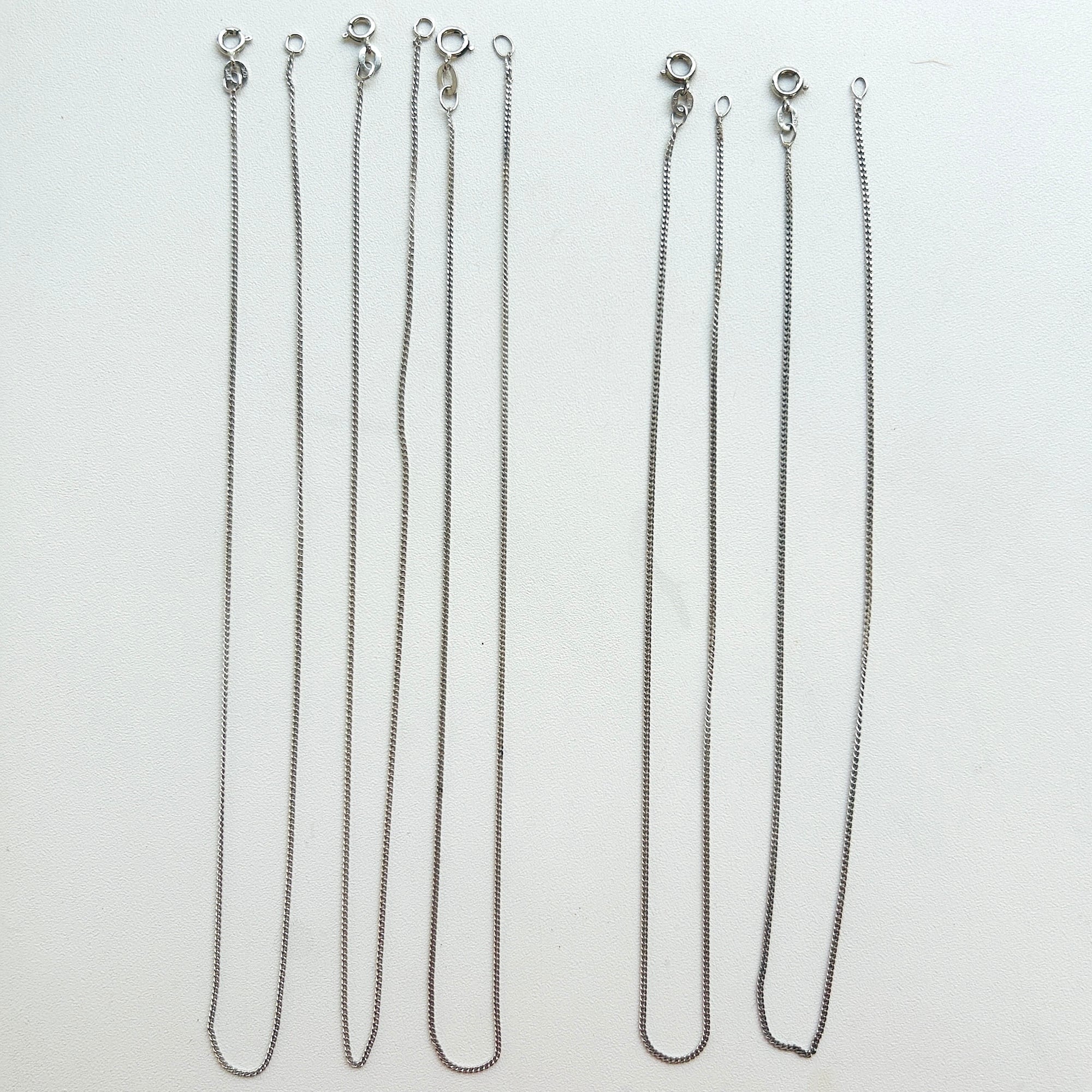 とても短いドイツ製シルバーチェーン。1980年代、ドイツ・ジュエリー工房「Friedrich Binder Mönsheim」に長さ指定で発注をかけて大量ロットで輸入、国内百貨店で販売されていました。このチェーンは当時の在庫で国内長期保管されていたお品物です。長さ、刻印、タグに多少のバラツキございますが昔のモノですのでご理解ください。ロジウムコートがかかっているとのことですが現行品のようなピカピカ感がなく馴染みやすいです。