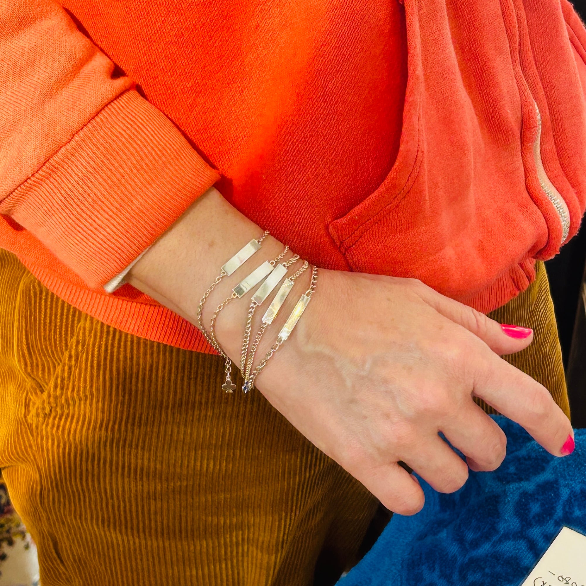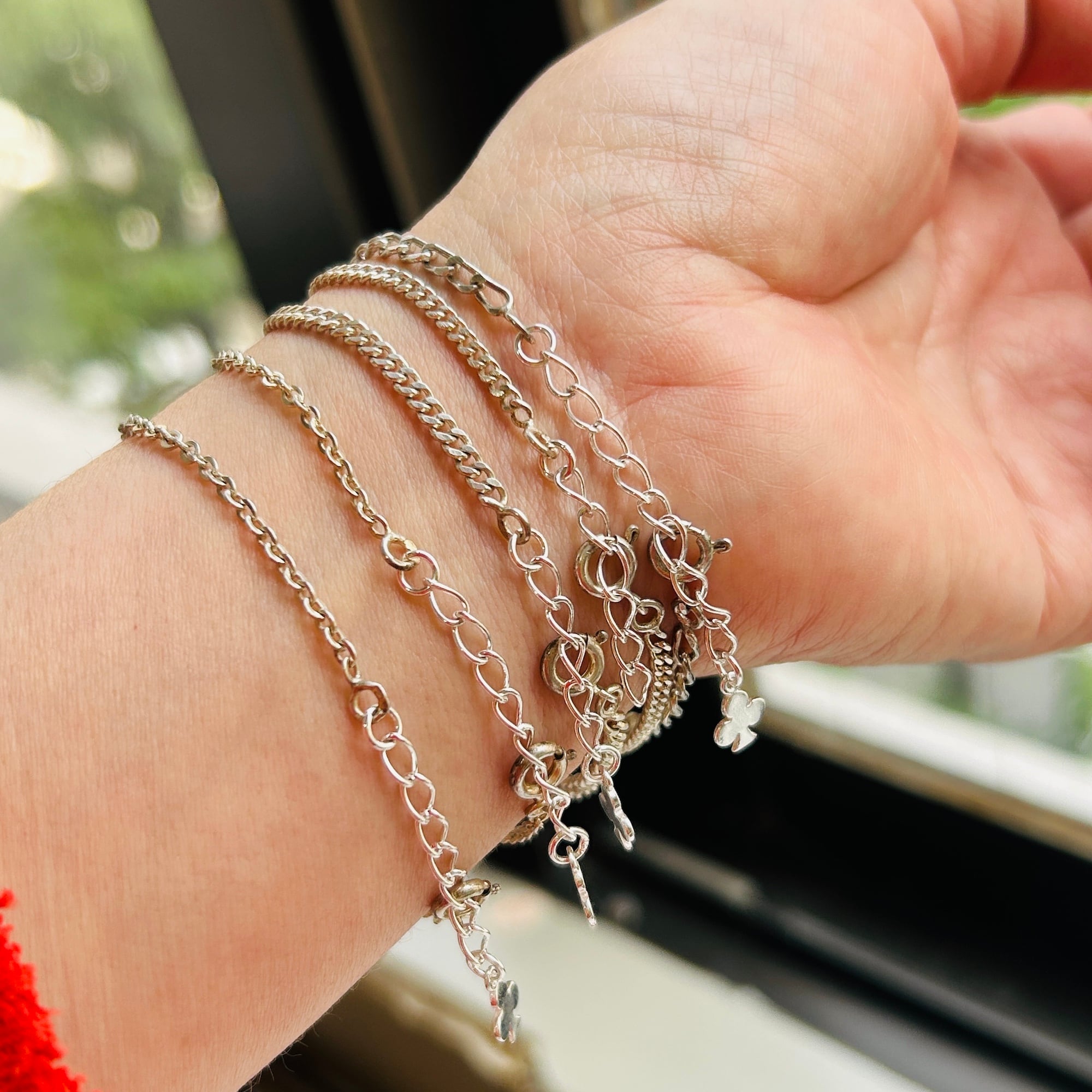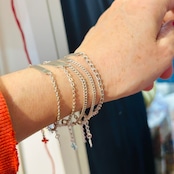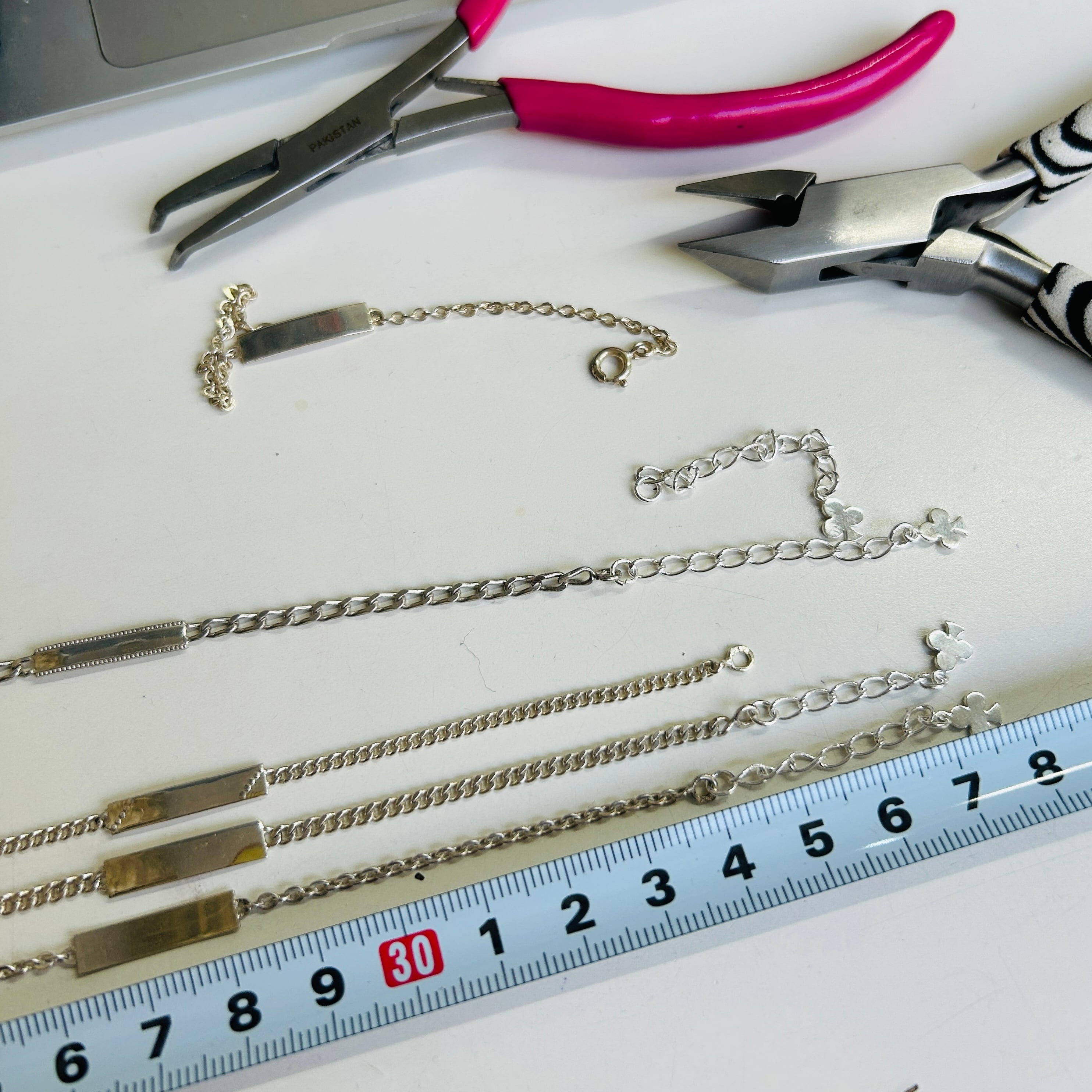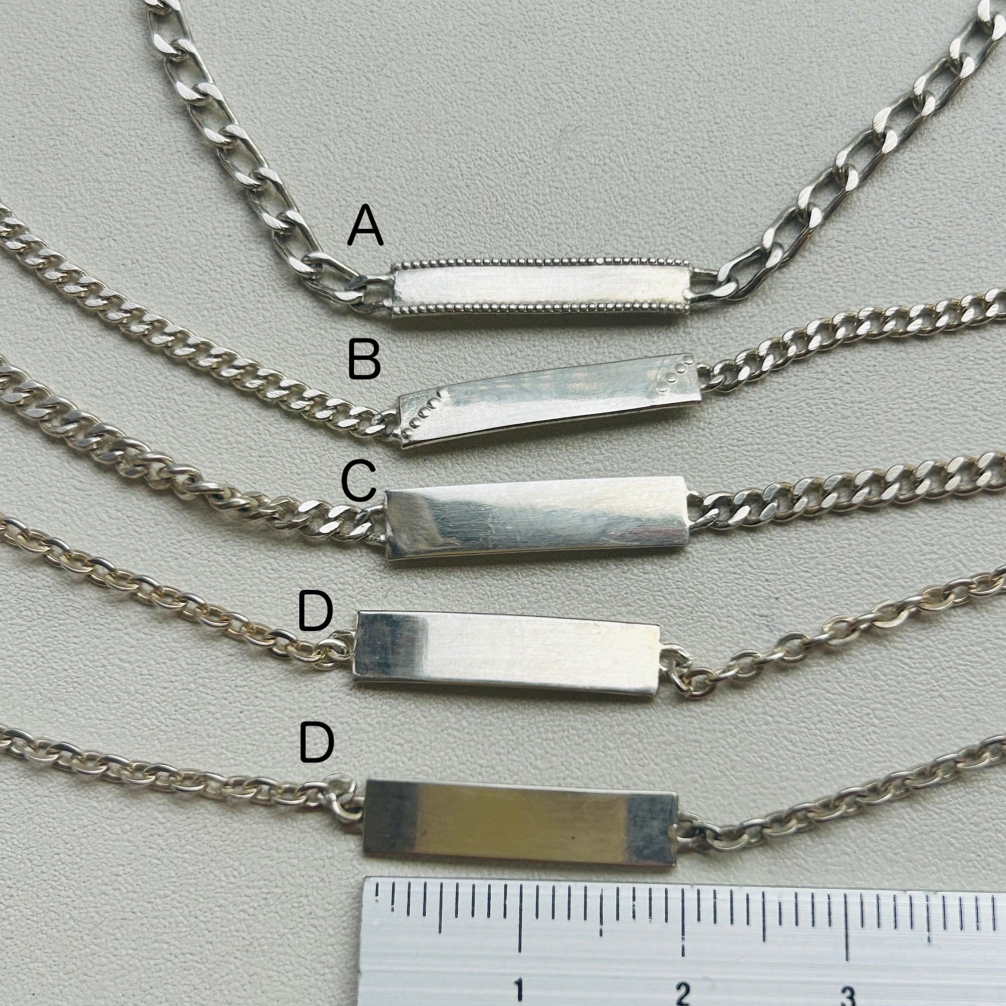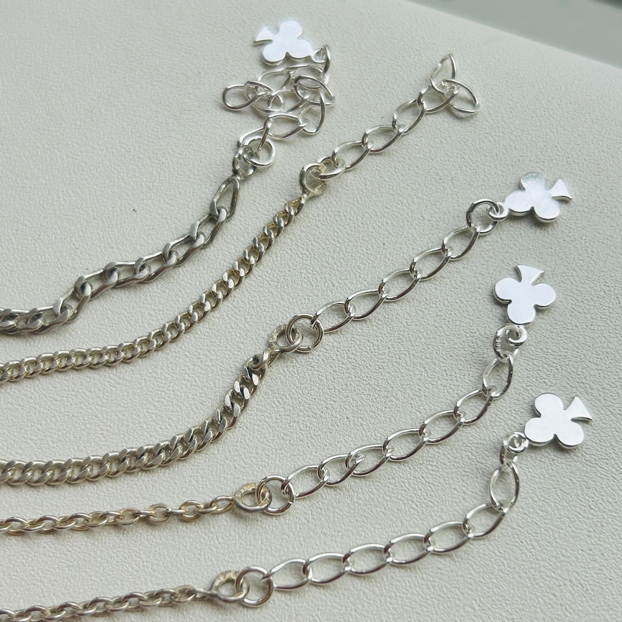 子供サイズの短いシルバーブレスレットを厚紙に結び付けられた未使用状態で入荷しました。短くて需要の少なそうなブレスレットに市販アジャスターチェーン(シルバー925製)を付けてアップサイクルしました。全て長さ17cmくらいに仕上げています。引き輪を引っ掛けるドーナツ型の輪にはcrab刻印がそれぞれ2つずつ押されています。crabマークはフランス製シルバー800を保証、1838〜1984年まで使用されたマークです。