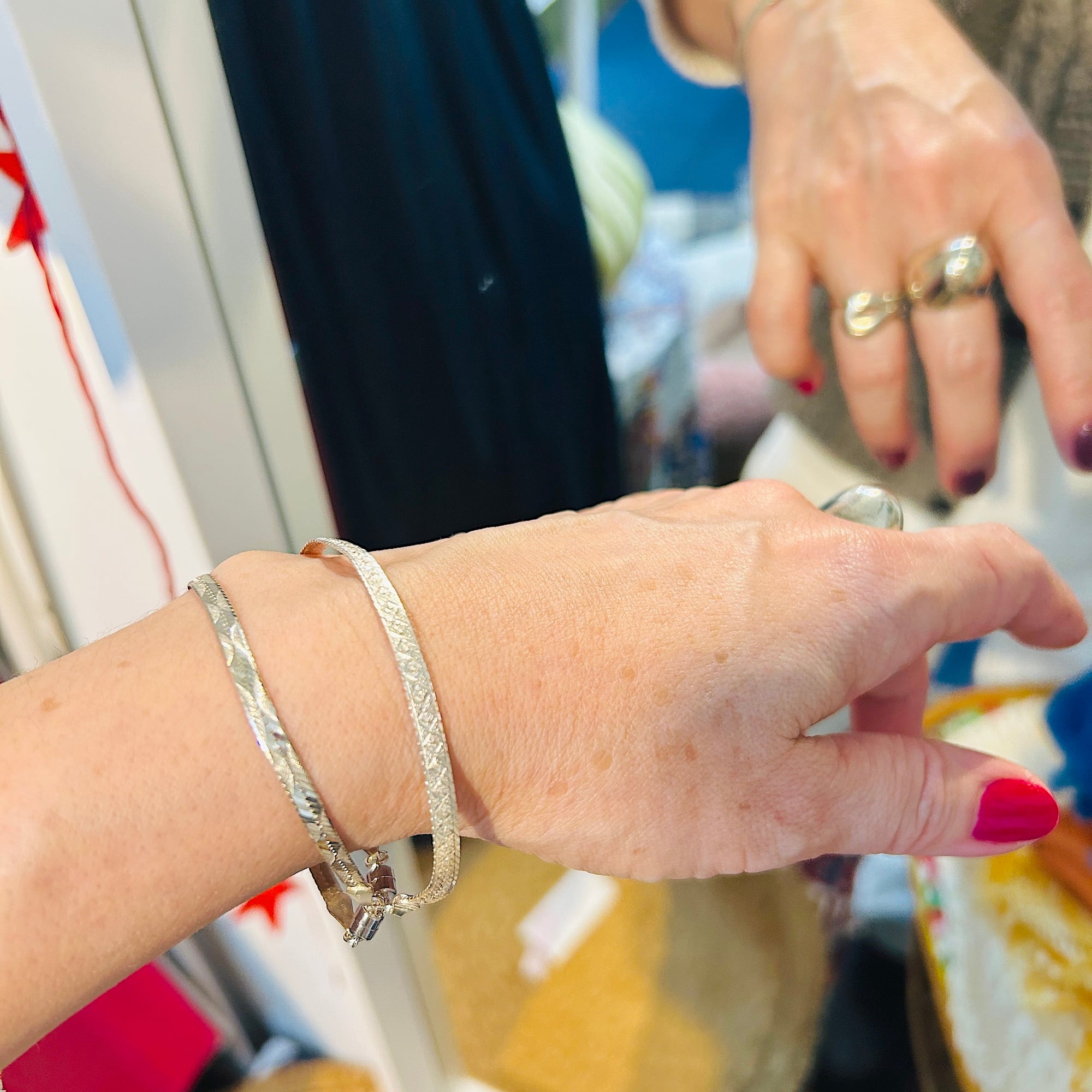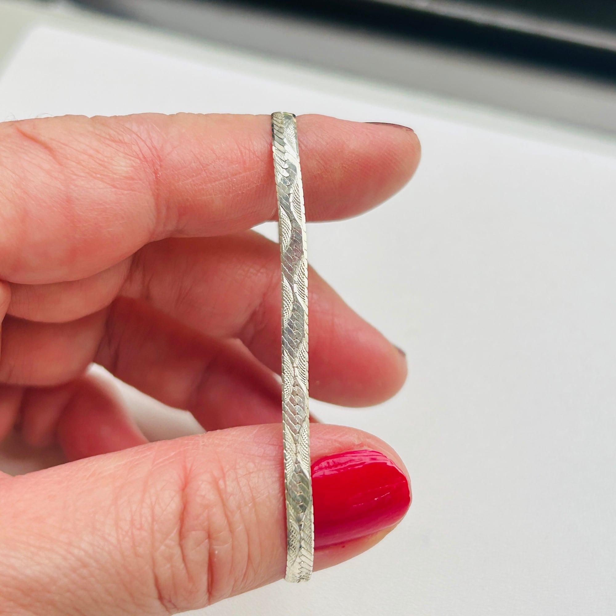 Italy シルバー925 模様ヘリンボーン マグネット開閉ブレスレット