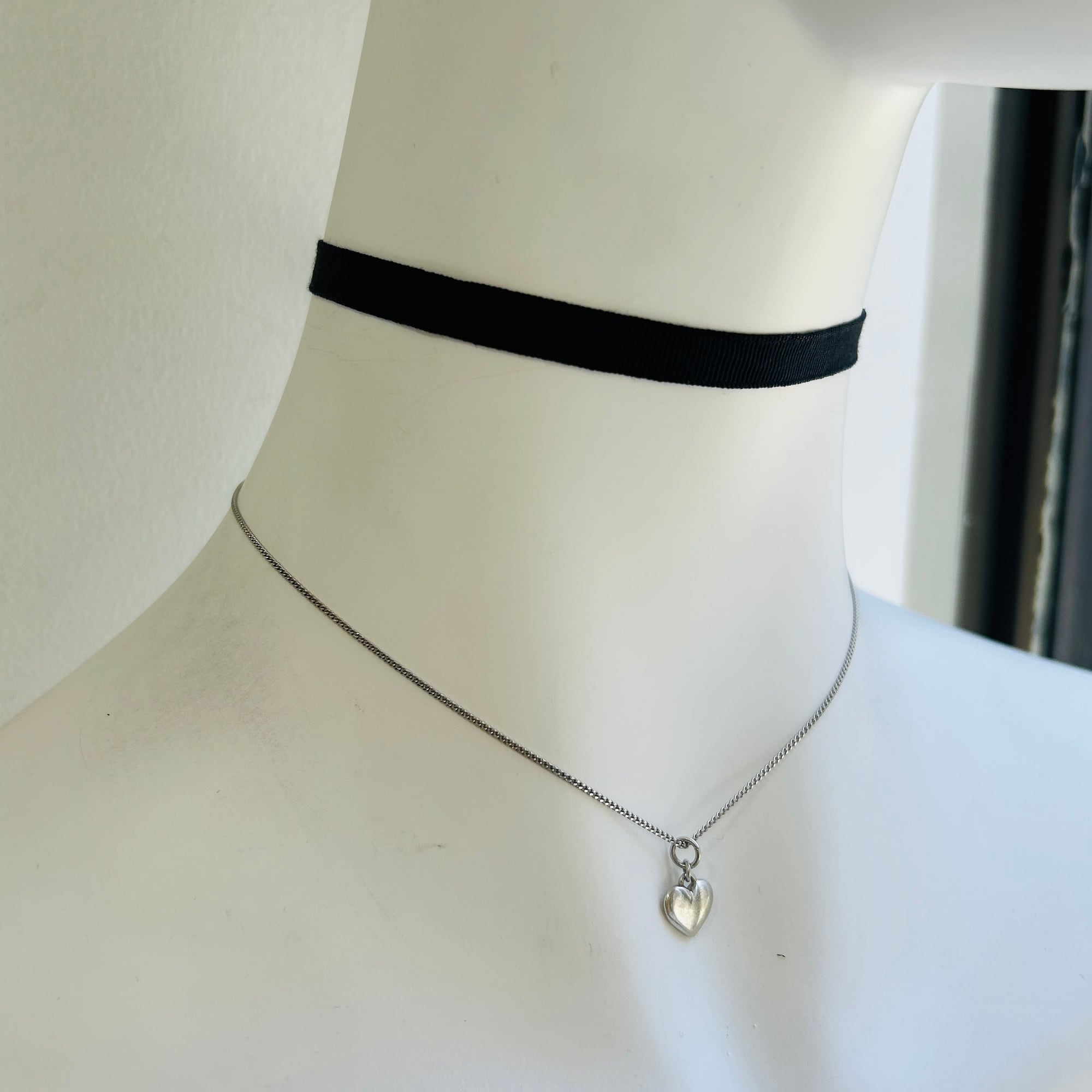 バラ売りしている「80s ドイツFriedrich Binder OLD stock ショートチェーン」に小さなハートを付けました。ミニマルでキュートなハートチョーカーとして販売致します。チェーンはハートチャームのベイルにギリギリ通るサイズで取り外し可能。別々でも使っていただけます。チェーンに「FBM」「925」。チャームとチェーンのバラ売り不可。