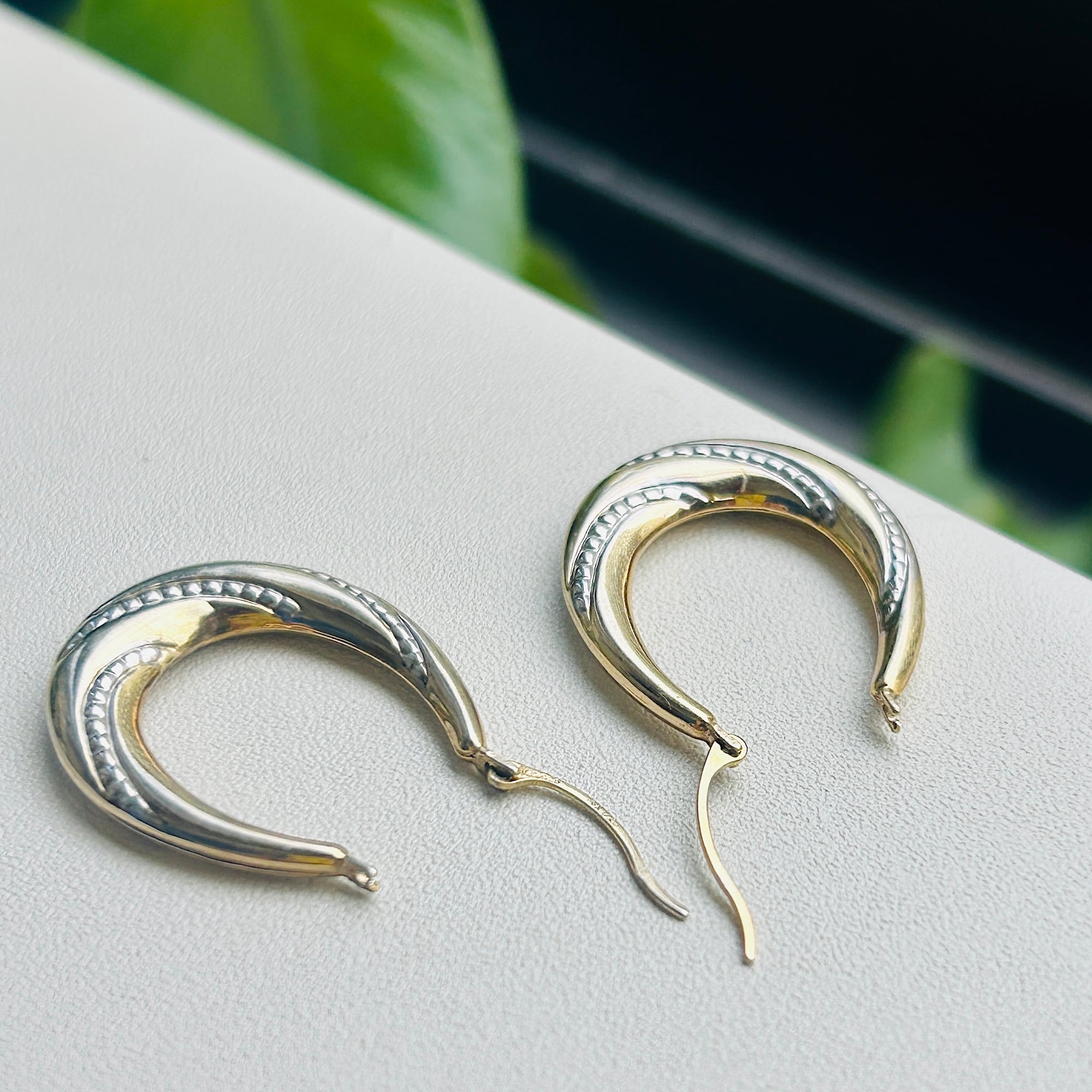 シルバー925 14K GP Oval ツートーンフープ