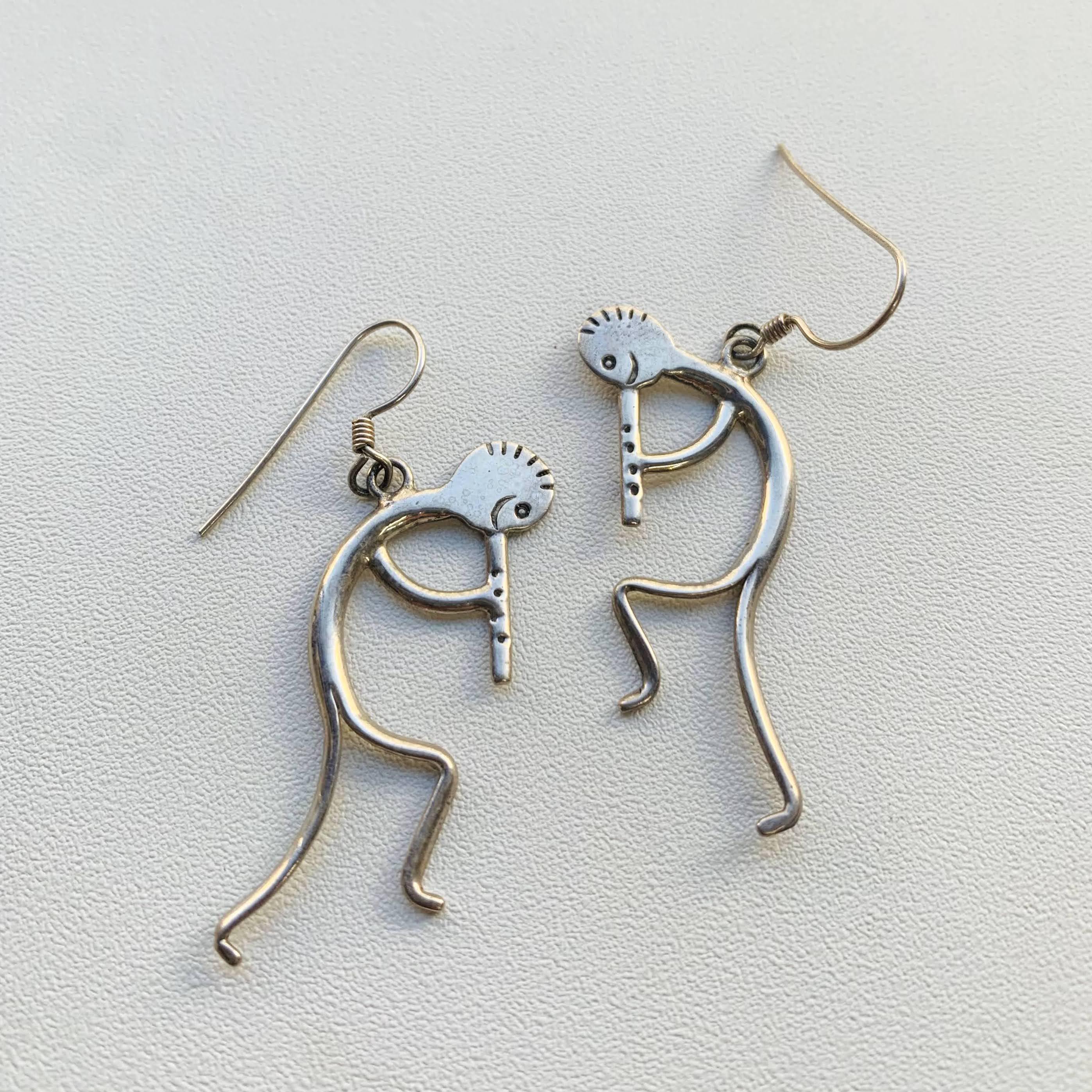 ネイティブアメリカンのシンボルであるダンサーモチーフのぶら下がりピアス。ココペリとはちょっと違う姿のキュートなダンサー。揺れるダンサーピアス、動きがあってとてもいいです。アシンメトリーで着けるのもGOOD アイデアだと思います。