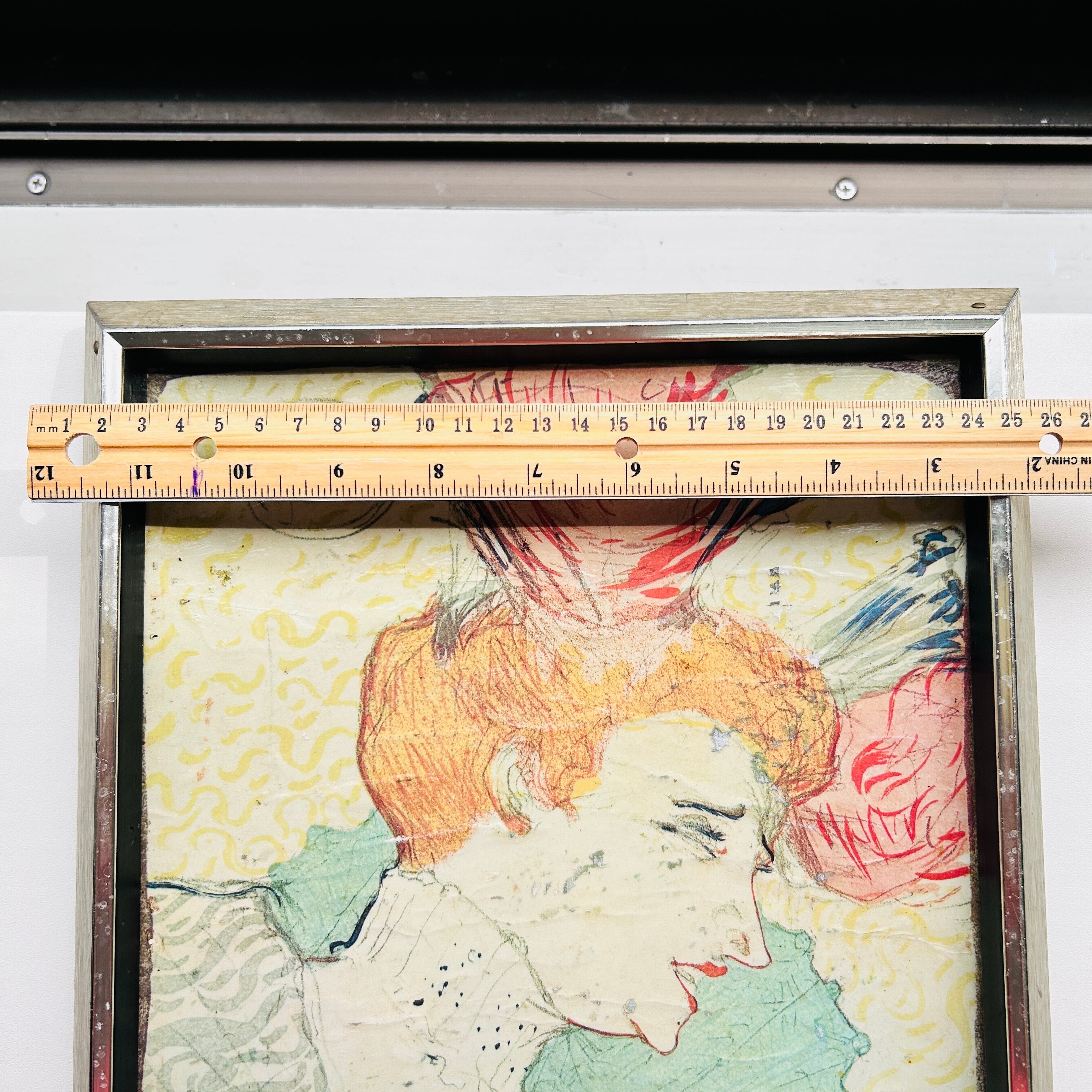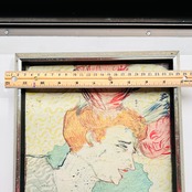 ロートレックの有名な絵画の額装です。ボール紙のような台紙の両面に絵画がプリントされています。オモテ面が「マルセル・ランデール嬢」、裏面は風景画です。絵には筆跡の凹凸が出ていて、ニスで仕上げたような、オイルペインティングな感じです。台紙の表面は薄く破れたりスリキズがあるヴィンテージコンディション。それがまたカッコいい雰囲気出してくれてます。