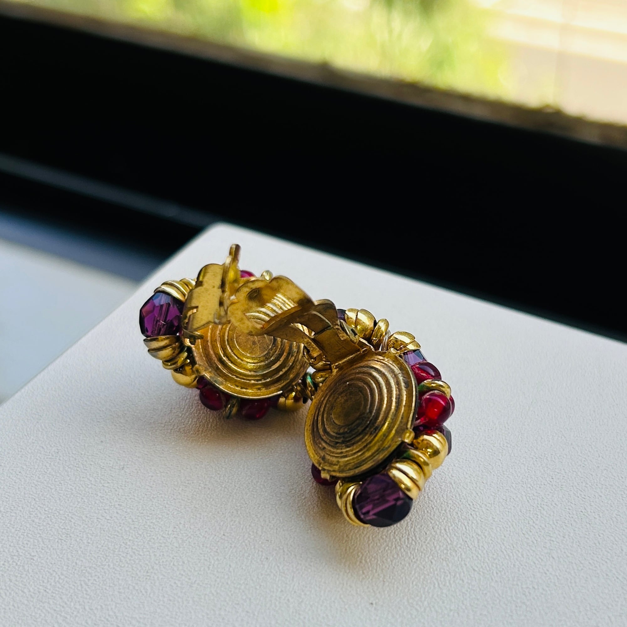 仏ヴィンテージ ビーズイヤリング(wine / red / gold)